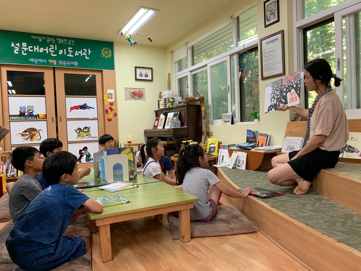 뜨거운 여름 더위를 피해 도서관으로 온 친구들.