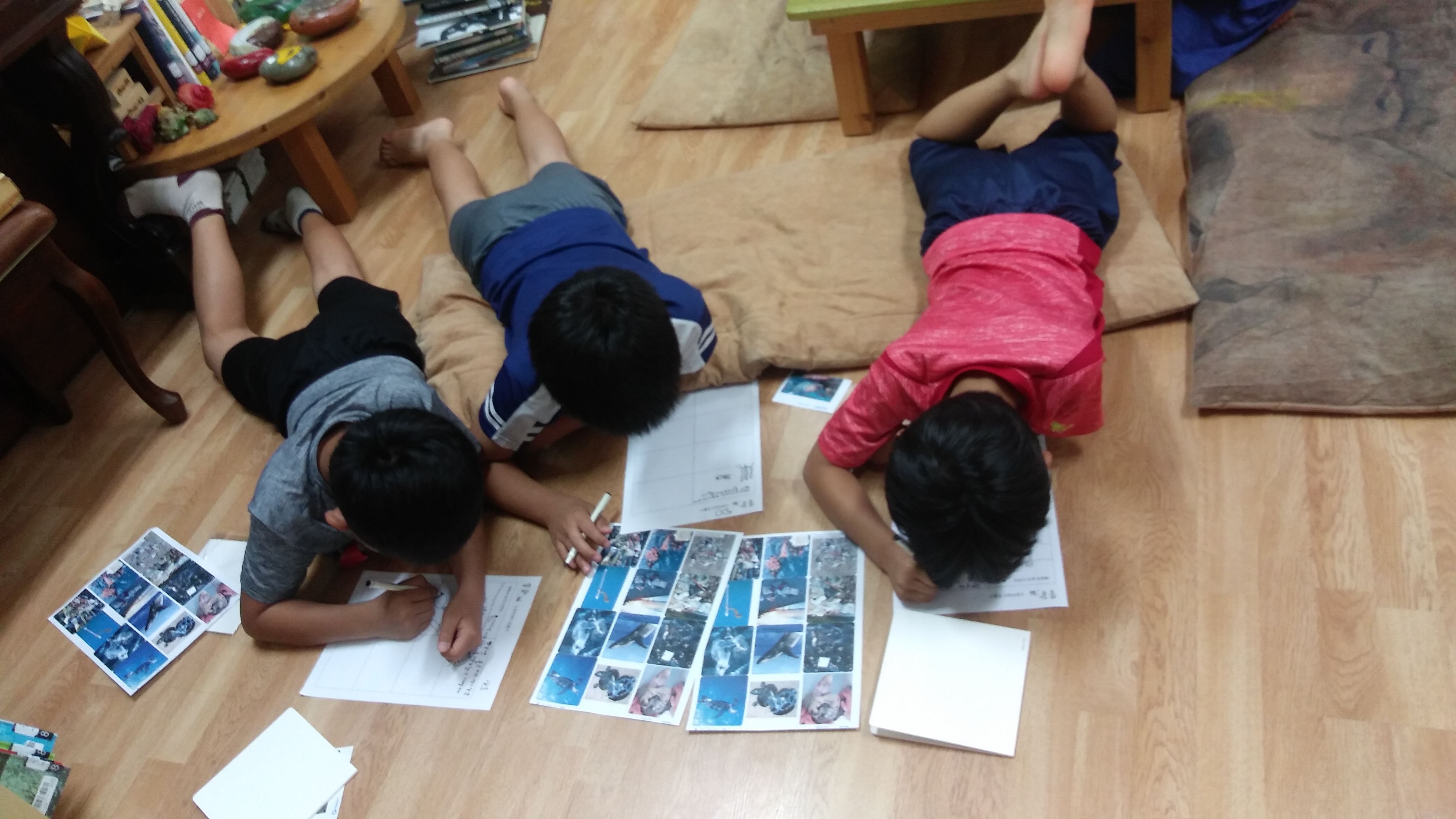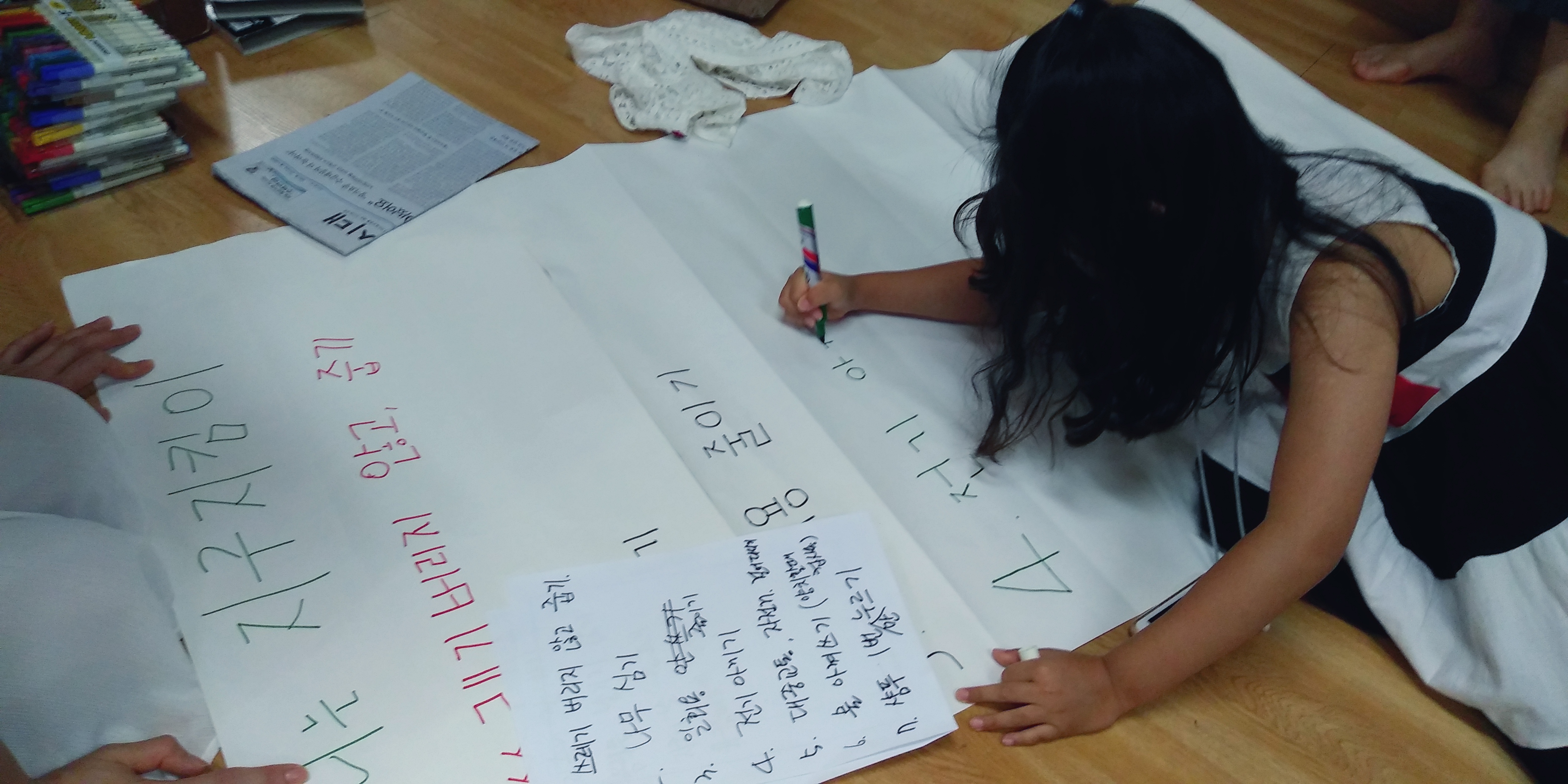 서로 이야기 나누며 거북이 코 빨대 이야기를 나누며 글을 쓴다.