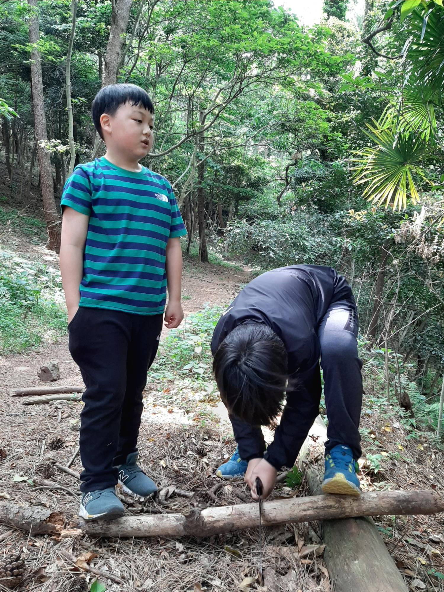 가윤이도 돌 위에 막대기 올리고 쓰~~윽~~ 싹!