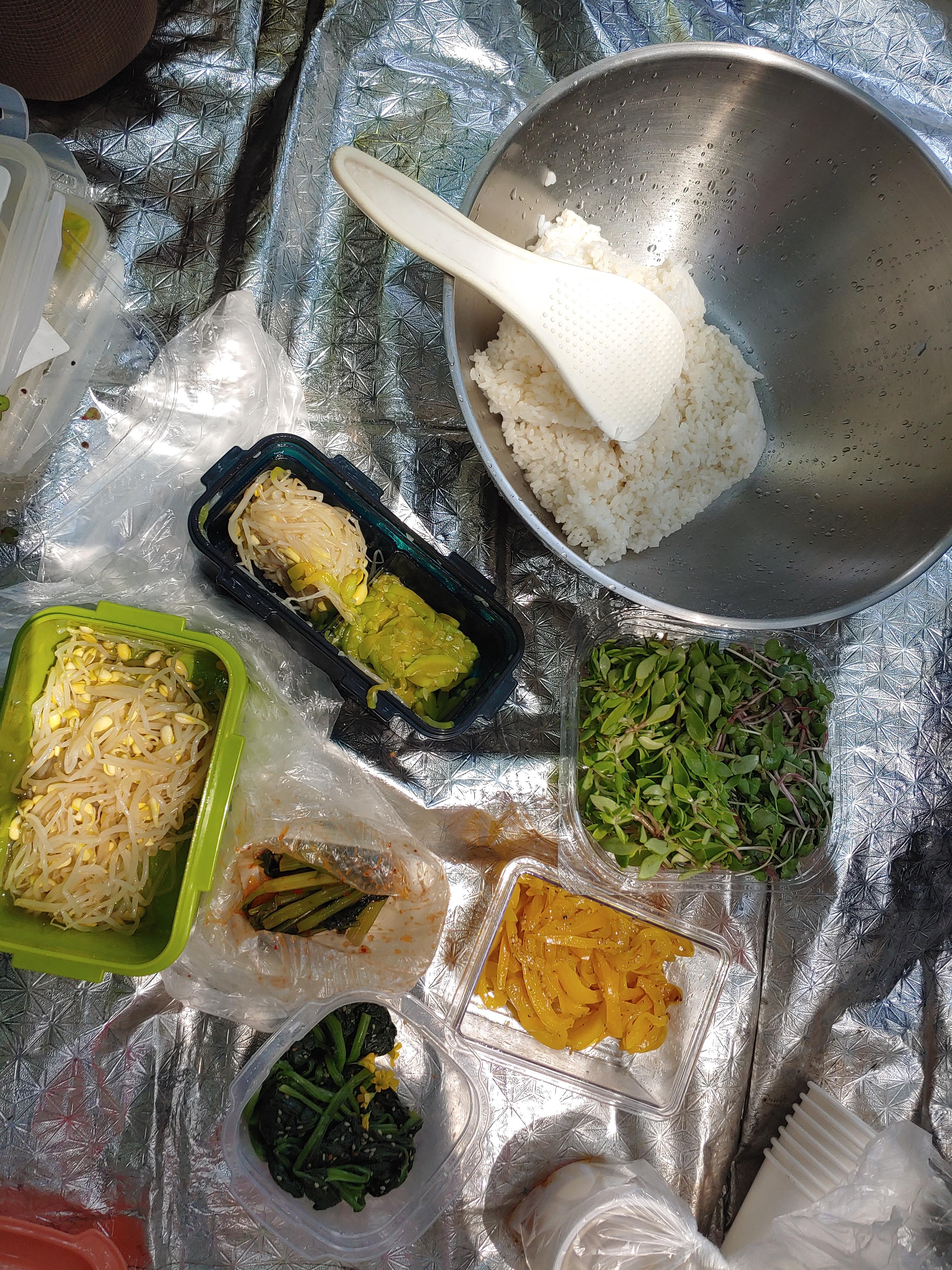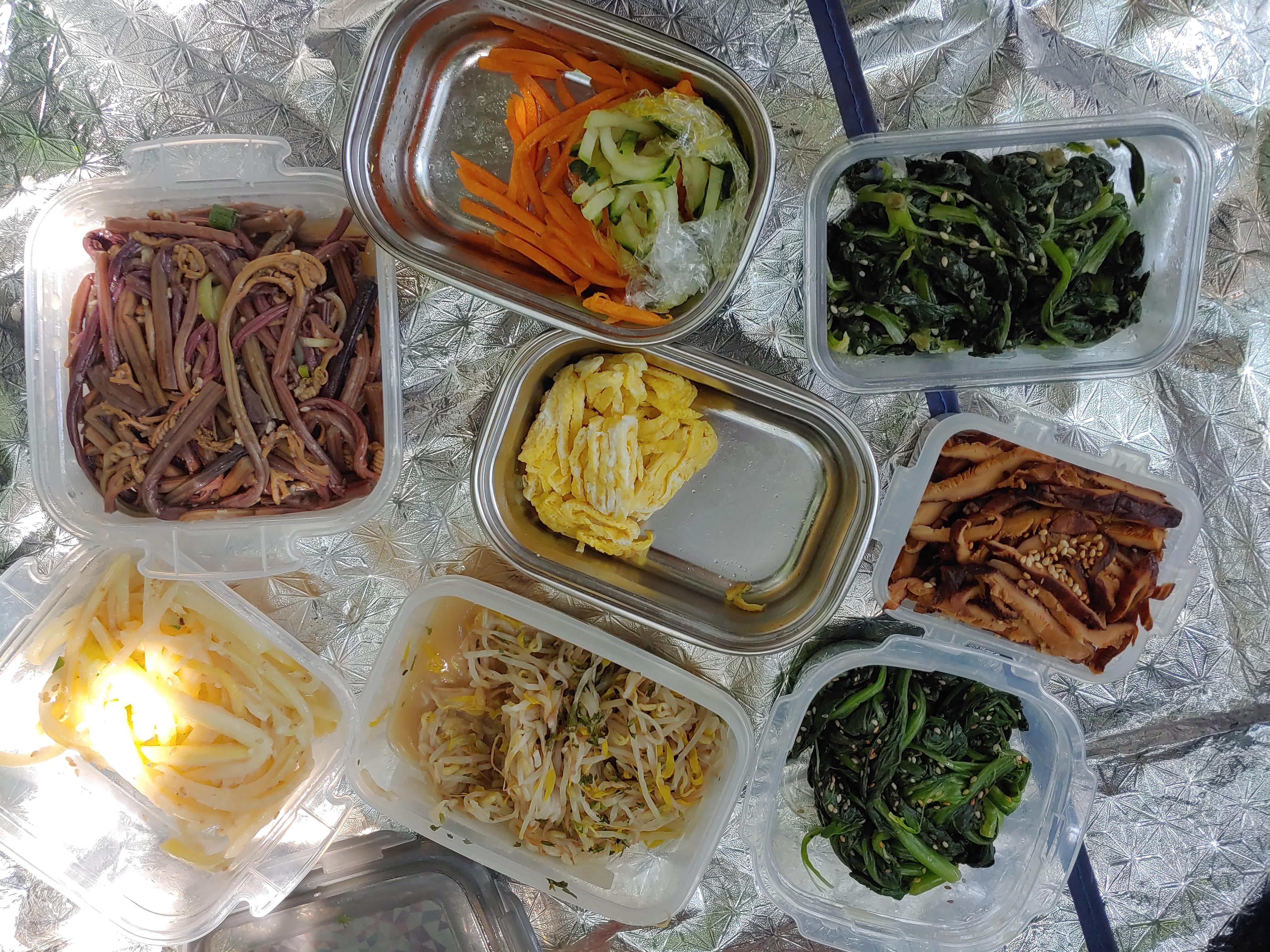 그래서 아이들이 준비한 나물을 펼칩니다.