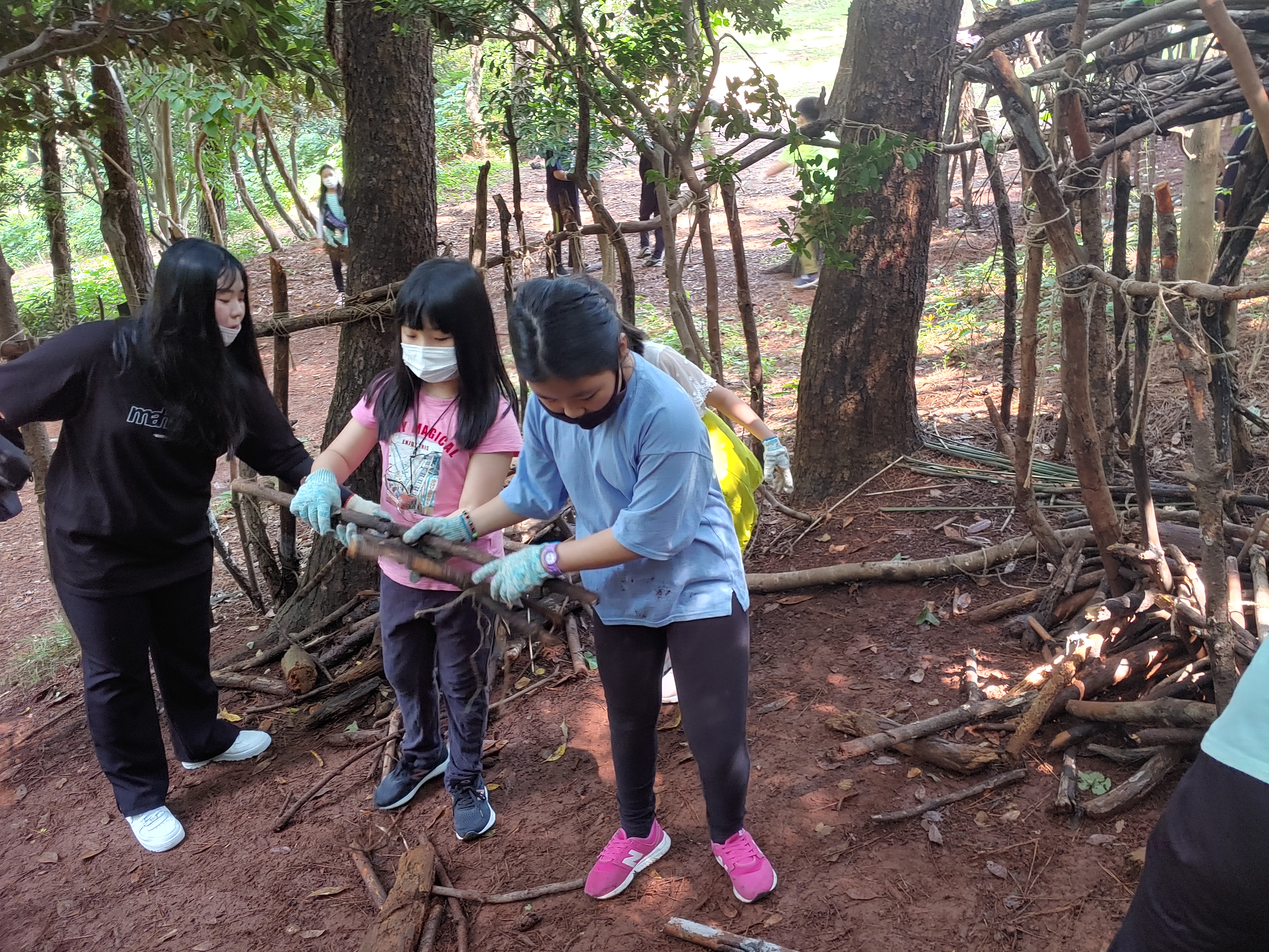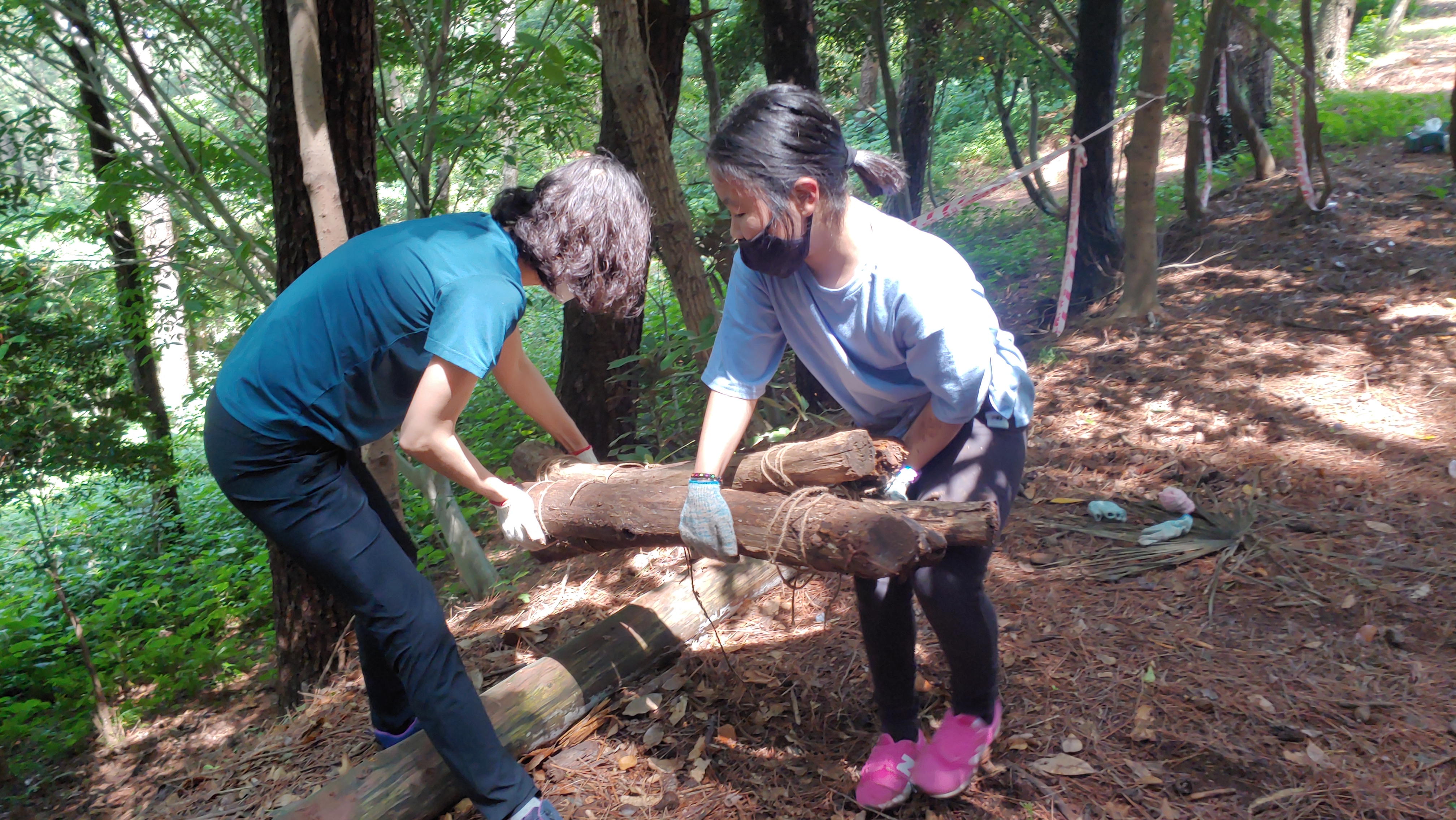 쌓여진 나뭇가지 옮기느라 힘을 합쳐 봅니다.
