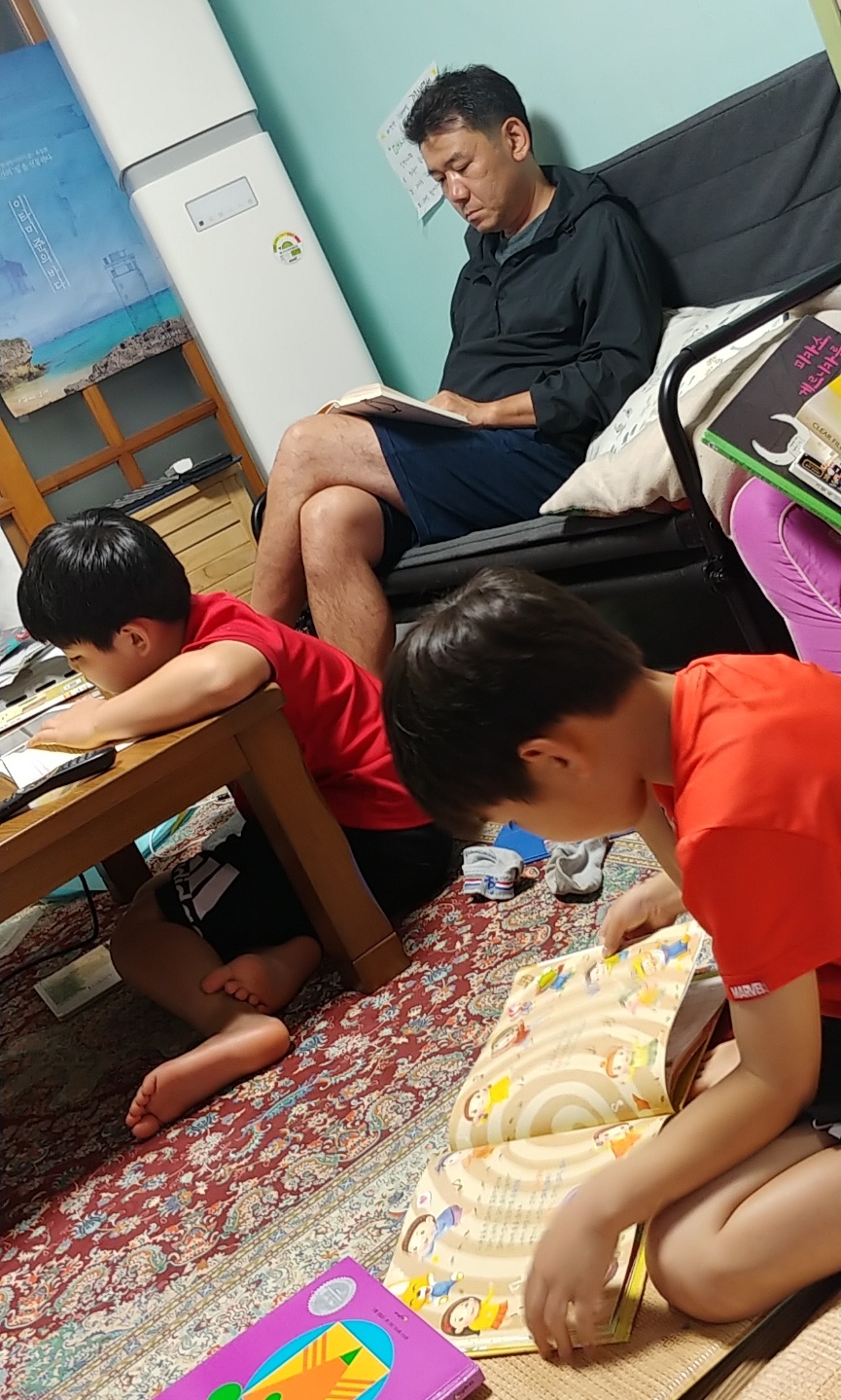 <각자의 집에서 자유롭게 책을 읽는다. 온 가족이 함께......