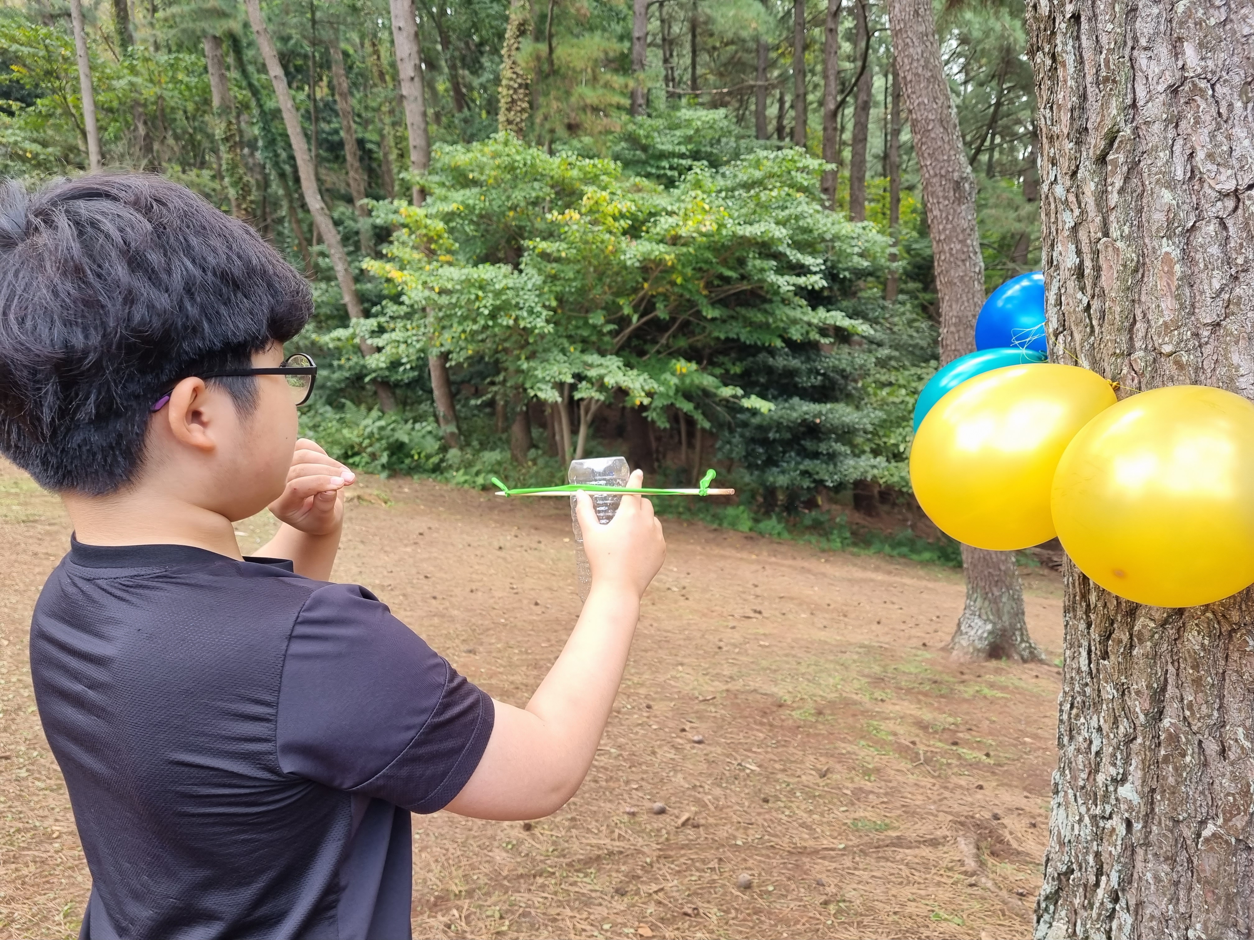 패트병을 이용하여 활 만들어 풍선터뜨리기.