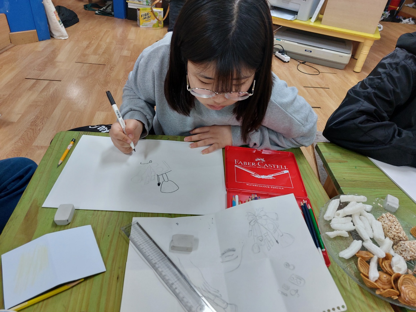 과자의 도움으로 쓱쓱 싹싹 그리는 민서 & 인