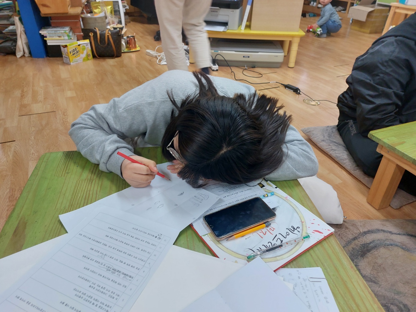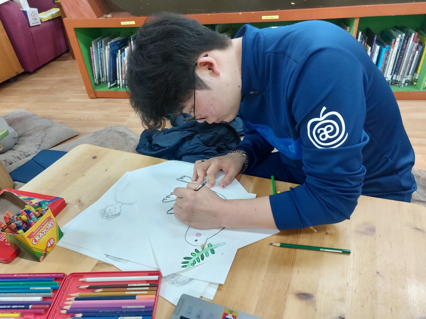 색연필로 쓱쓱싹싹 초 집중하는 한소년
