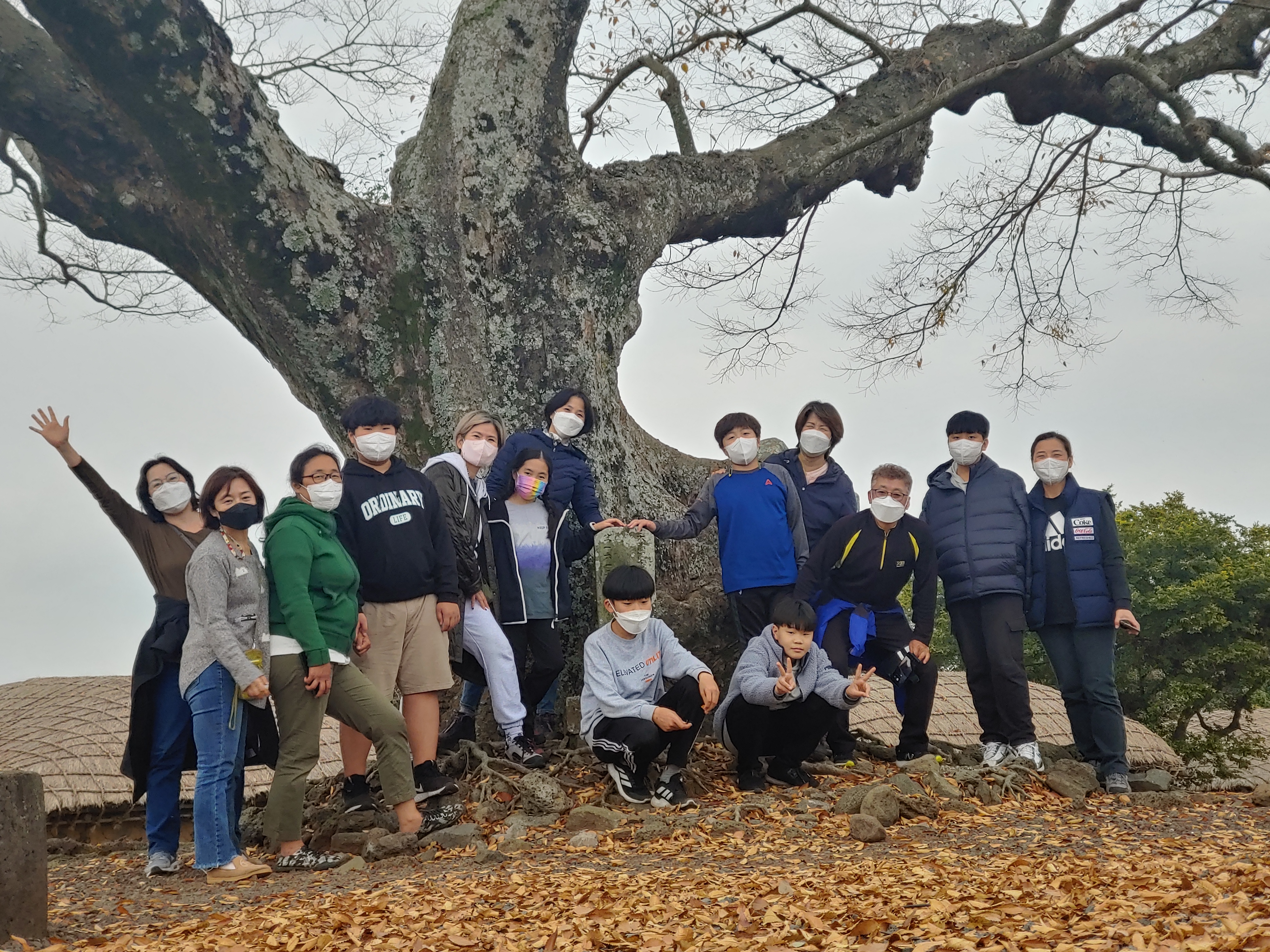 모두 다 함께 천년 된 나무의 기운을 받아봅니다.