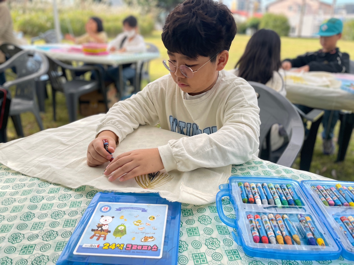 광목천에 그림을 그리고,
