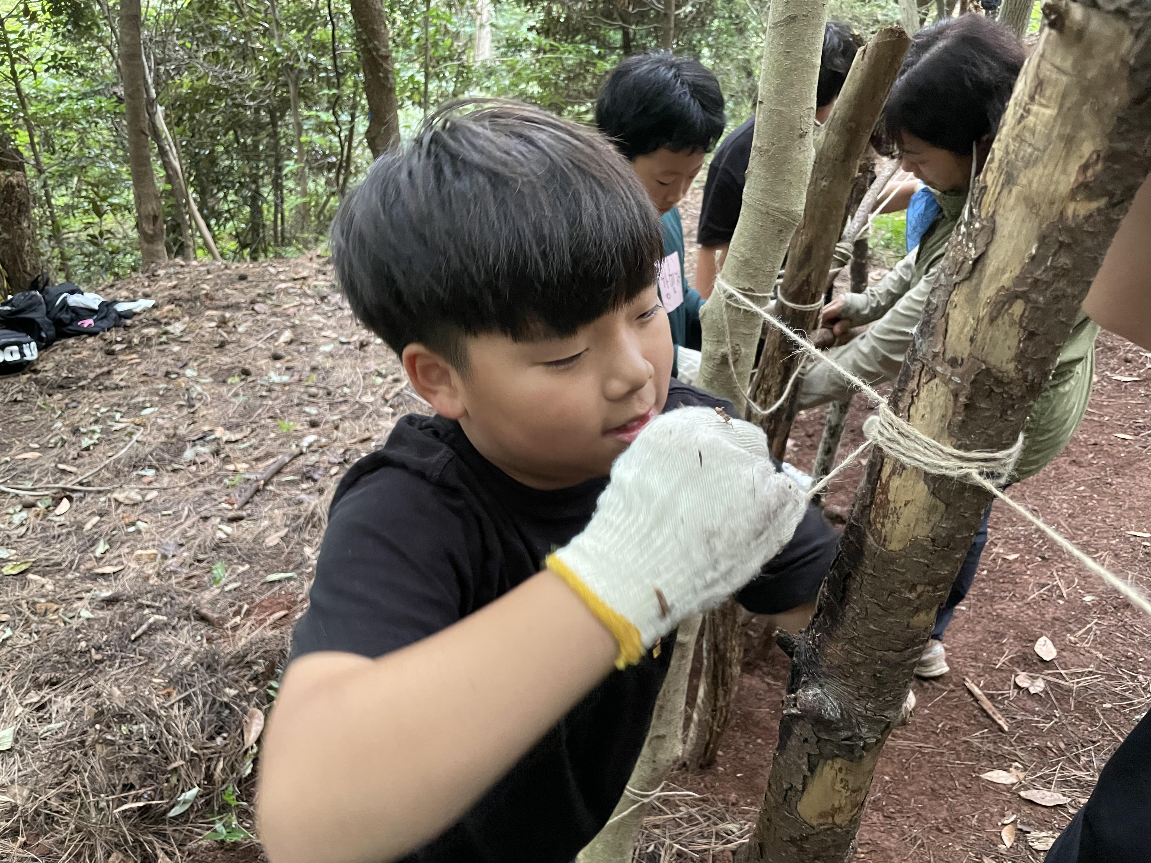 조장이 된 경훈이는 무거운 나무도 번쩍 든다.