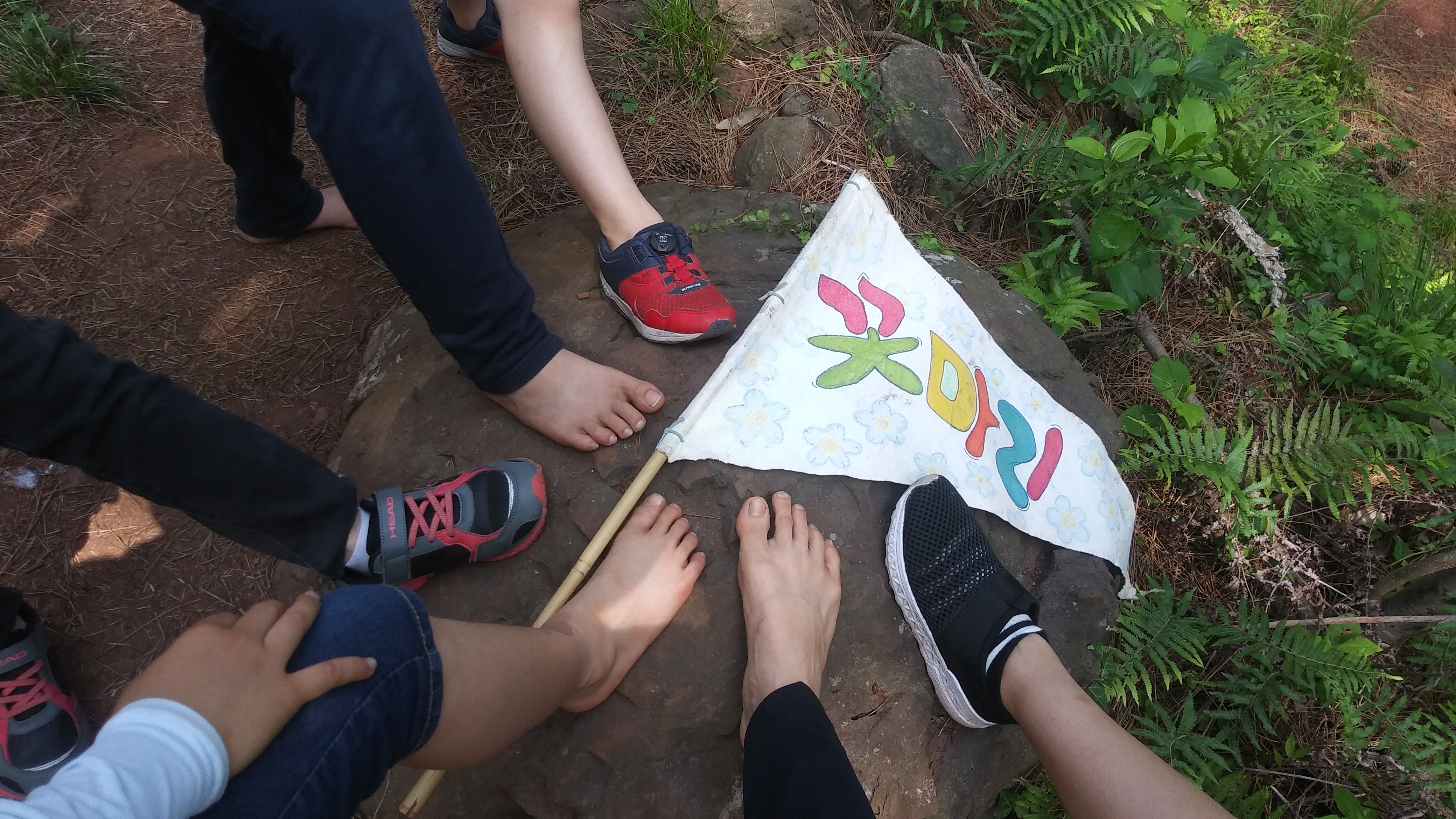 오르면서 발견한 깃털에 기분 좋아진 강민이~~