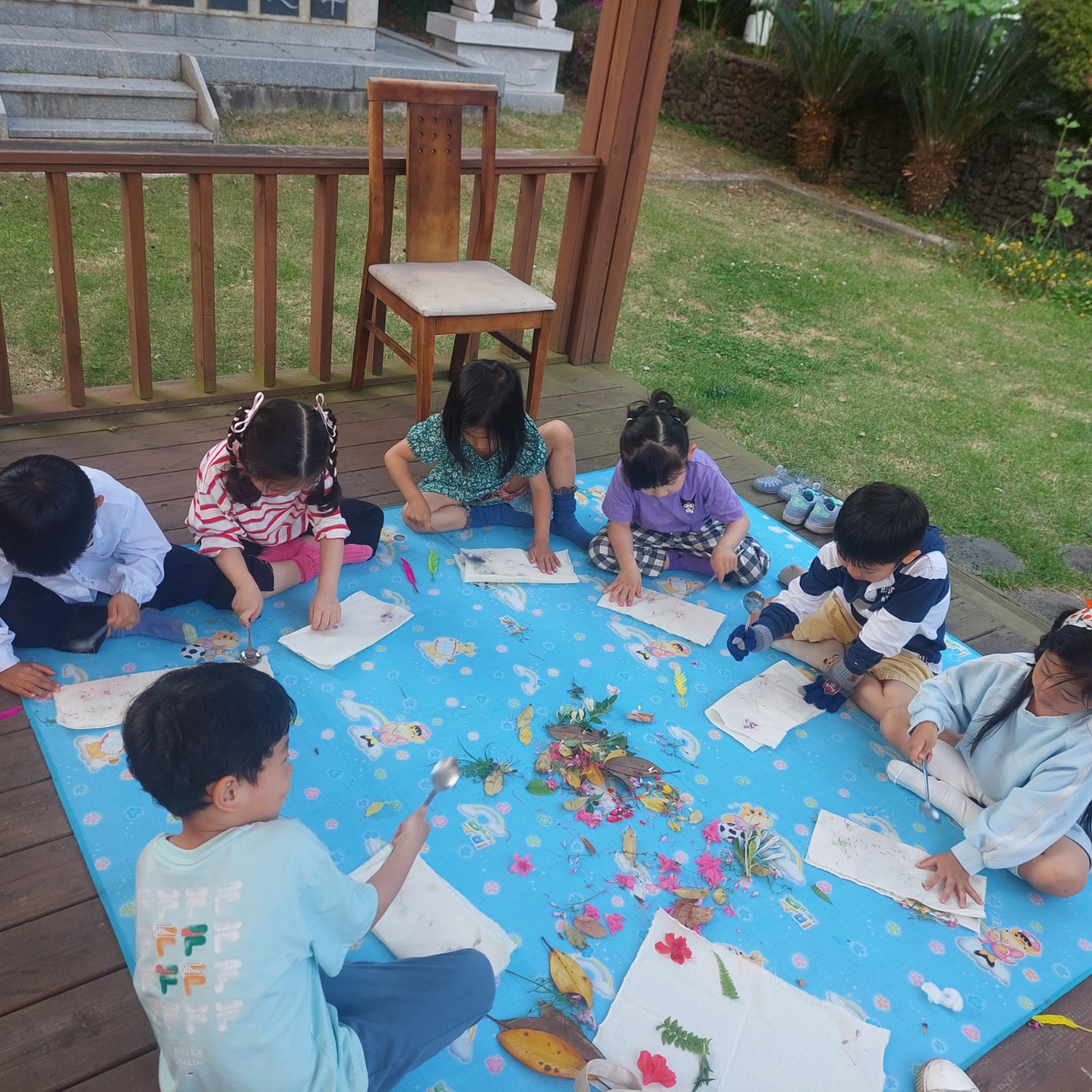 그리고 나뭇잎을 주워서 그림을 그려봅니다.