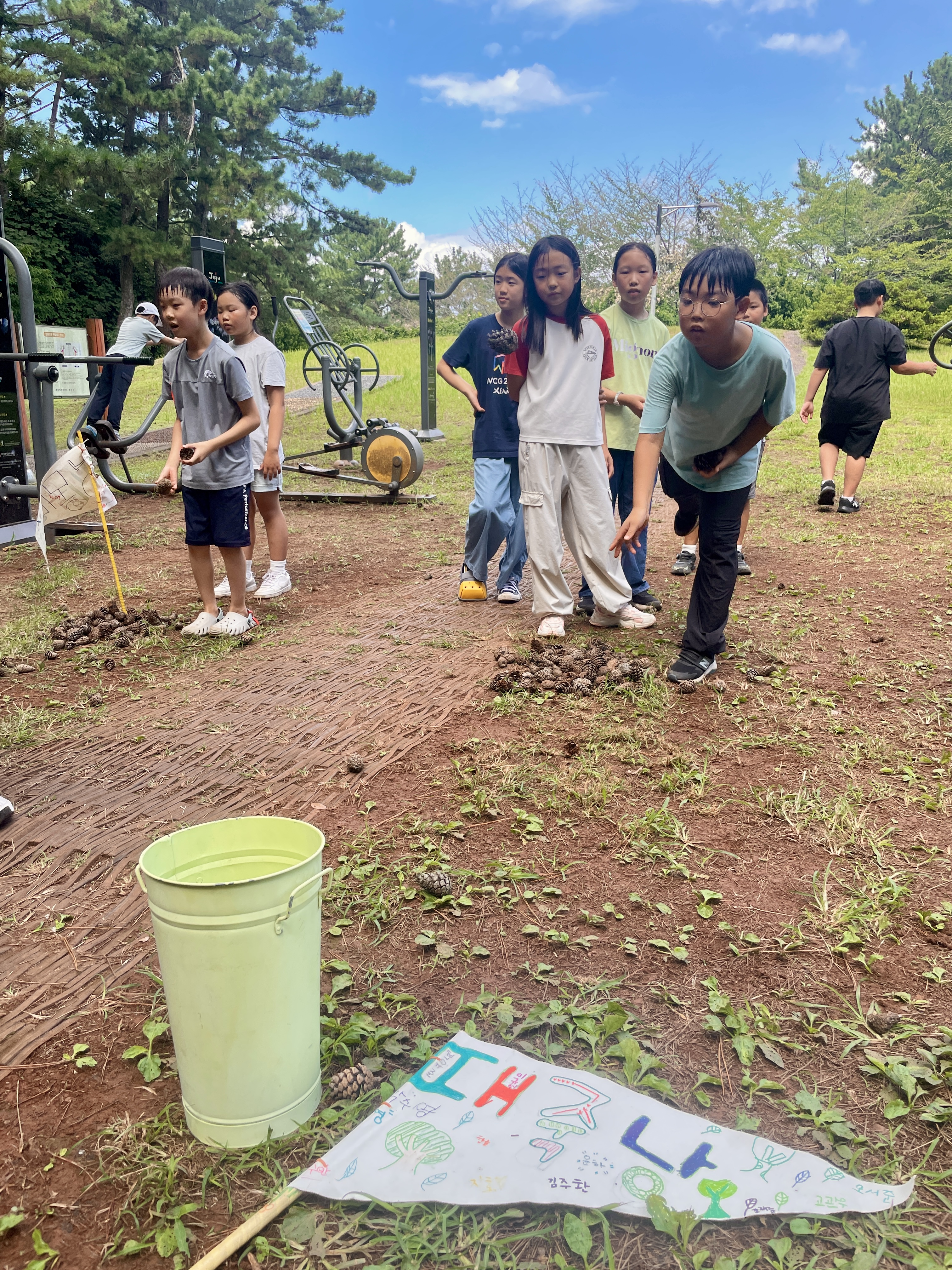 솔방울 던지기를 한다.