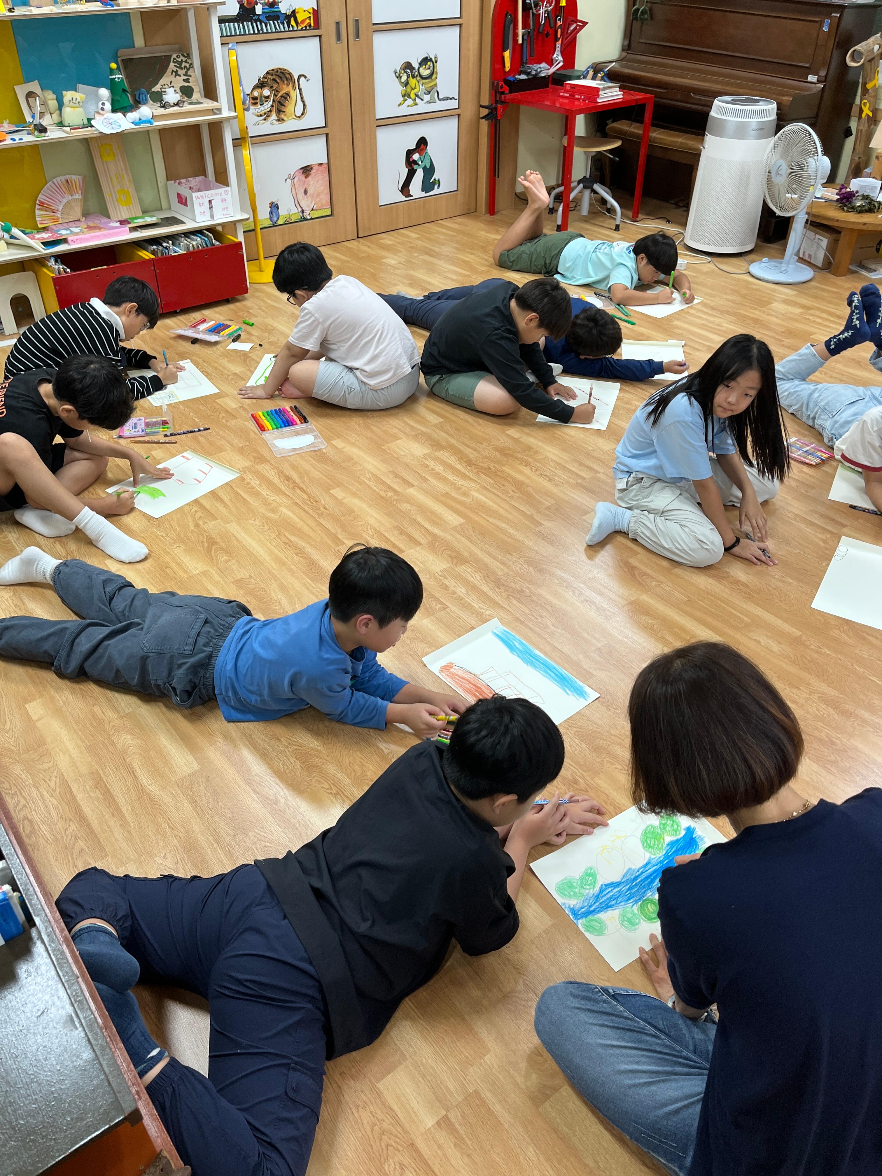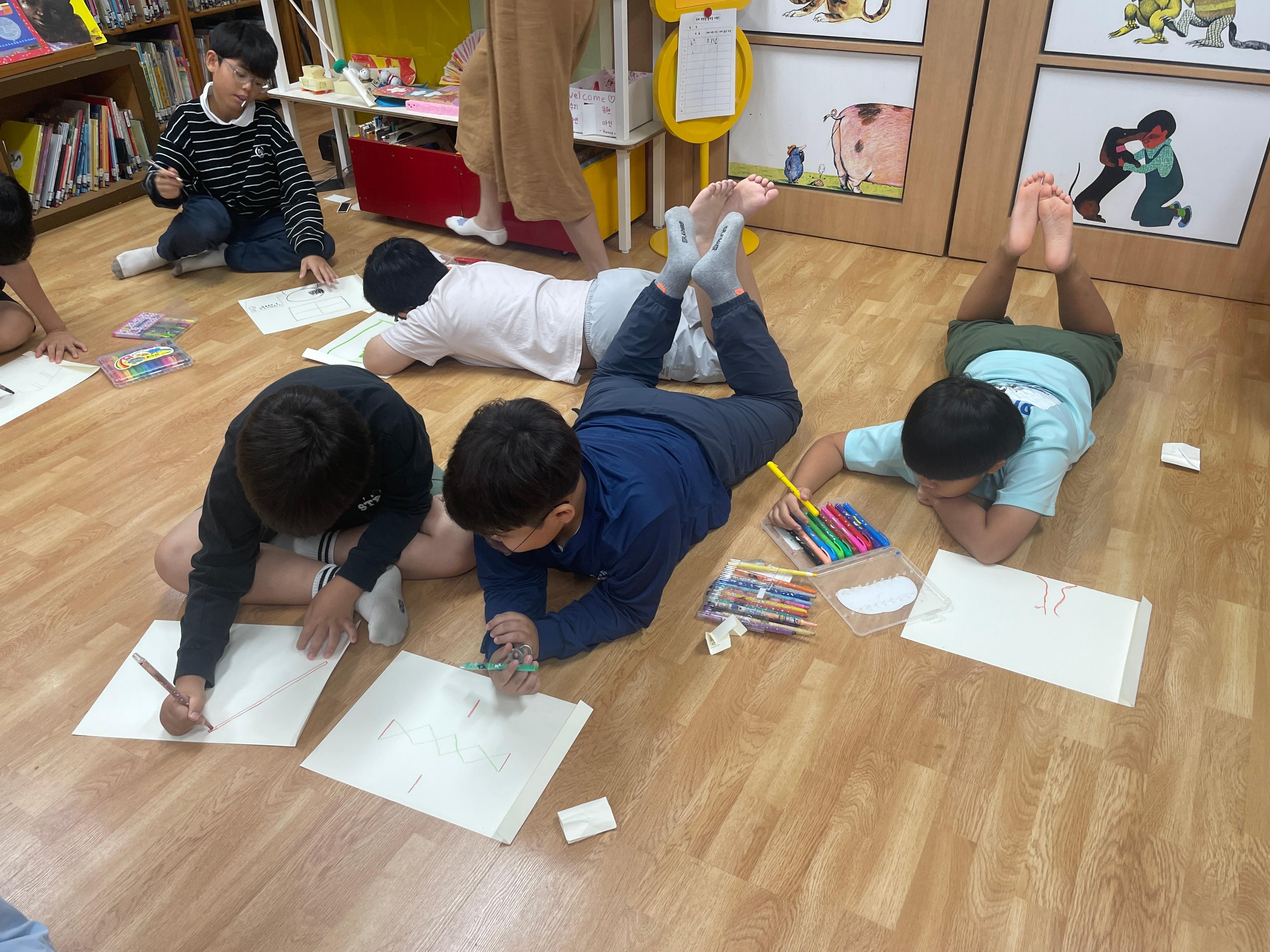 내가 맡은 바닥을 악당개미들이 정성스럽게 그린다.