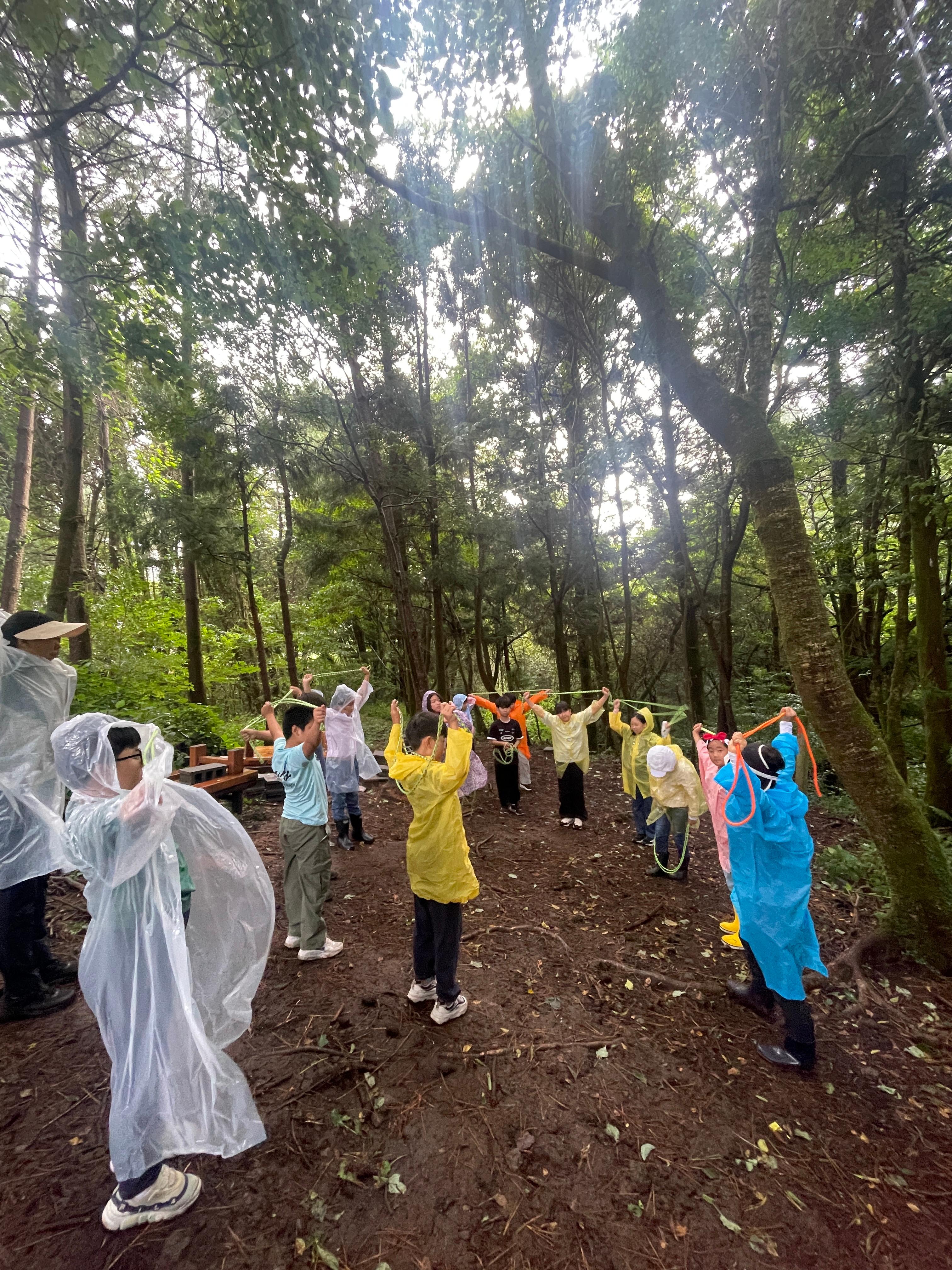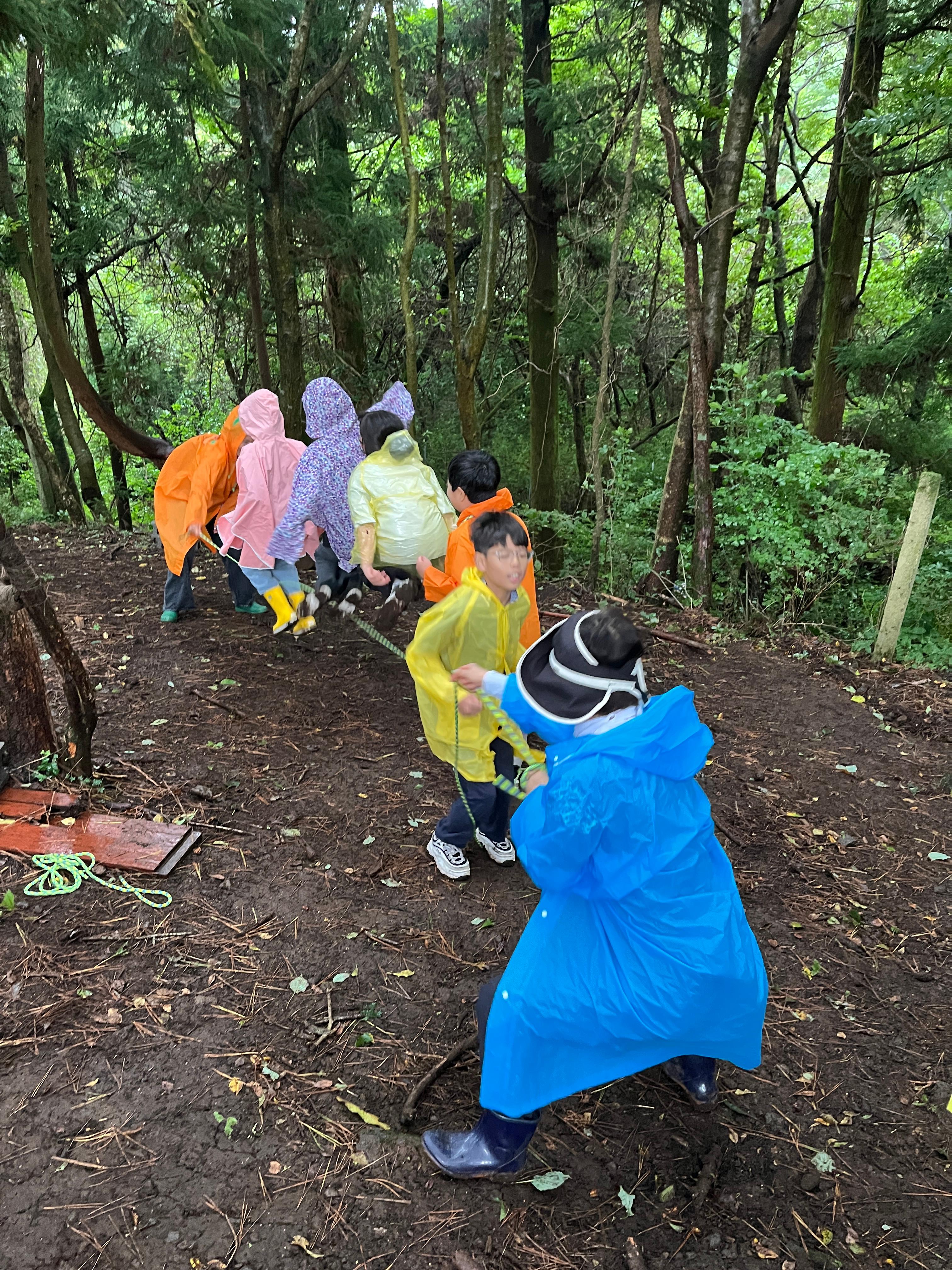 비옷을 입어서 불편하지만 어린이들은 아주 잘 뛴다.