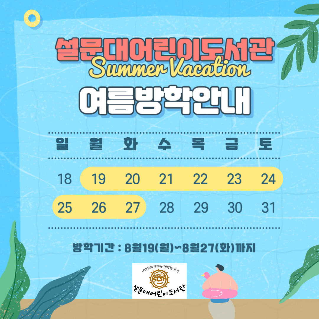 아이들이 개학을 하니, 도서관이 방학을 합니다.