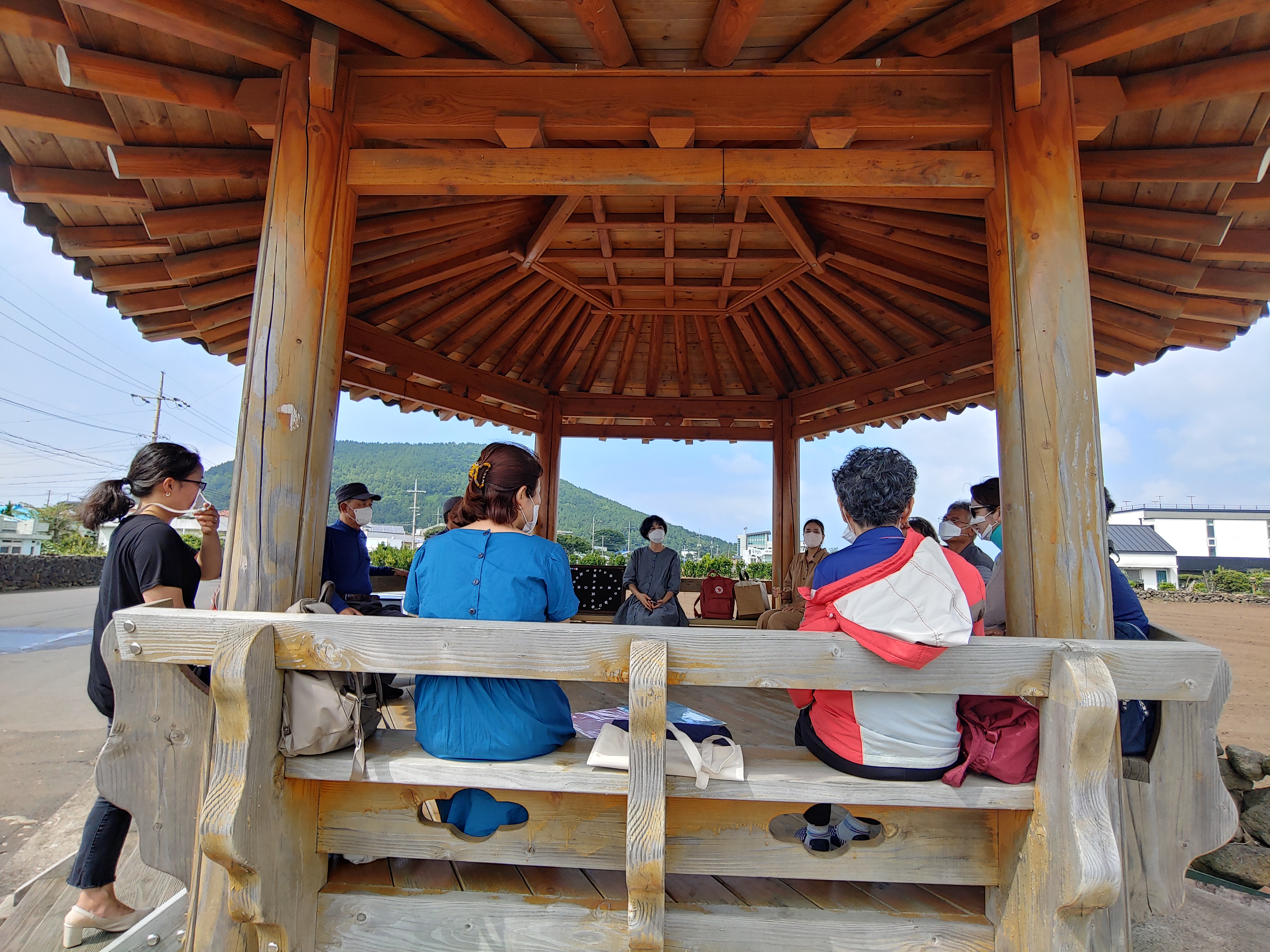 밖에 나와 정자에 앉앙~