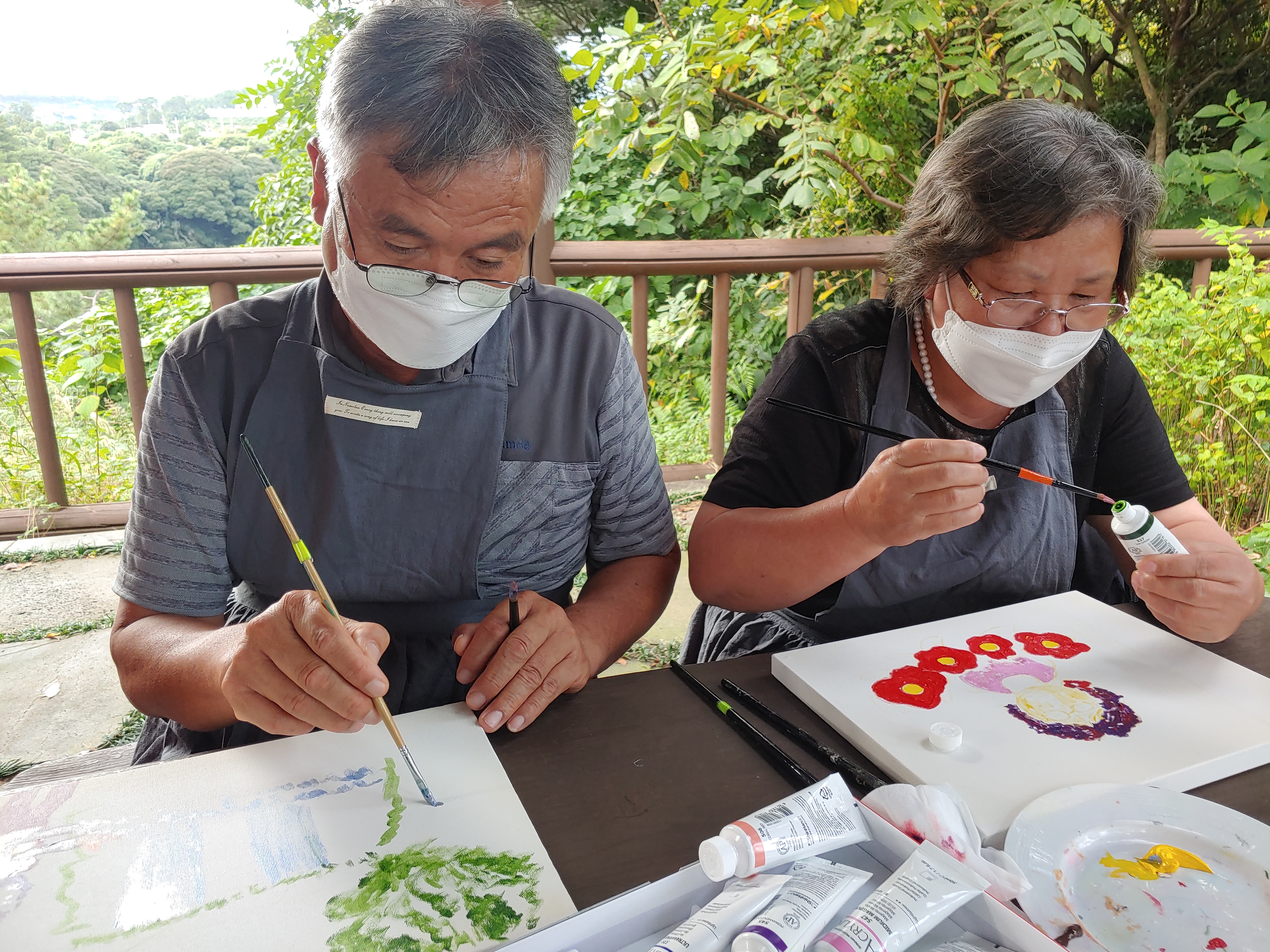 차분하게 붓을 잡고 지금 여기를 그리시는 김정혜어르신.