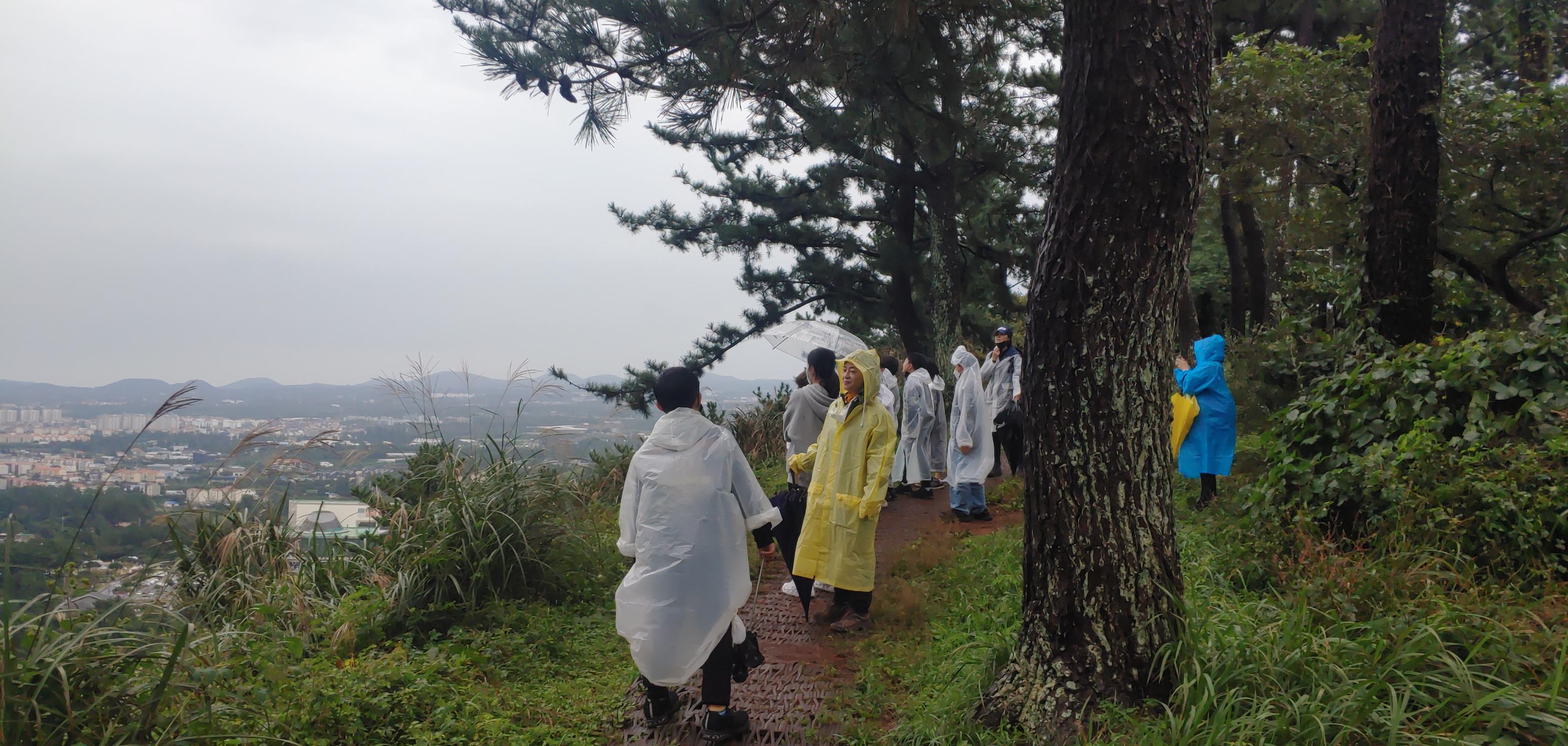 숲 속으로 들어오니 나무가 비를 막아준다.