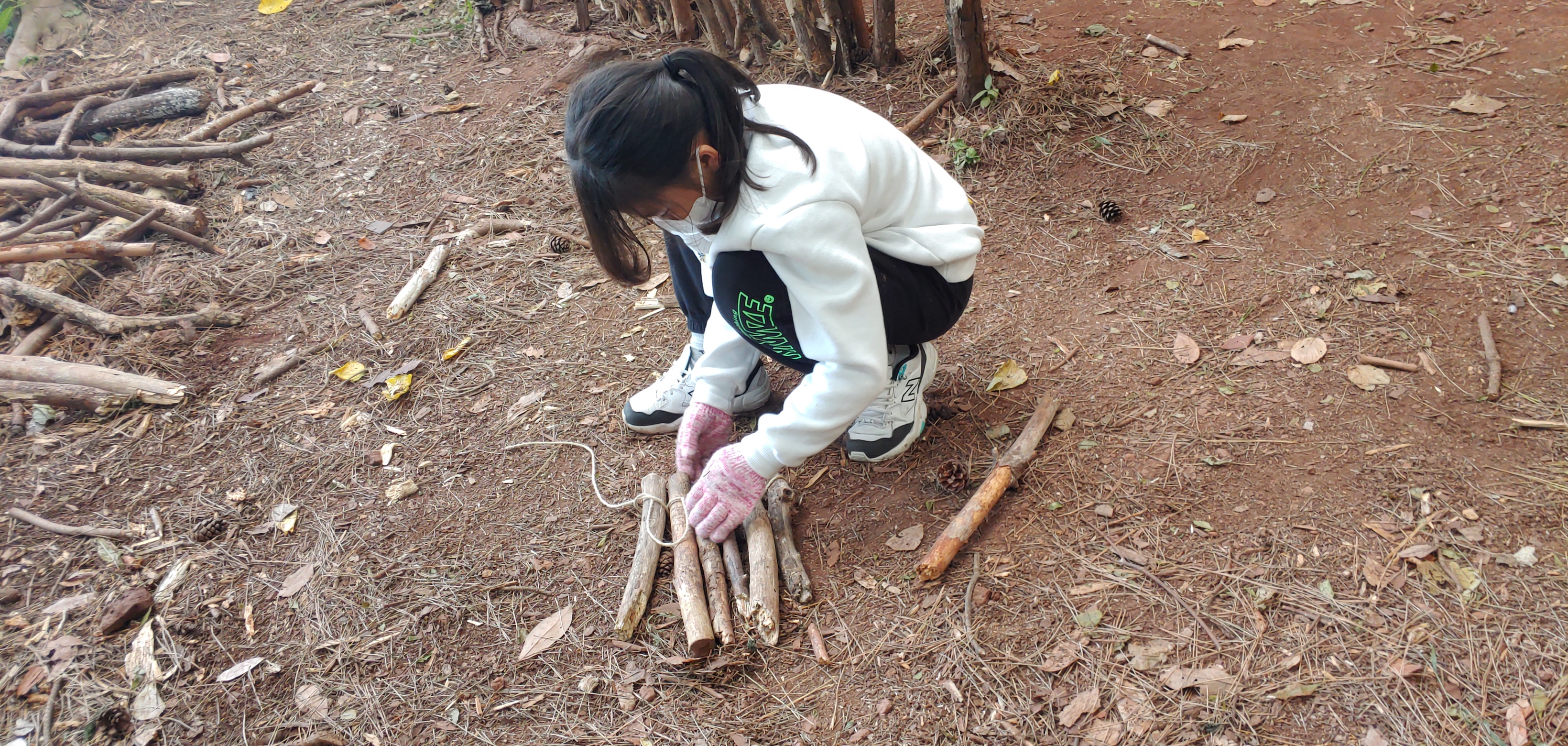 나무를 엮어 방석을 만듭니다.