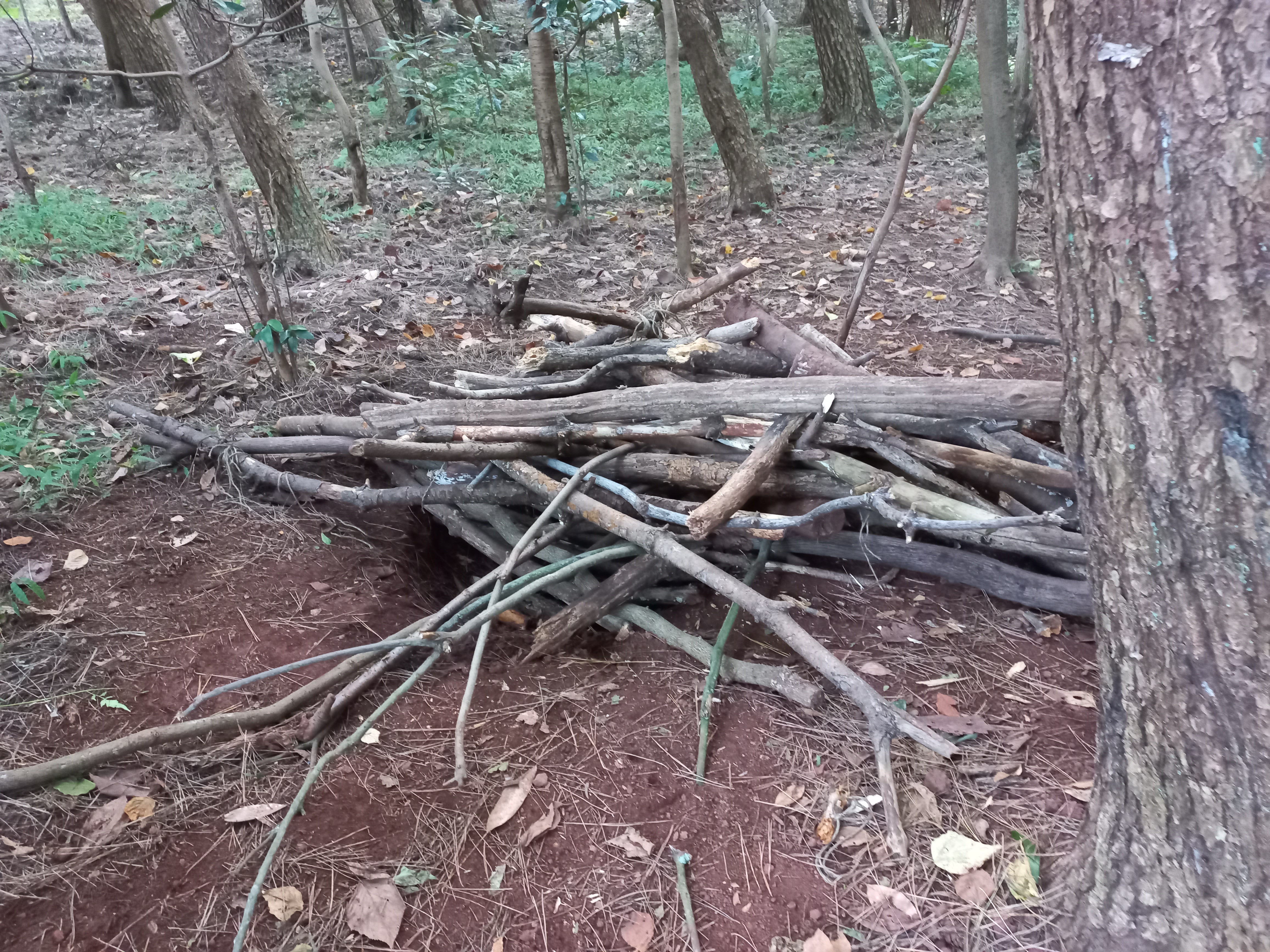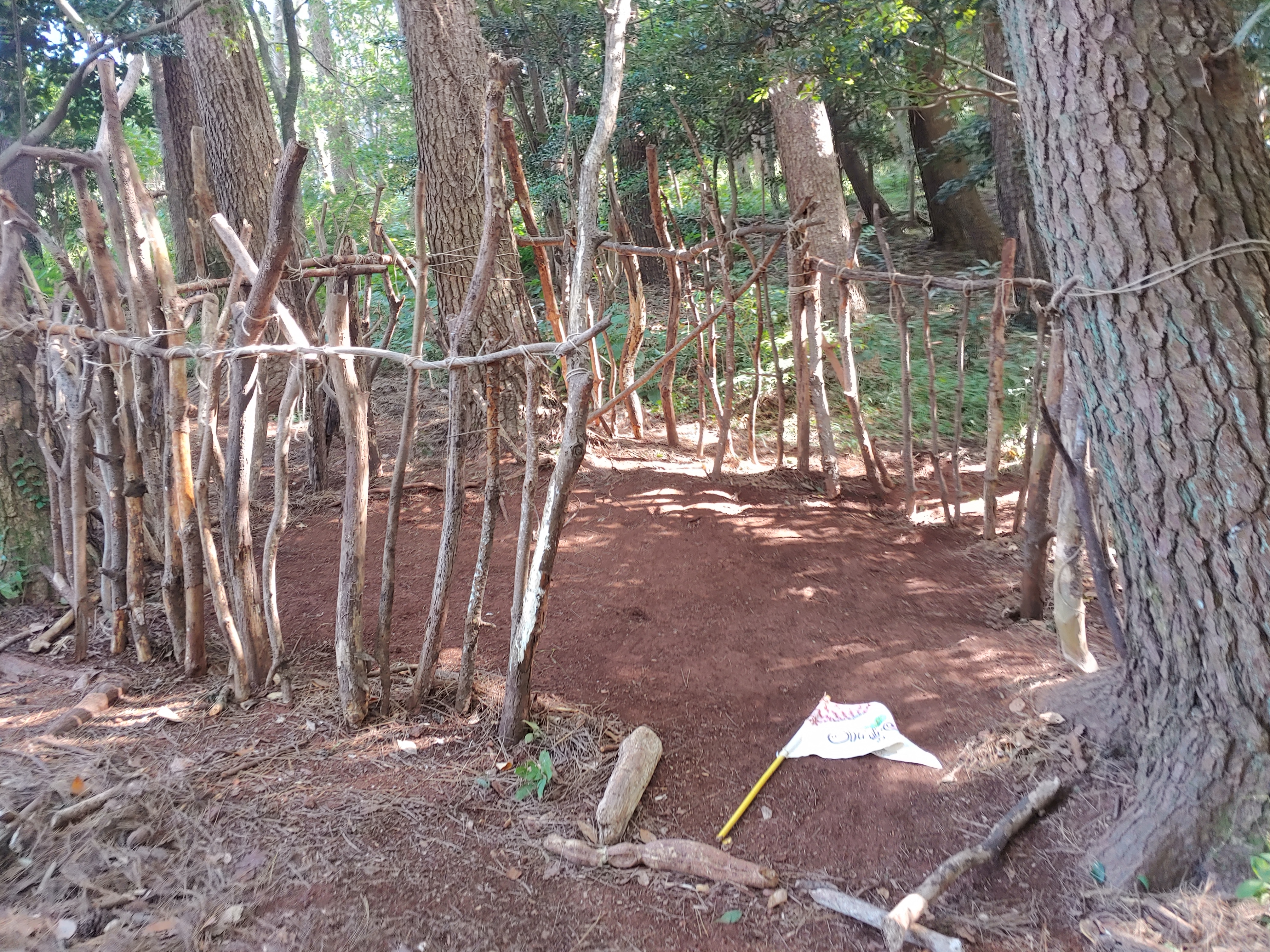 나무를 엮어 묶는다.