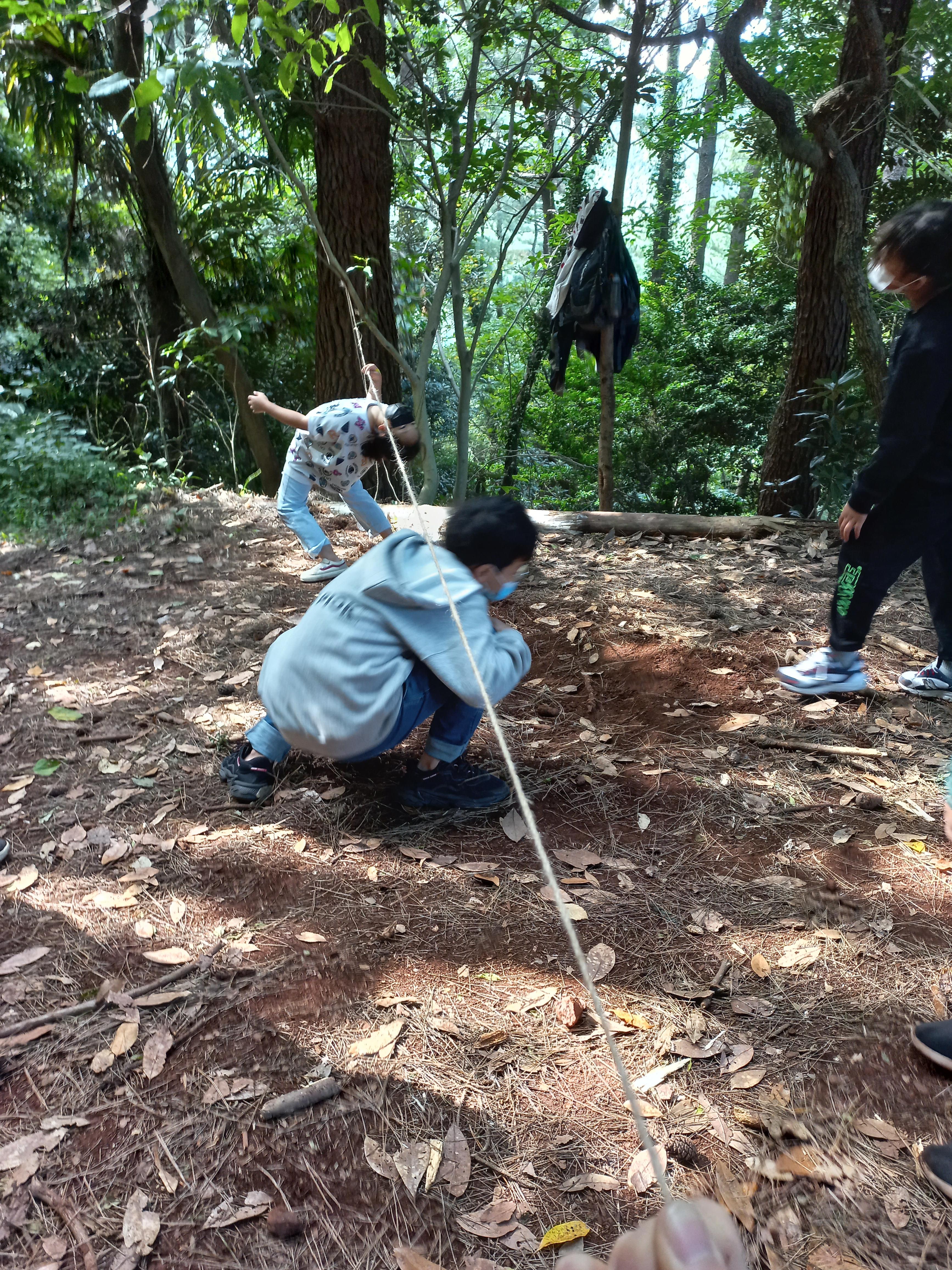 파쿠르를 만든다며 줄을 길게 연결한다.