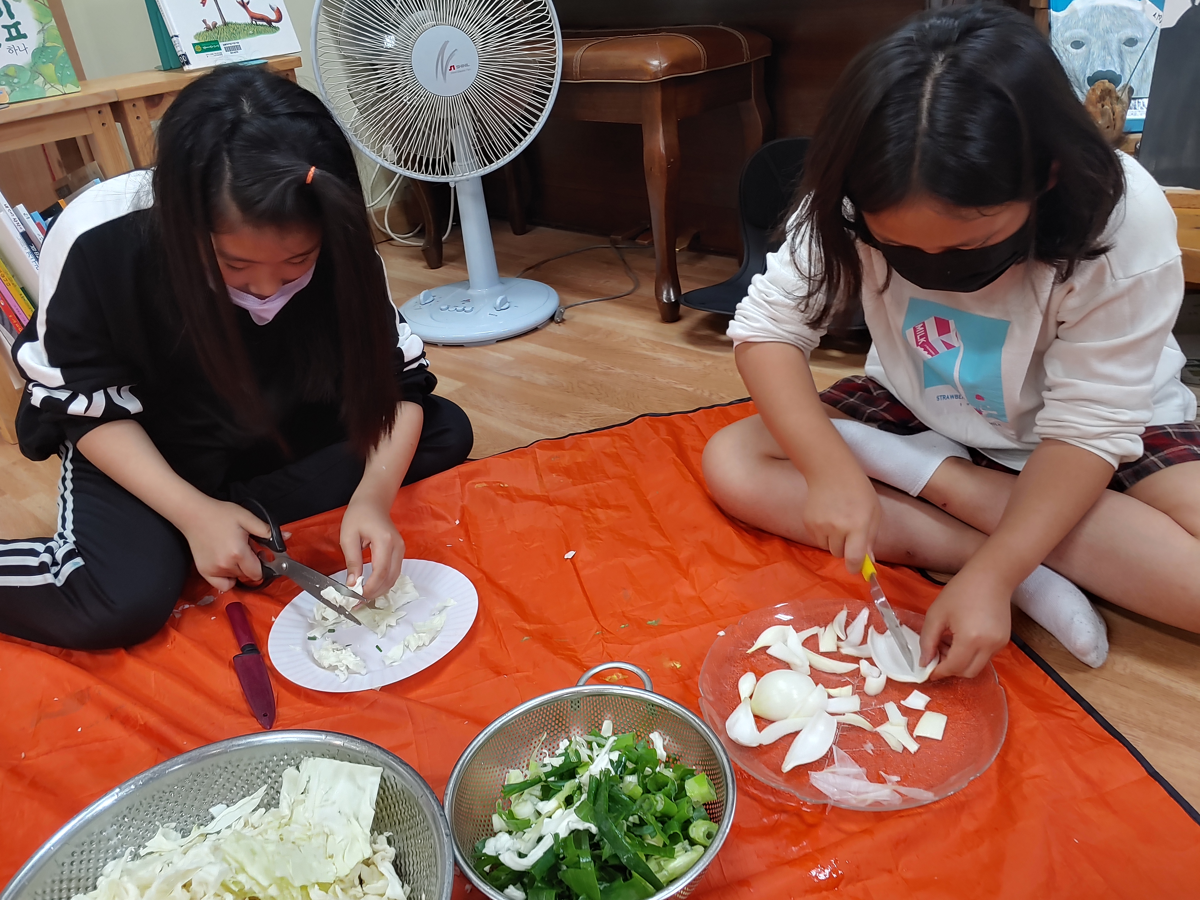 안에서는 재료 썰기 바쁘다.