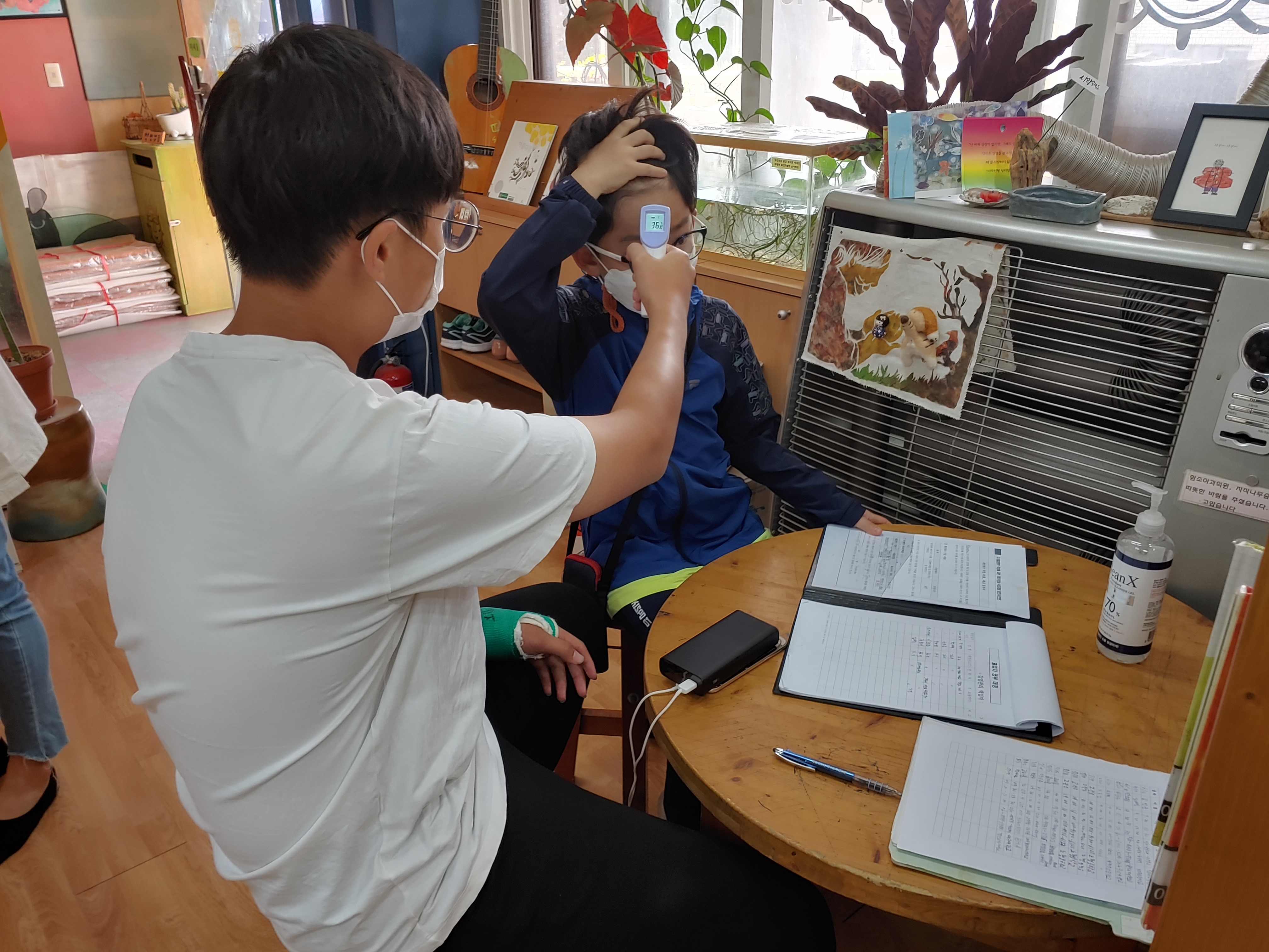 마스트 쓰고 체온 재고 손 소독을 합니다.
