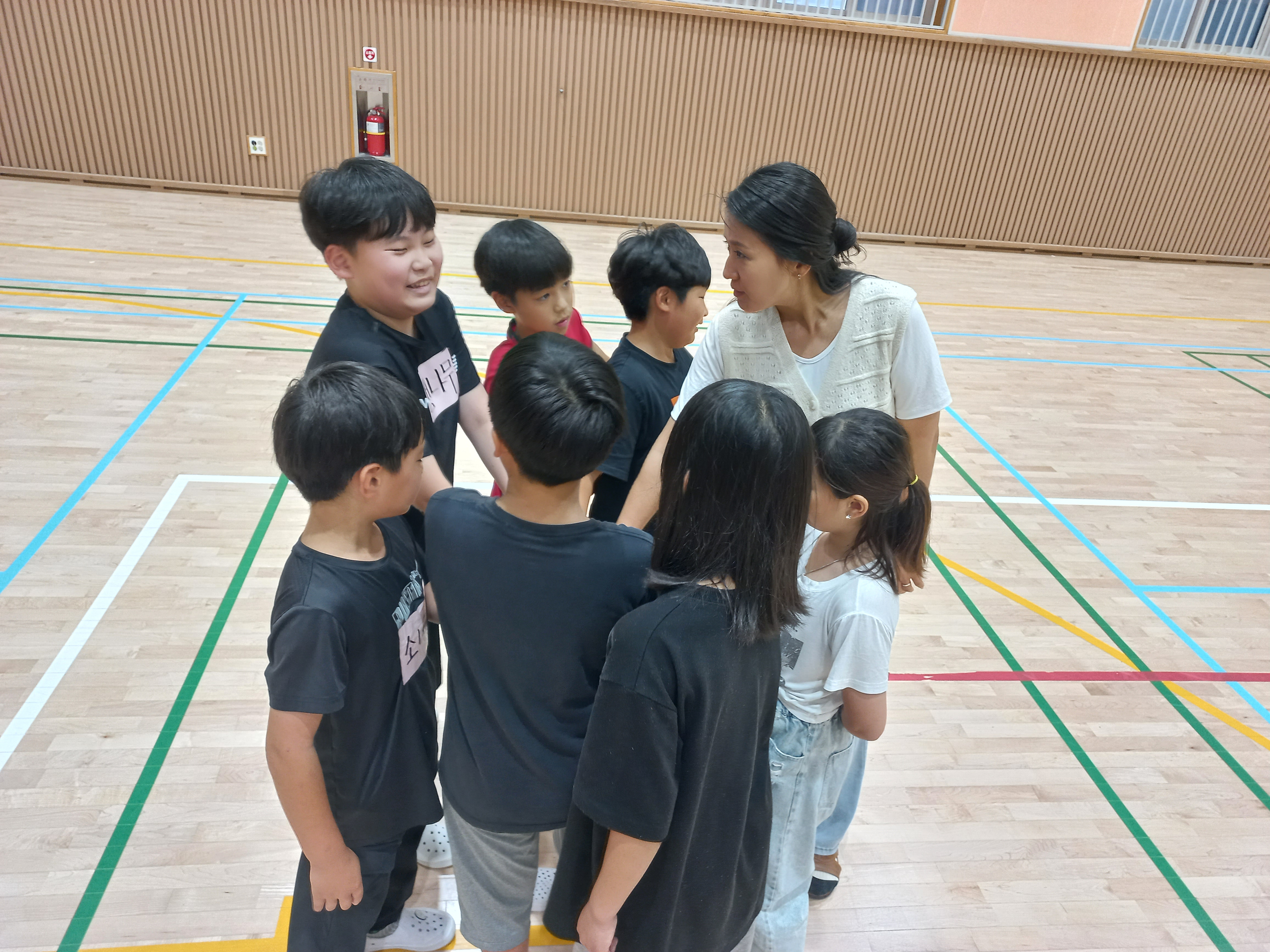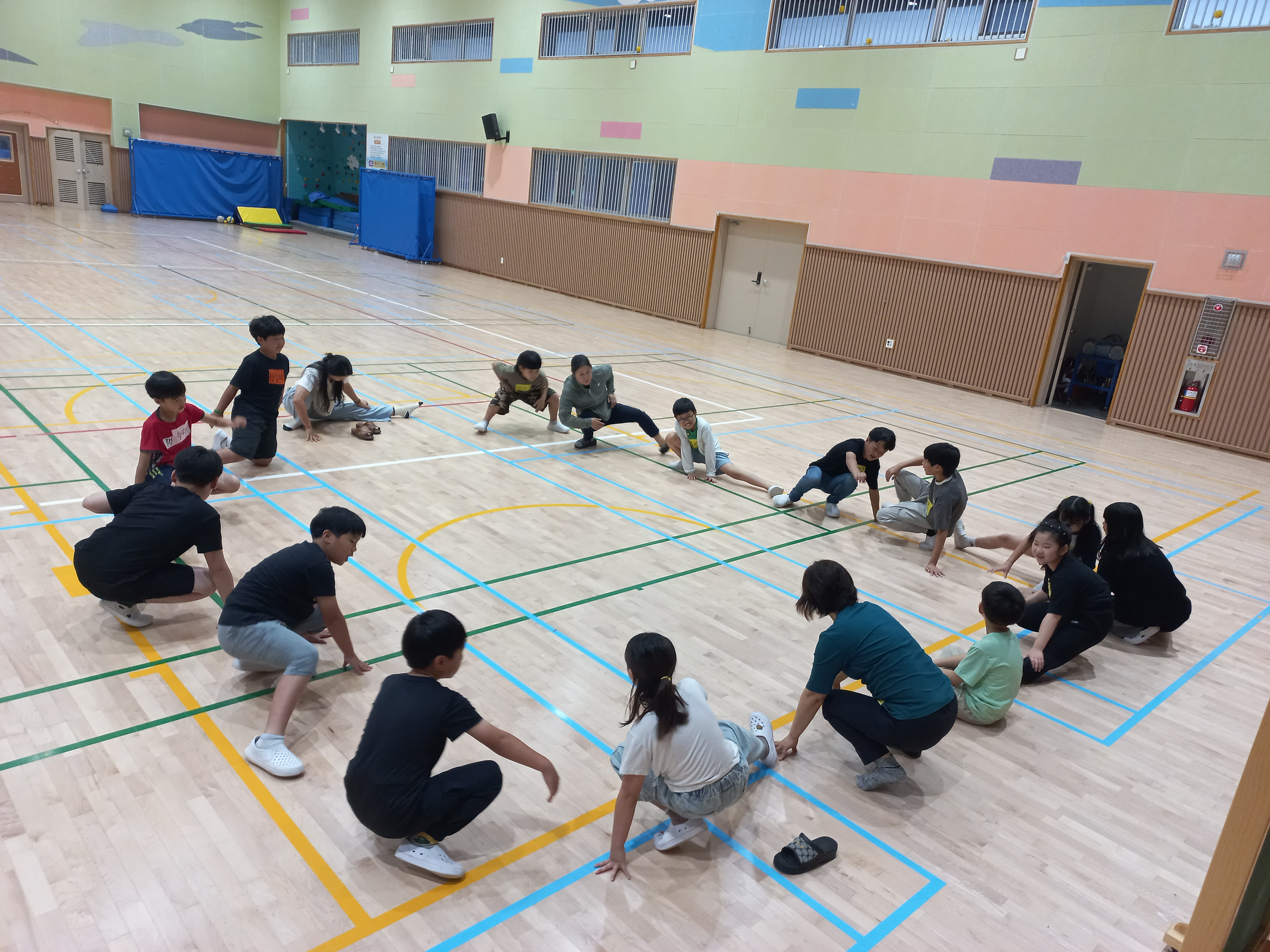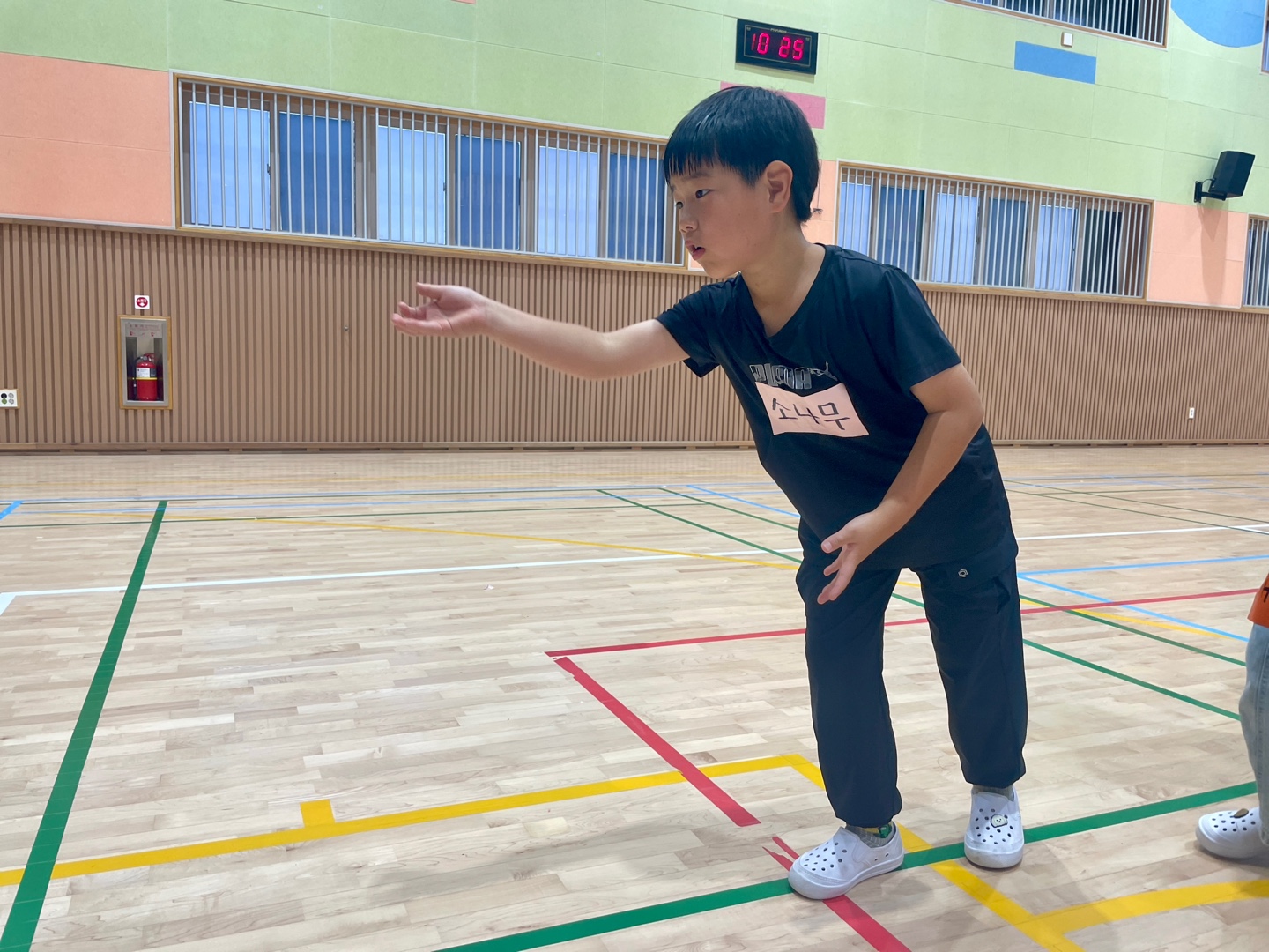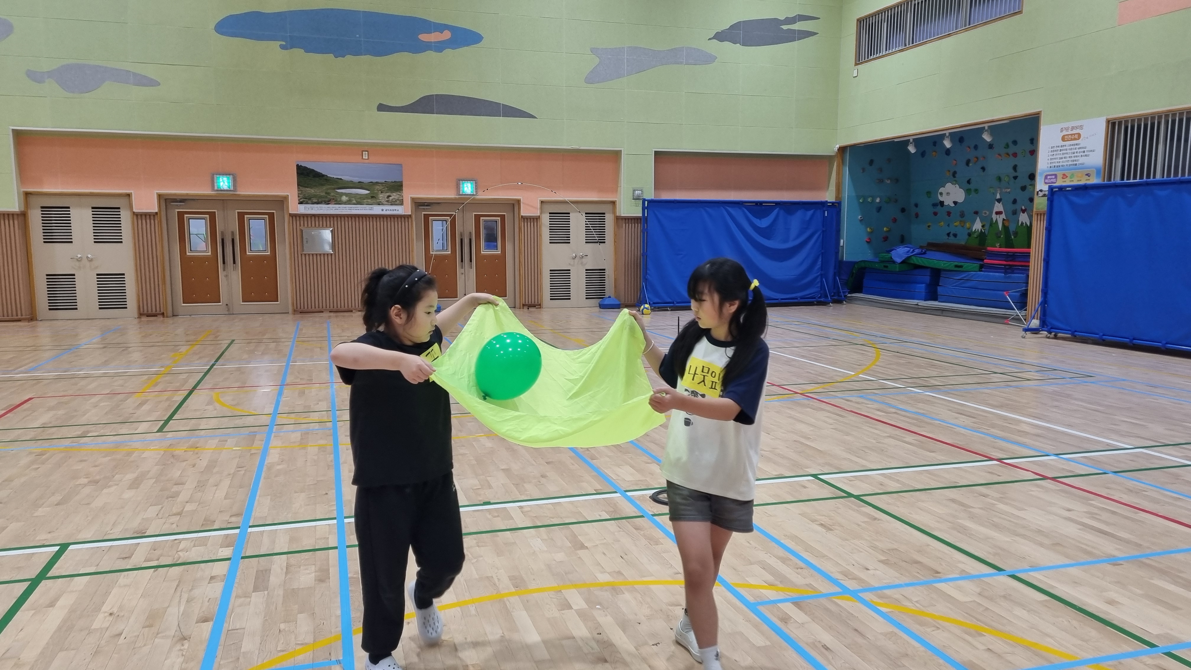 훌라후프 넘고, 오재미 담고, 구르고, 돌아서 달린다.