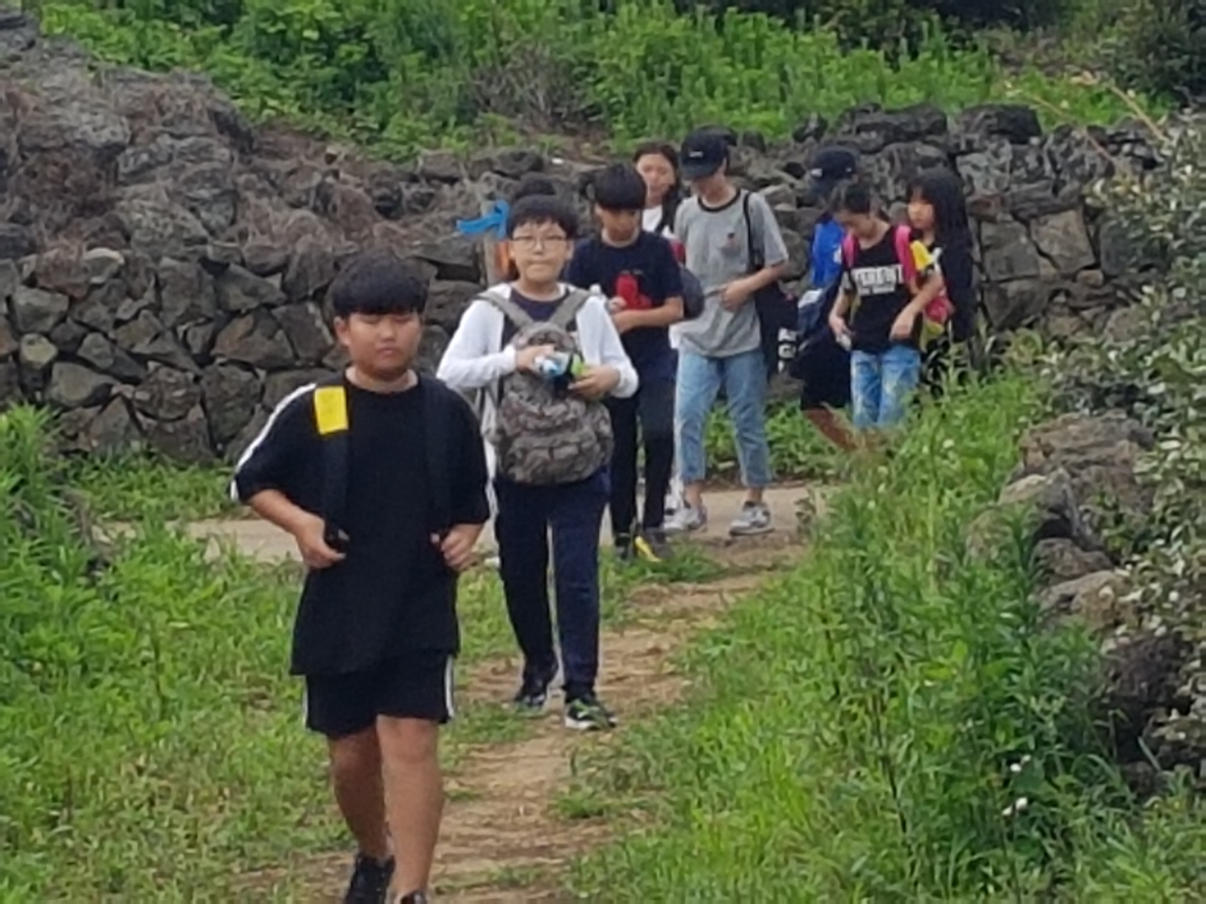 21코스 중에서 가장 난코스!! 지미봉을 오르고 있는 친구들