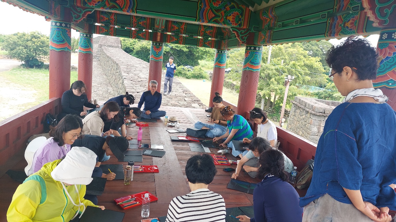 우리가 느끼고 온 비양도를 색연필로 표현한다.