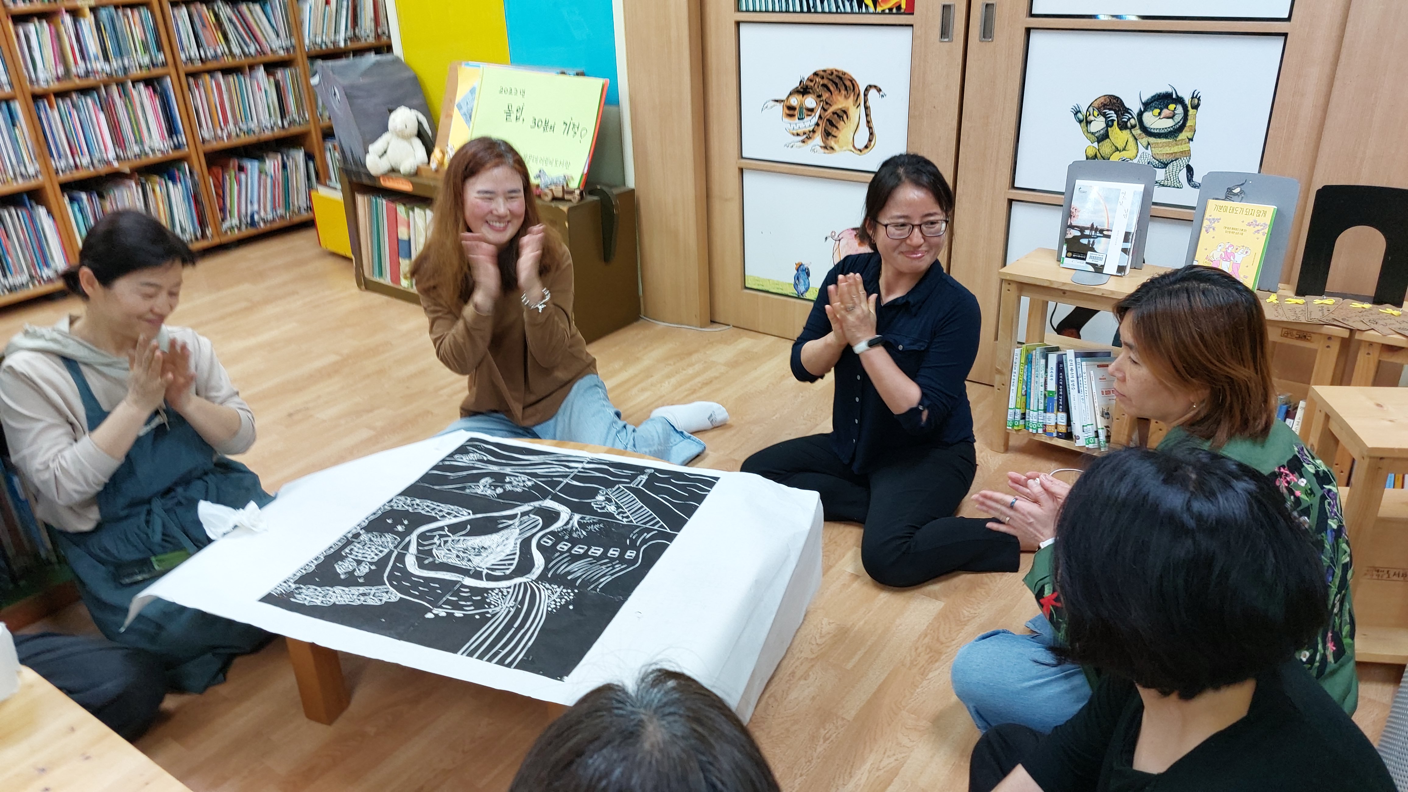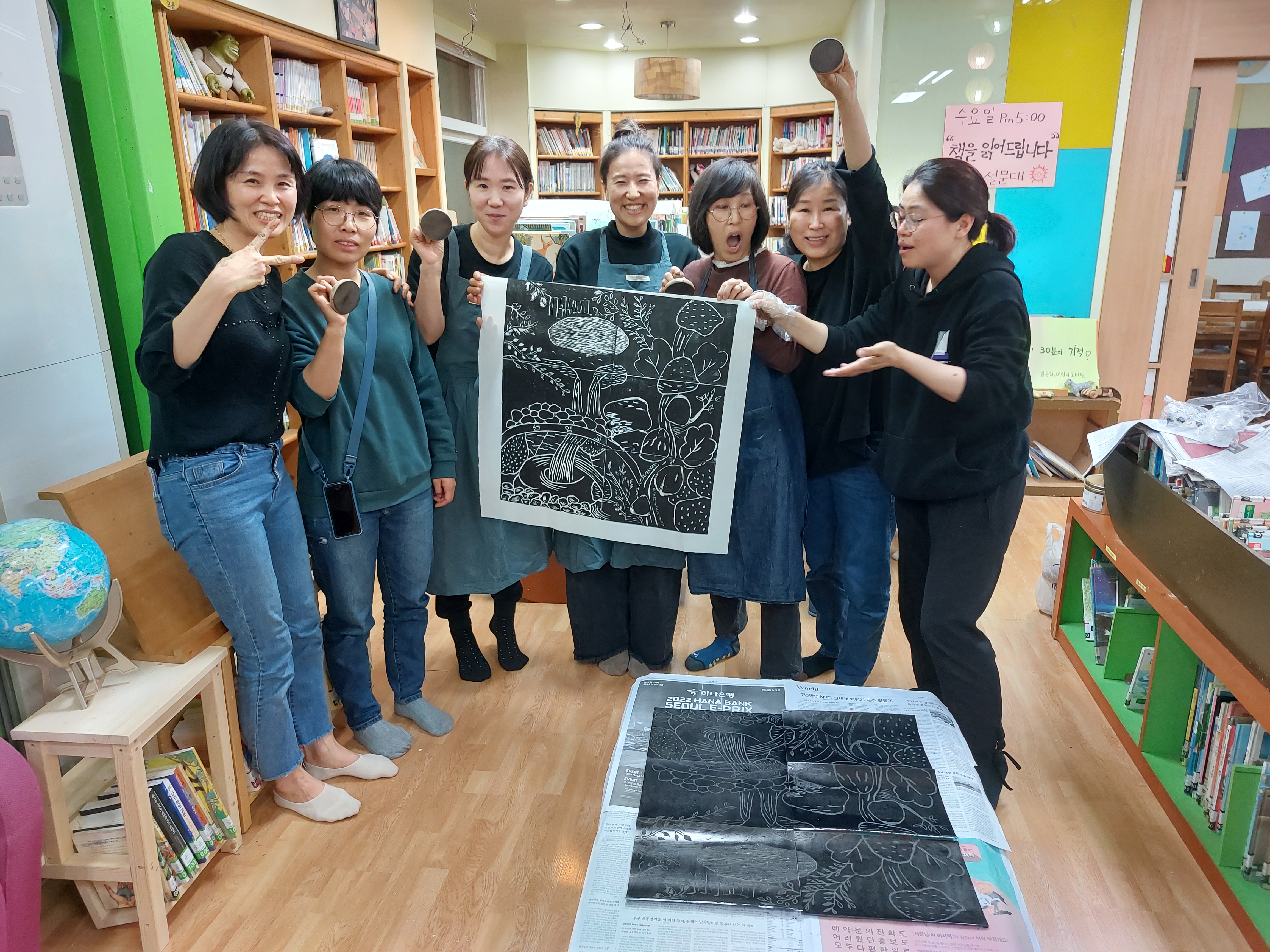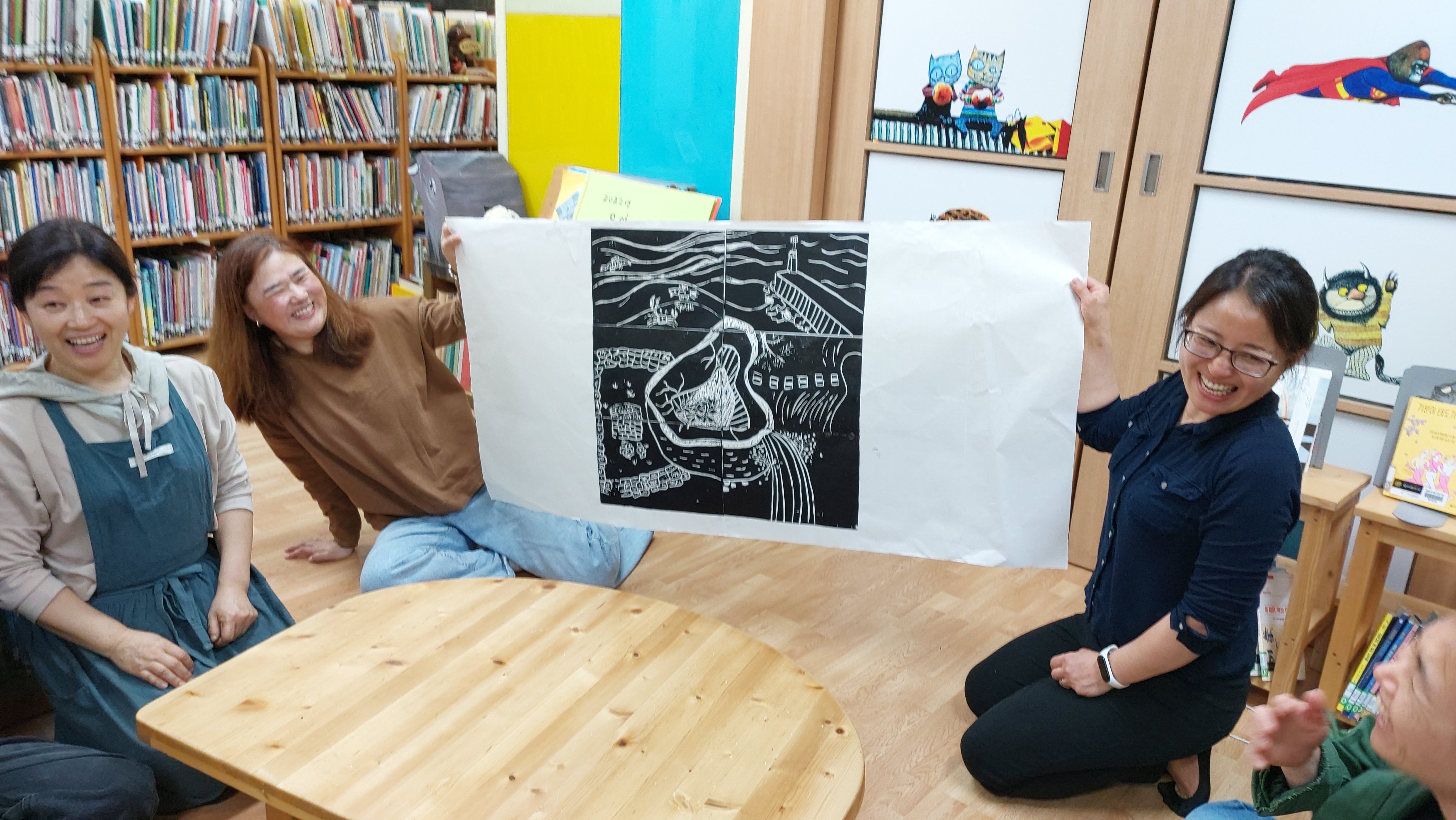 그 길을 판화로 찍기 위해 설문대어린이도서관에 모였다.