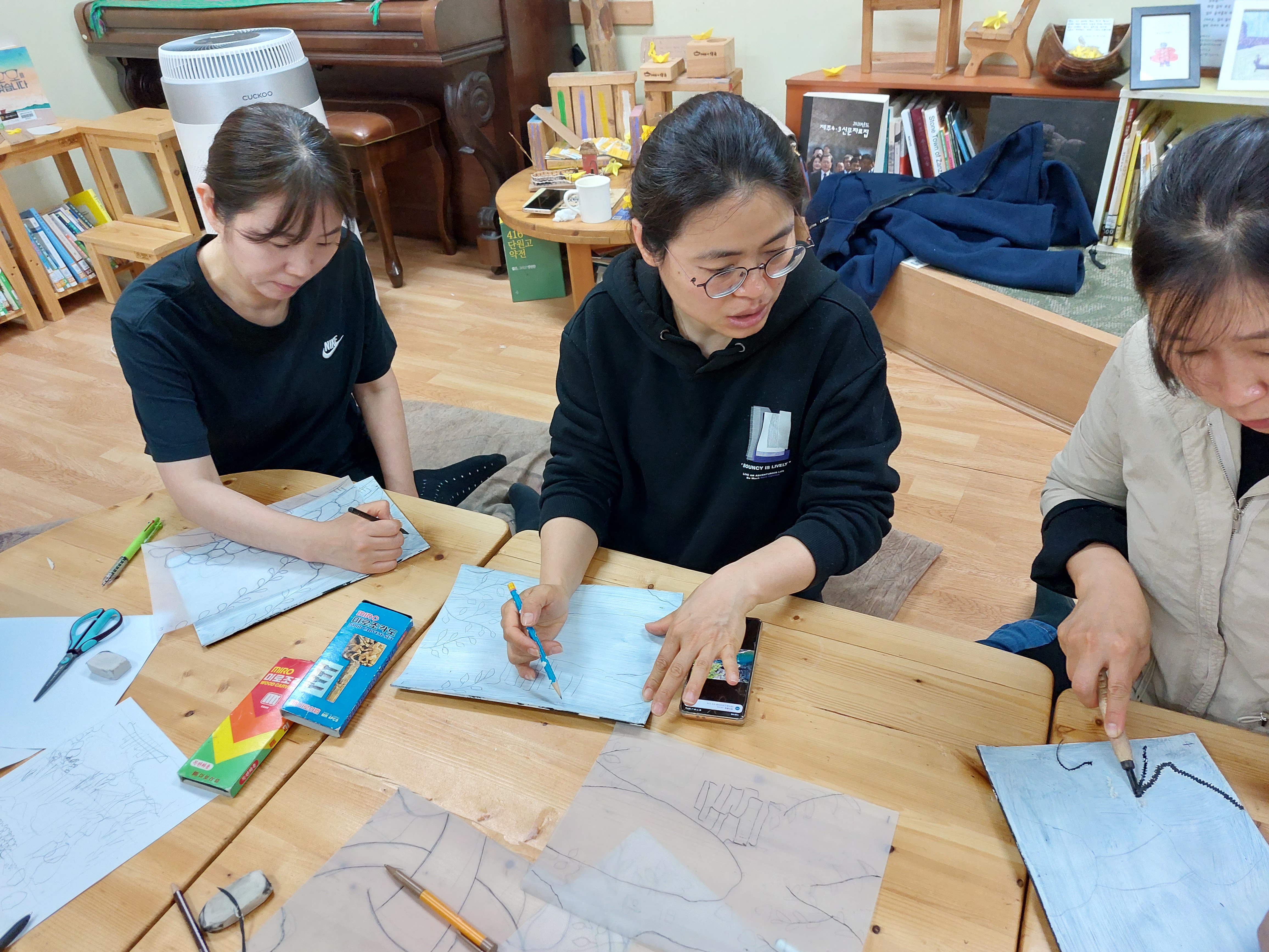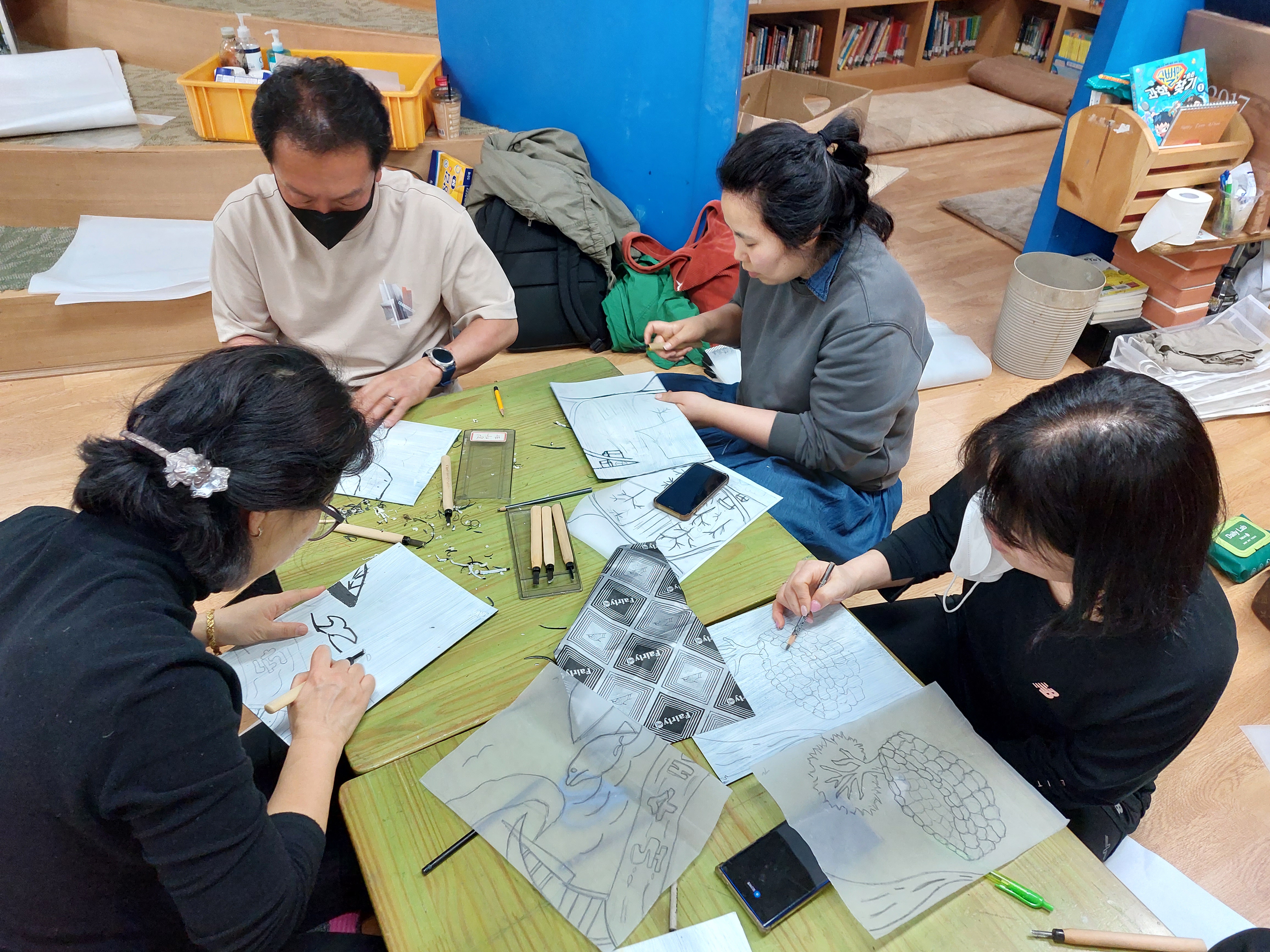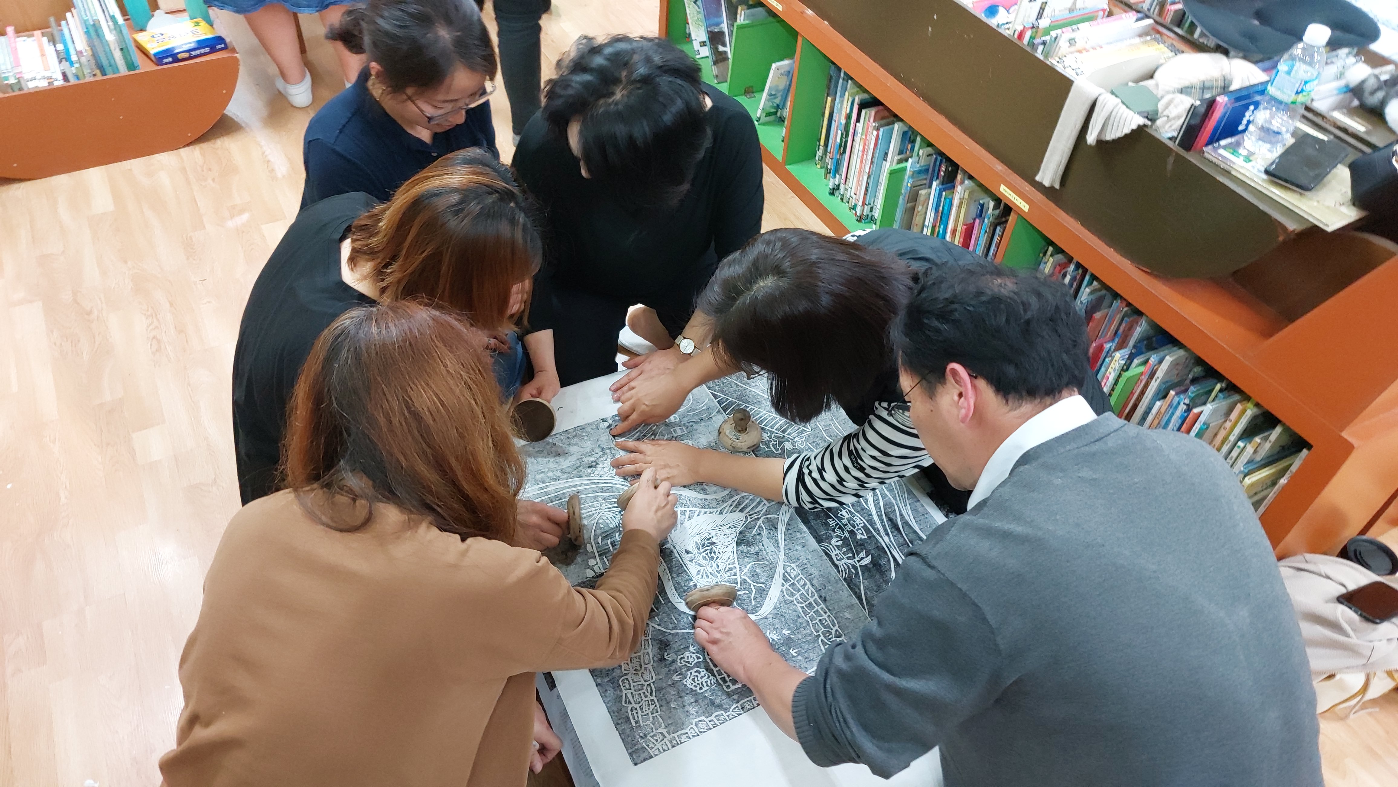 그 길을 판화로 찍기 위해 설문대어린이도서관에 모였다.
