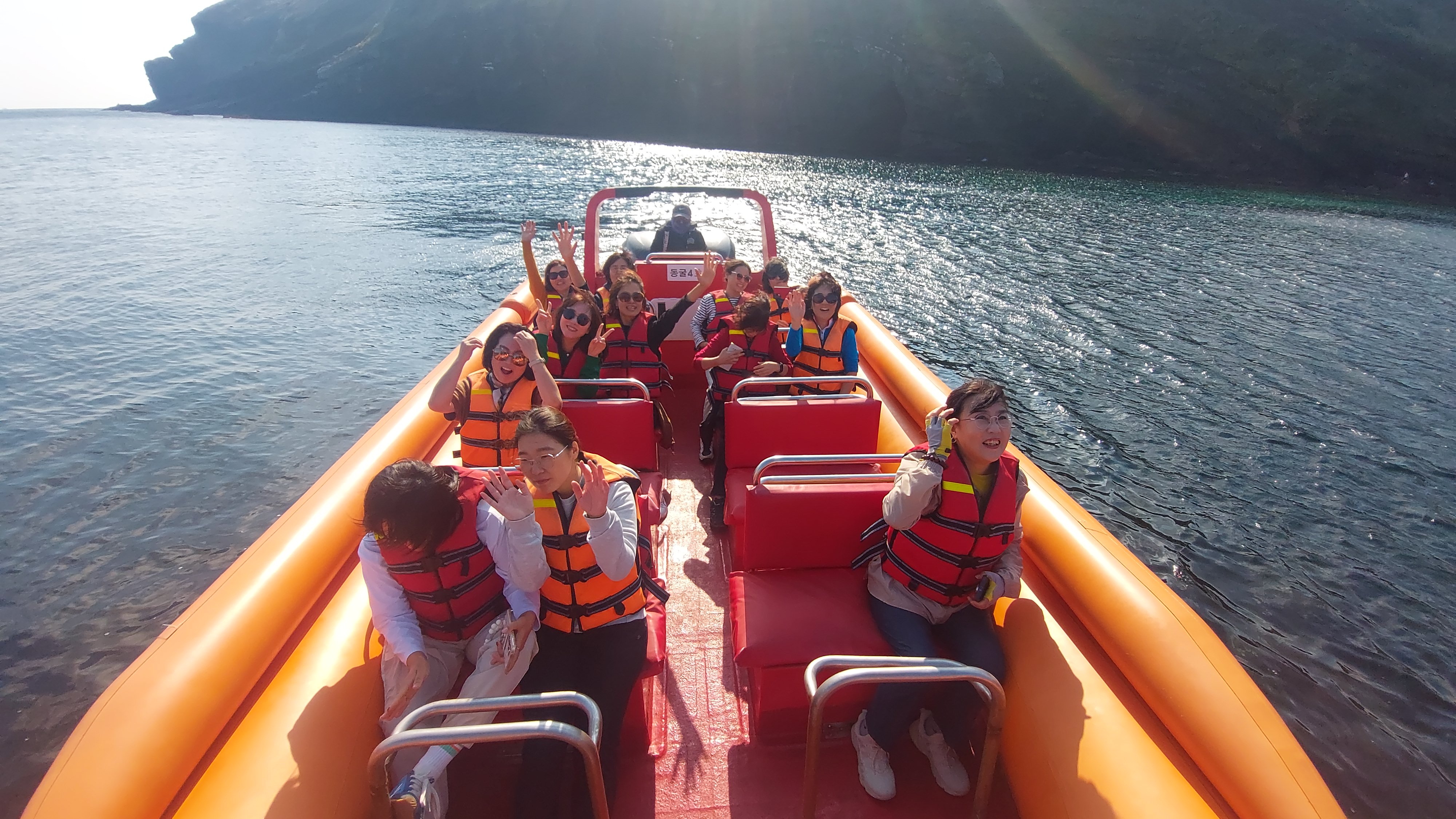 보트를 타고 우도 북쪽 절벽을 둘러본다.
