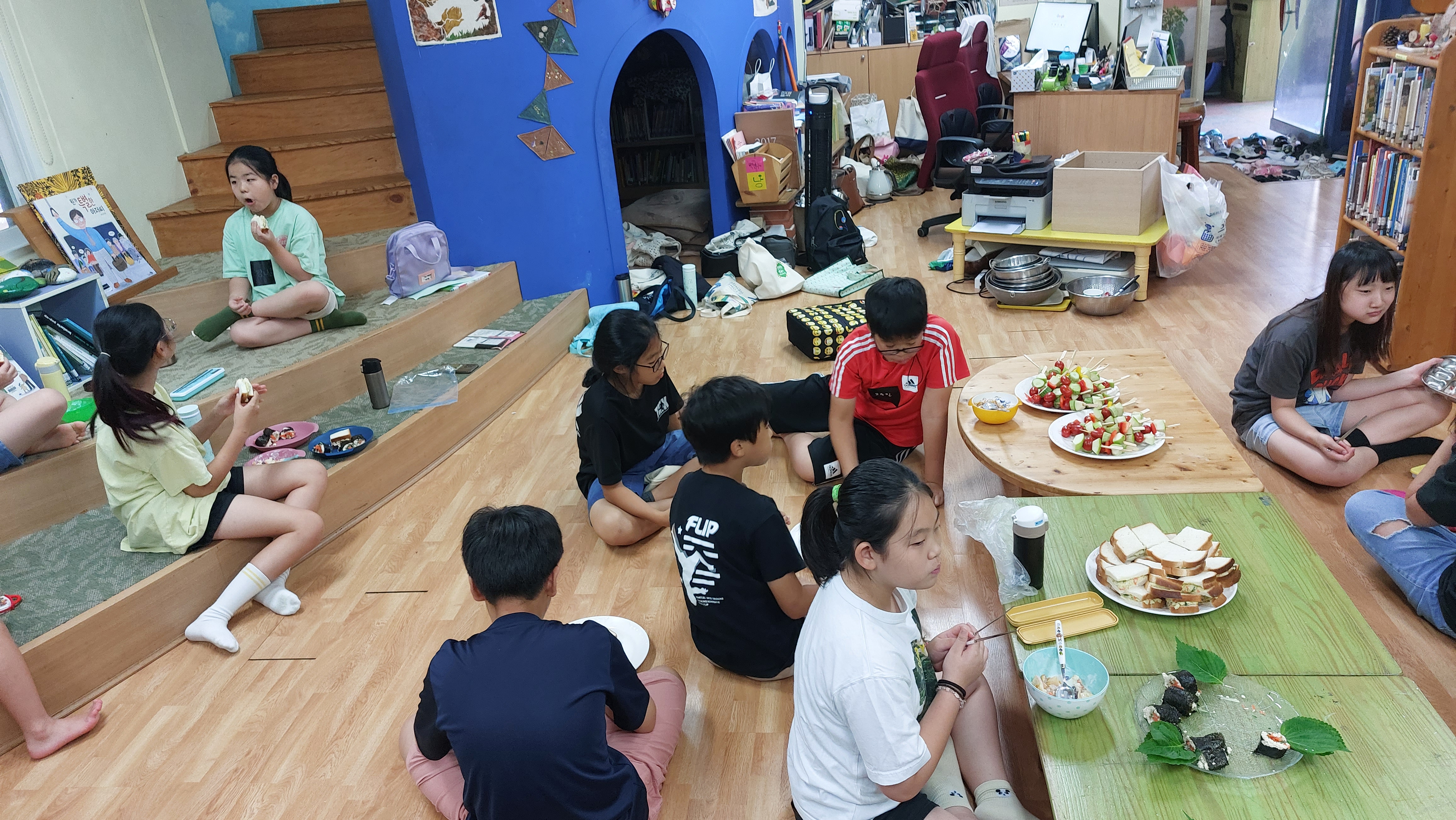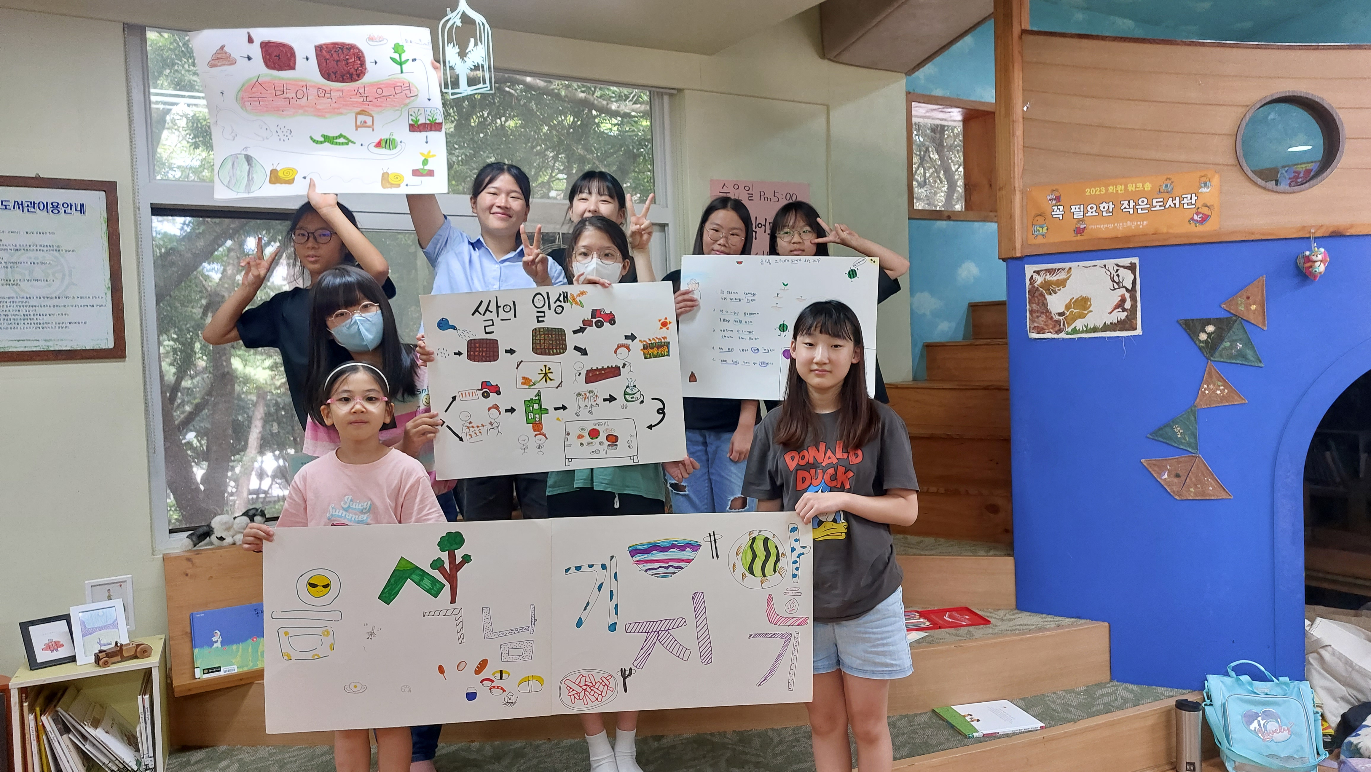 방학 시작과 동시에 설문대어린이도서관에 온 아이들.