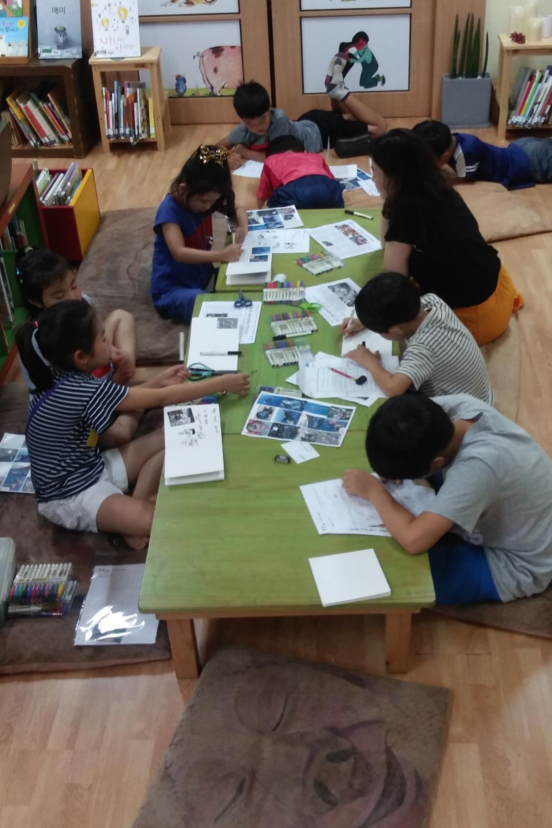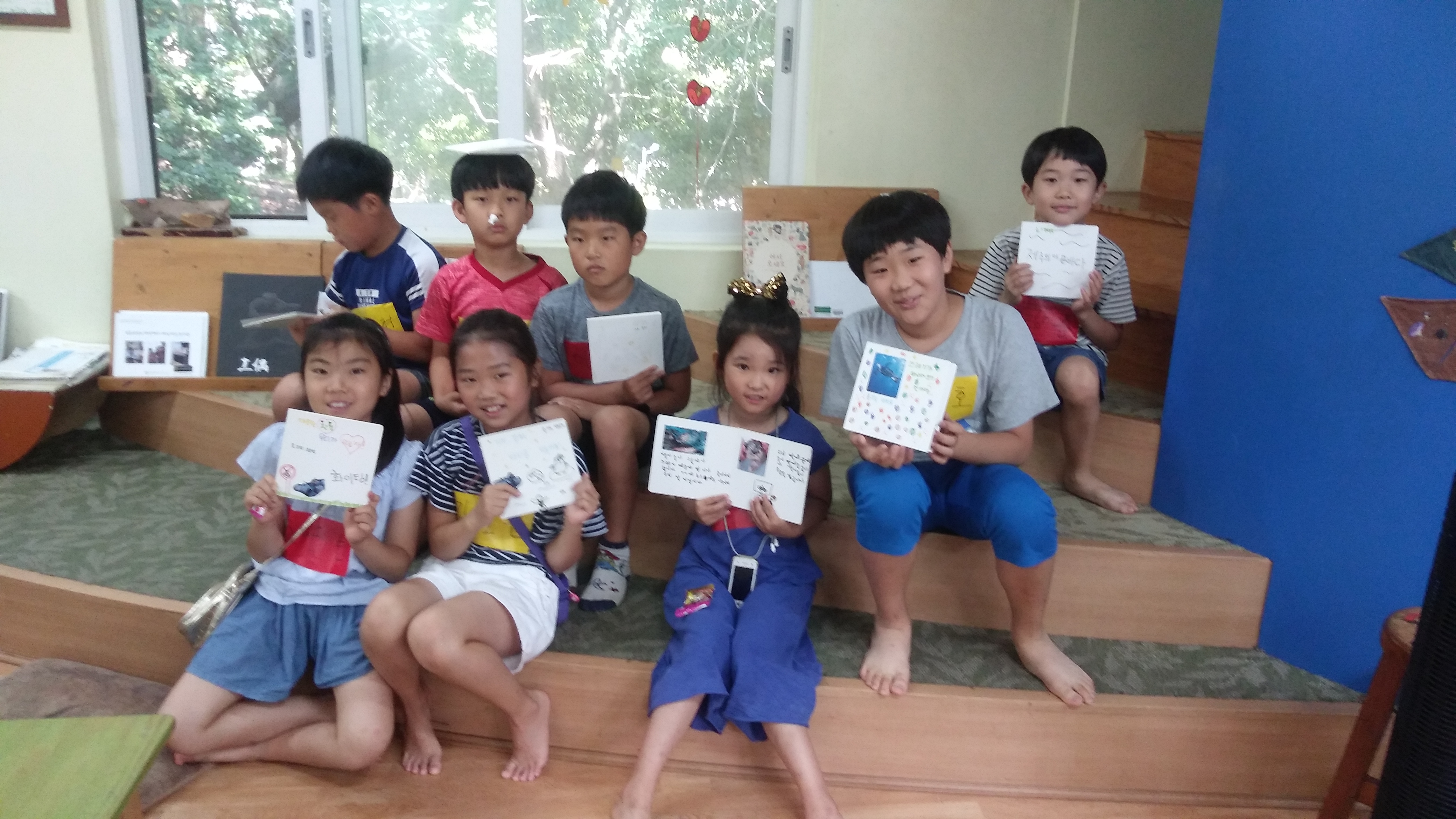 뜨거운 여름 더위를 피해 도서관으로 온 친구들.