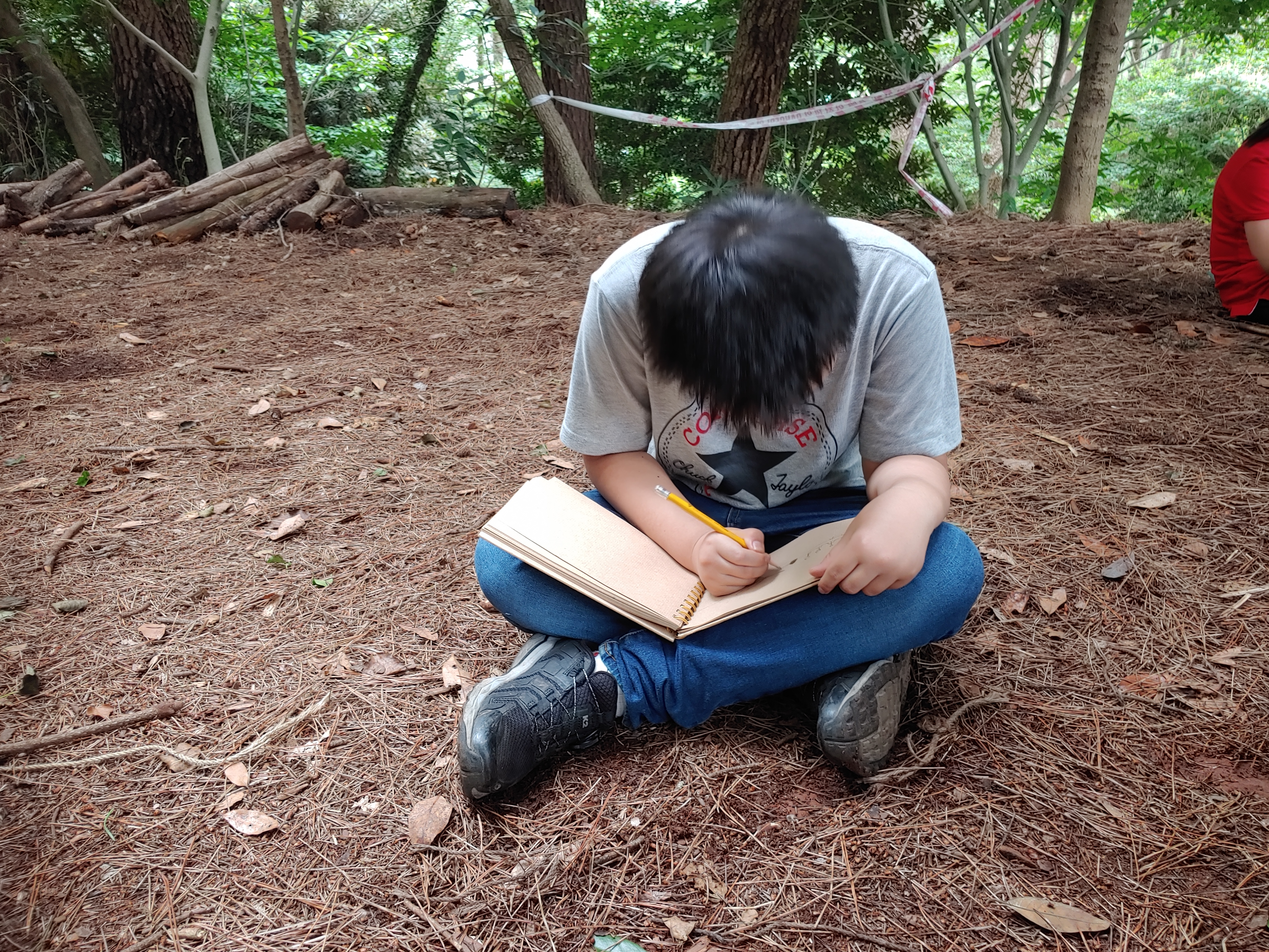덥지만 마스크는 벗지 않는 준영이.