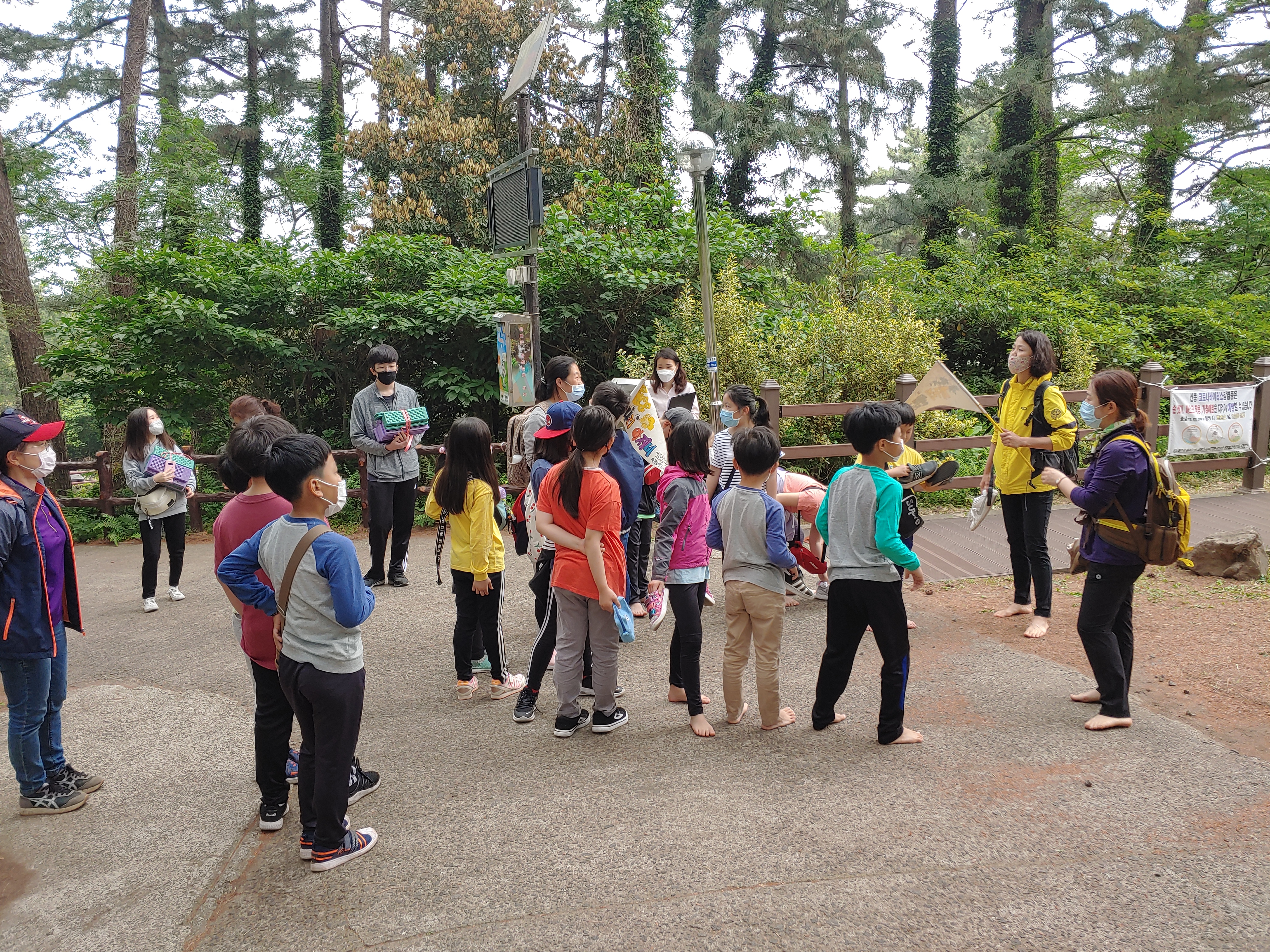 애들아 맨발로 걸어볼까?