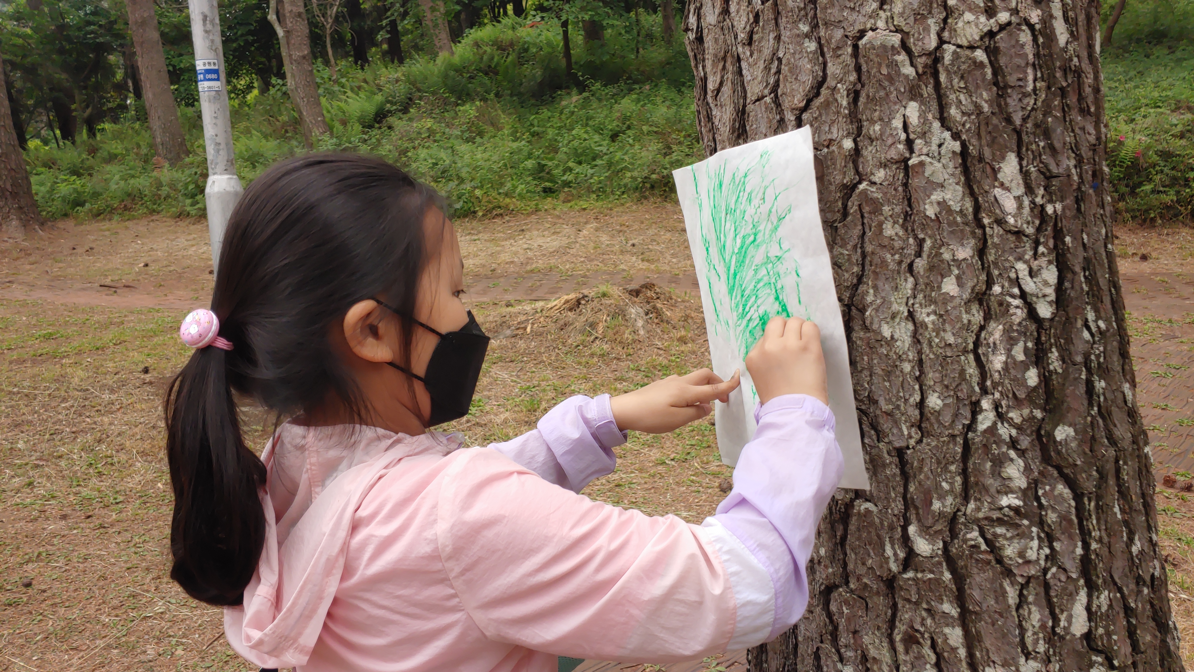 맨들 맨들한 나무를 알록하게 탁본 뜨는 정현이^^