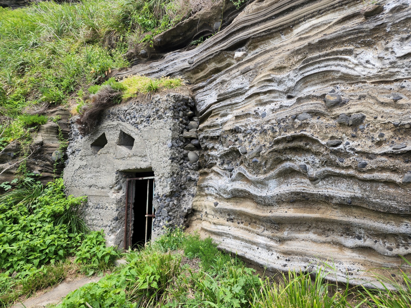 화산탄이 날아와 지질구조에 박혔다.