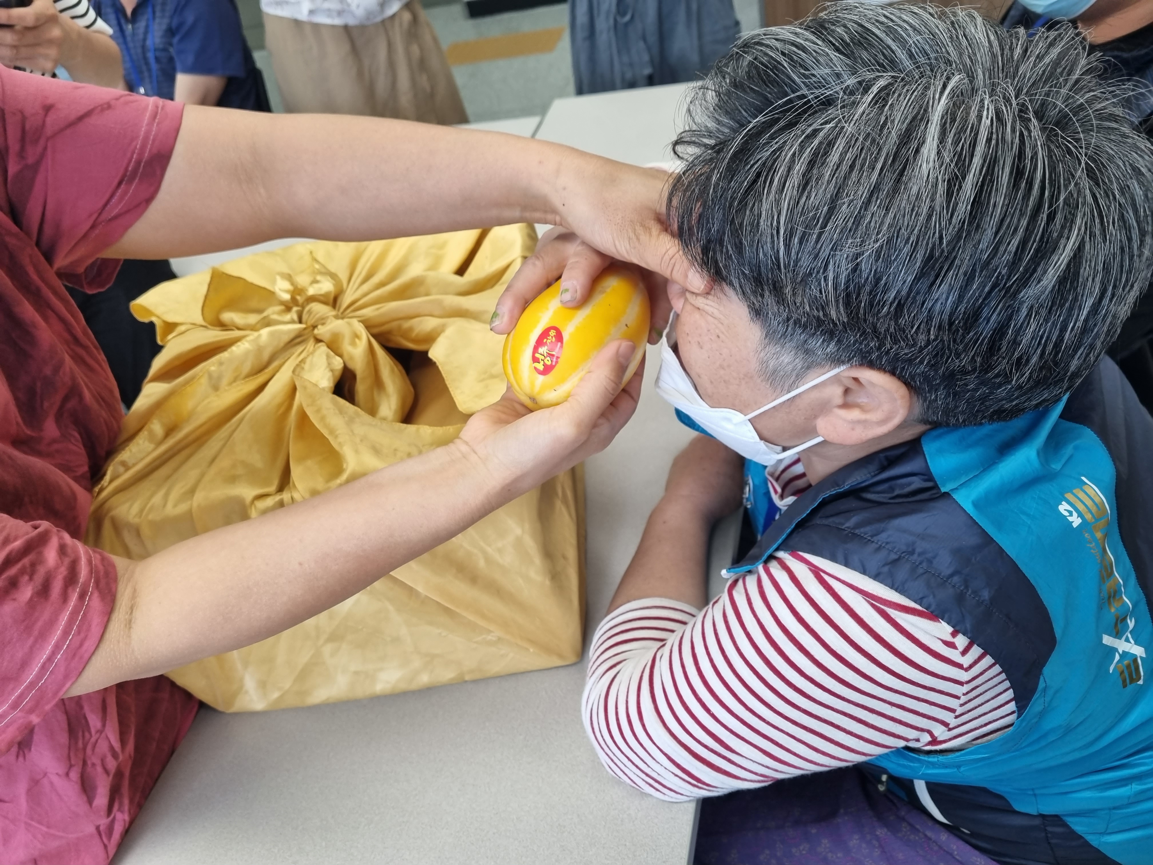 그래도 몰라 눈으로 보며 '참외!' 라고 외칩니다.