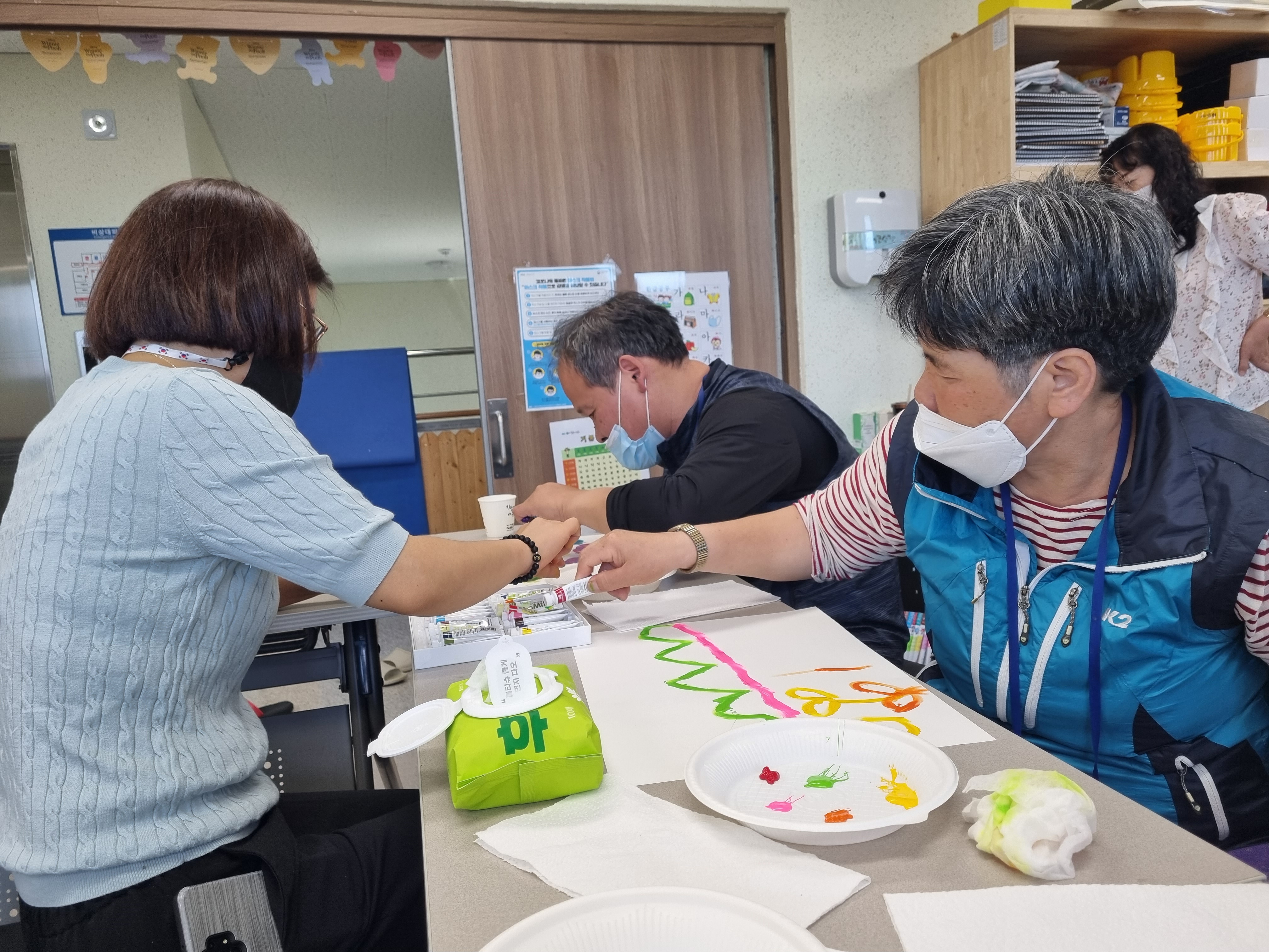 손가락으로 물감의 감촉을 느껴보며~~~