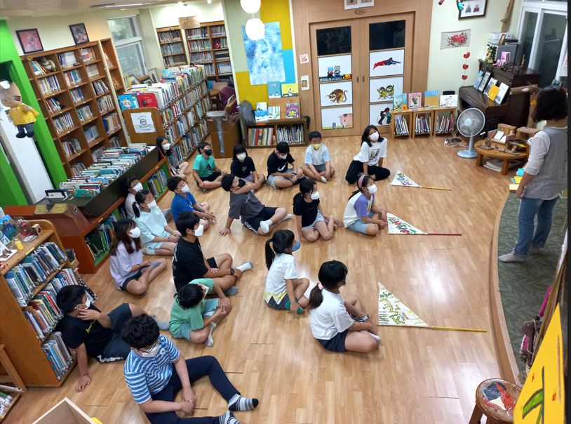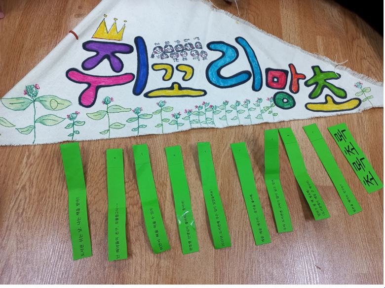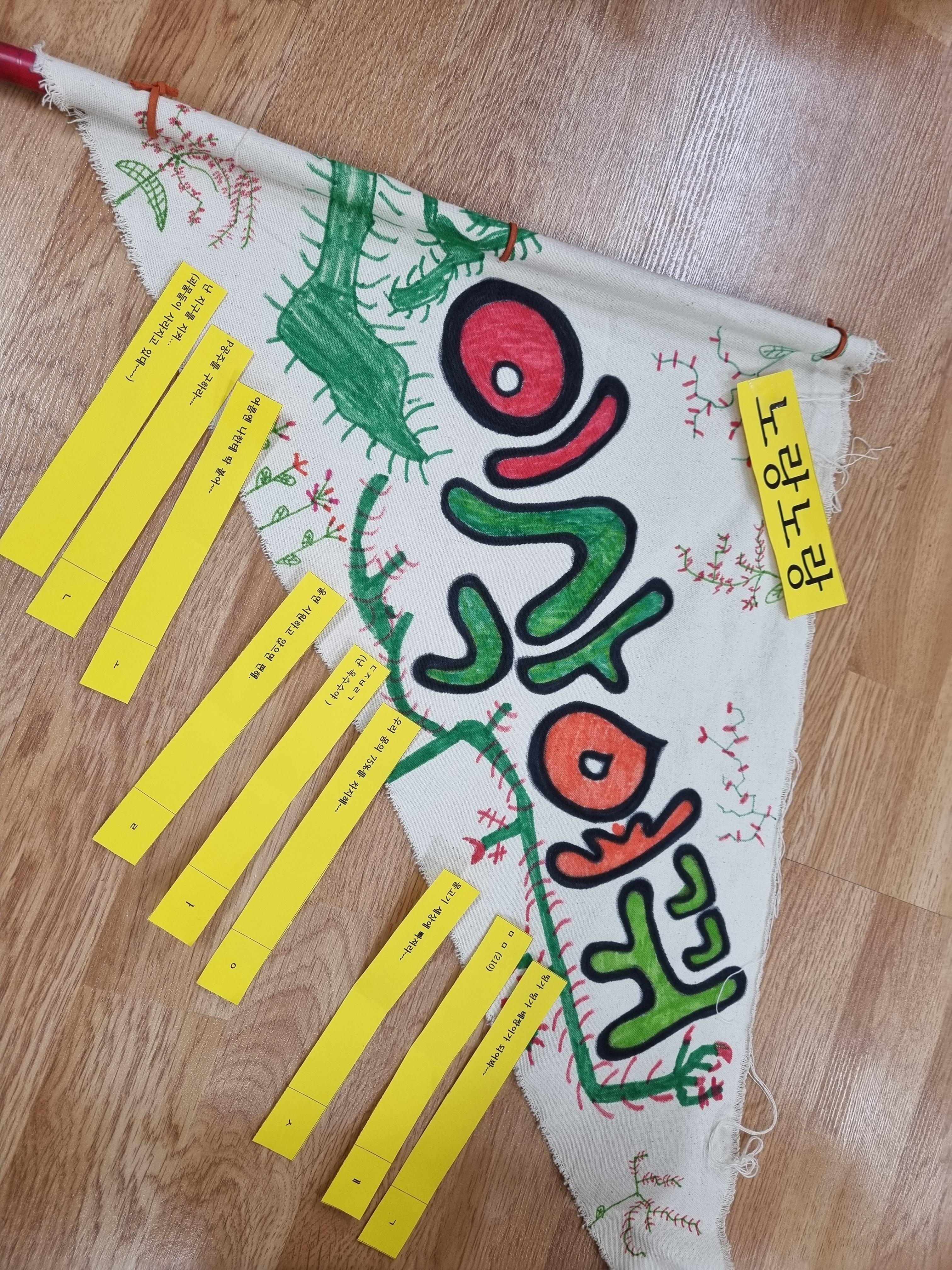 순식간에 방황하는 아이들이 자리를 찾은듯 깃발 뒤에 앉는다.