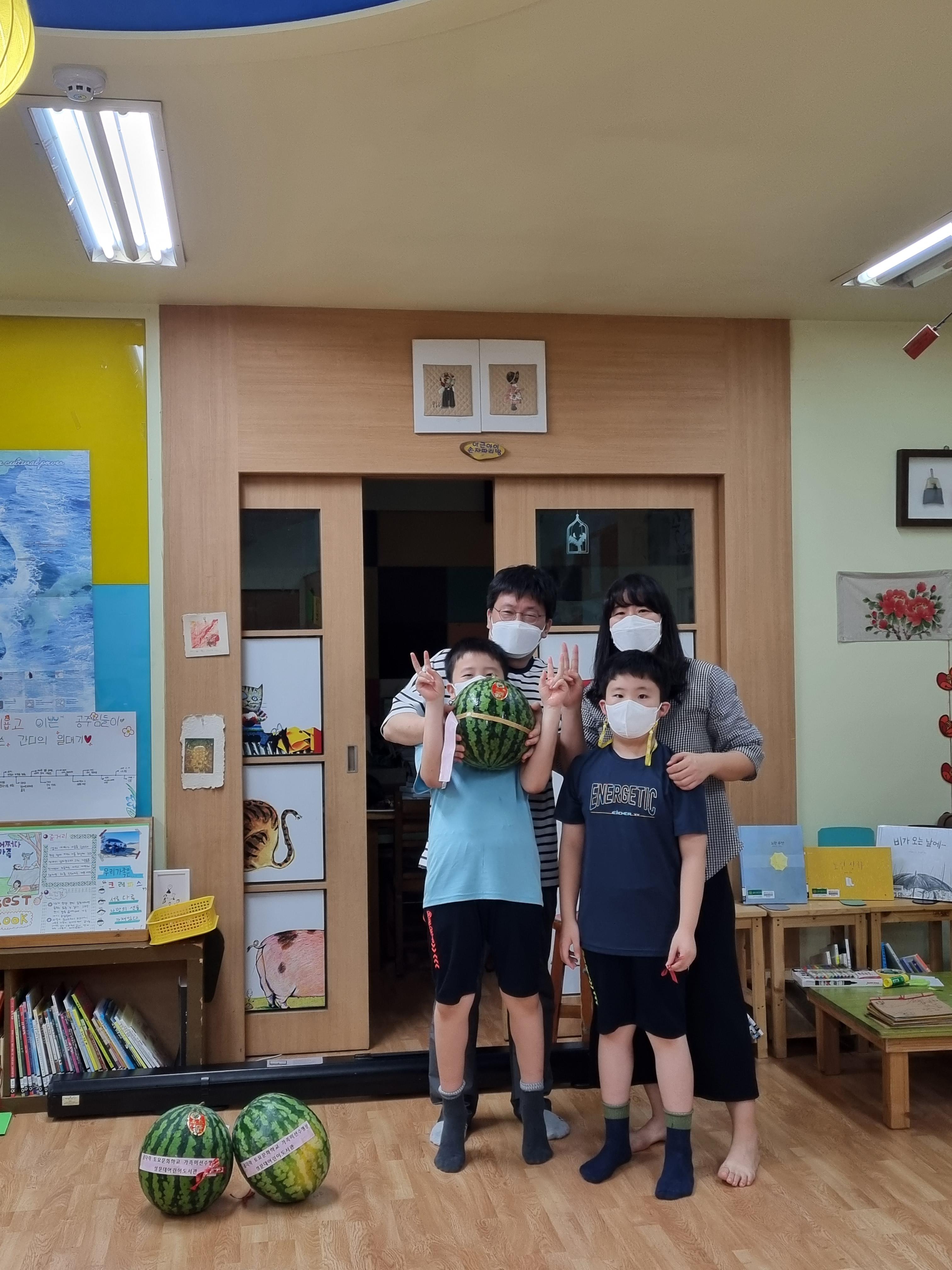 수박 한덩이에 함박 웃음꽃이 피었습니다.
