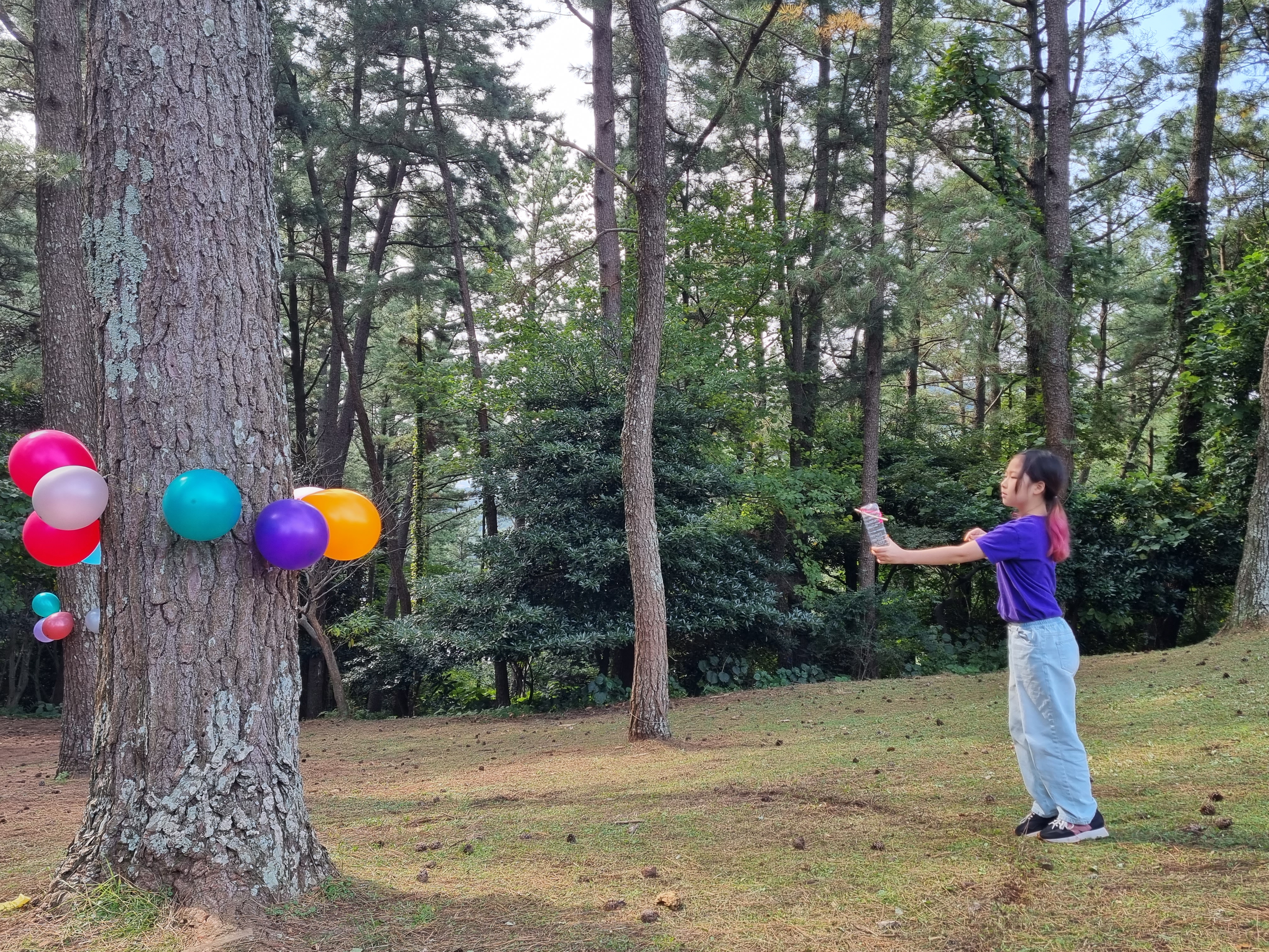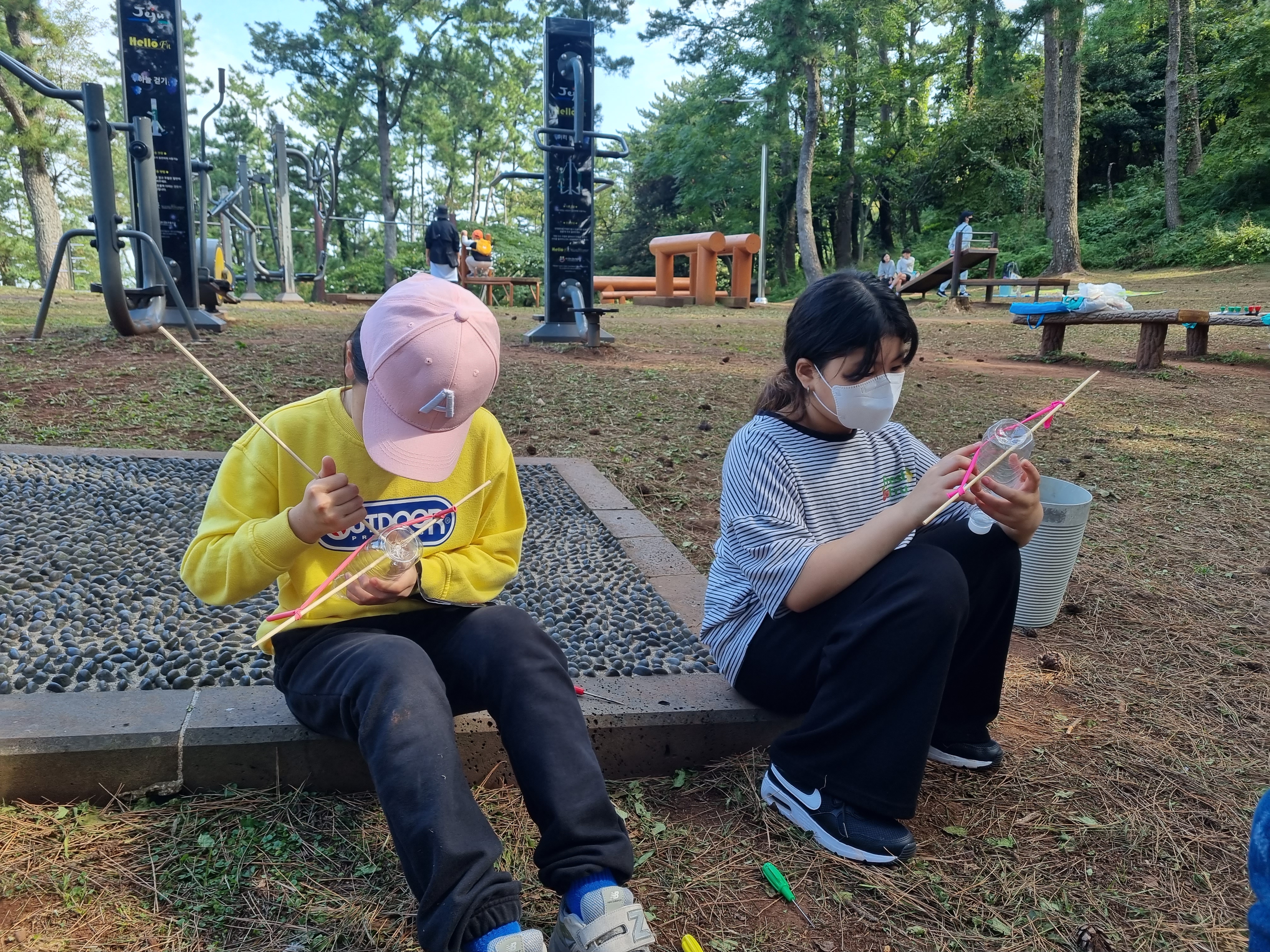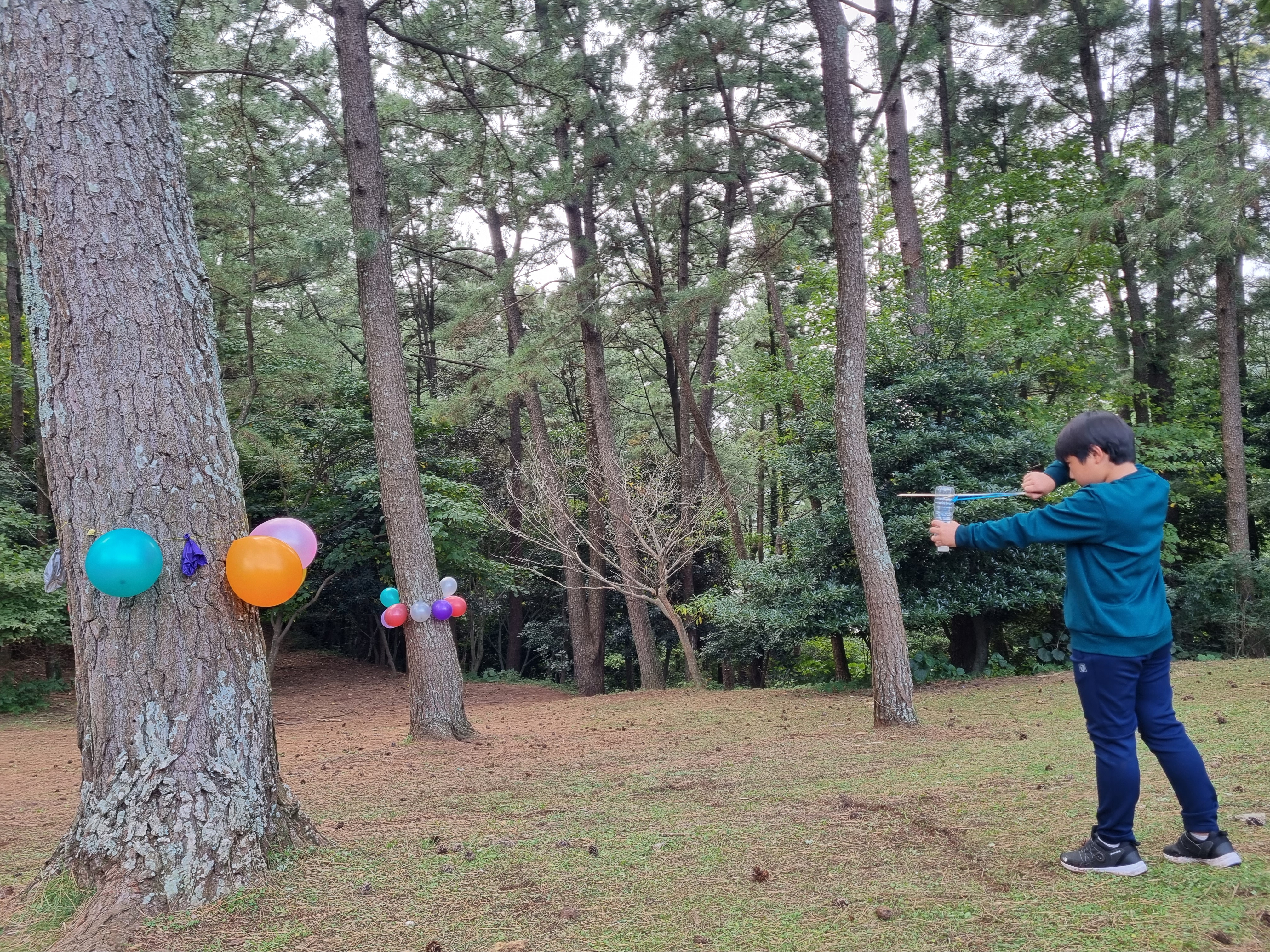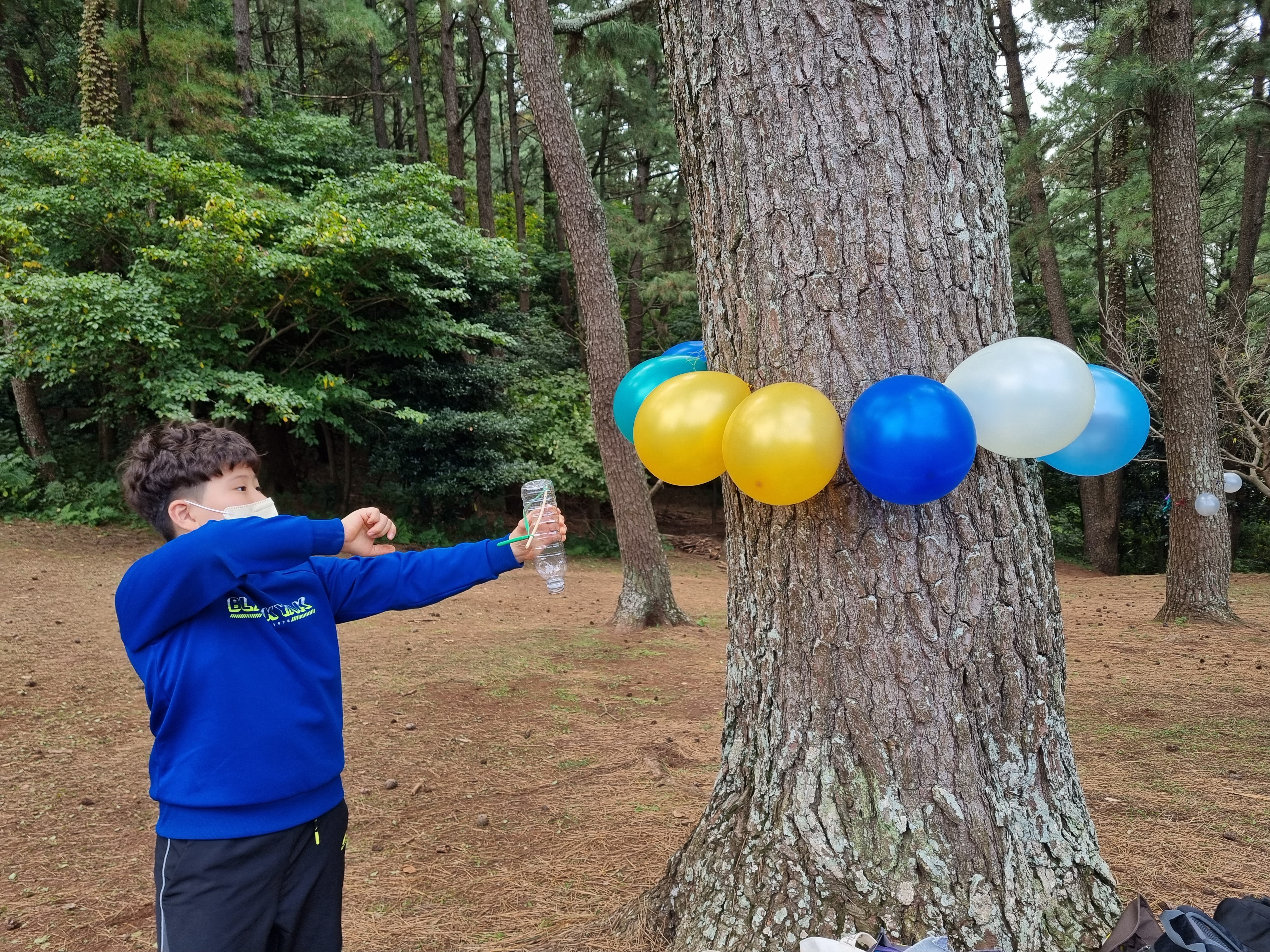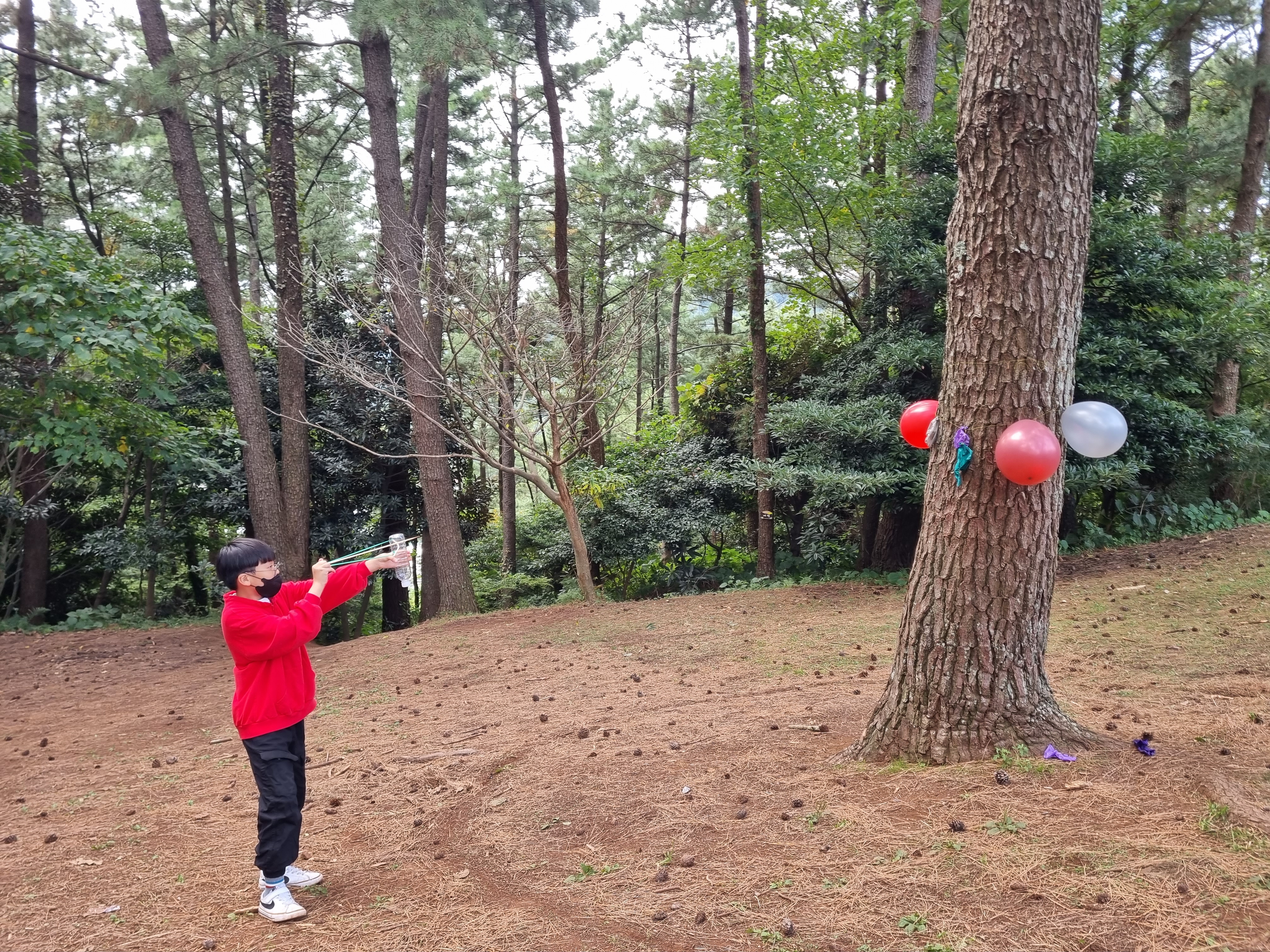 패트병을 이용하여 활 만들어 풍선터뜨리기.