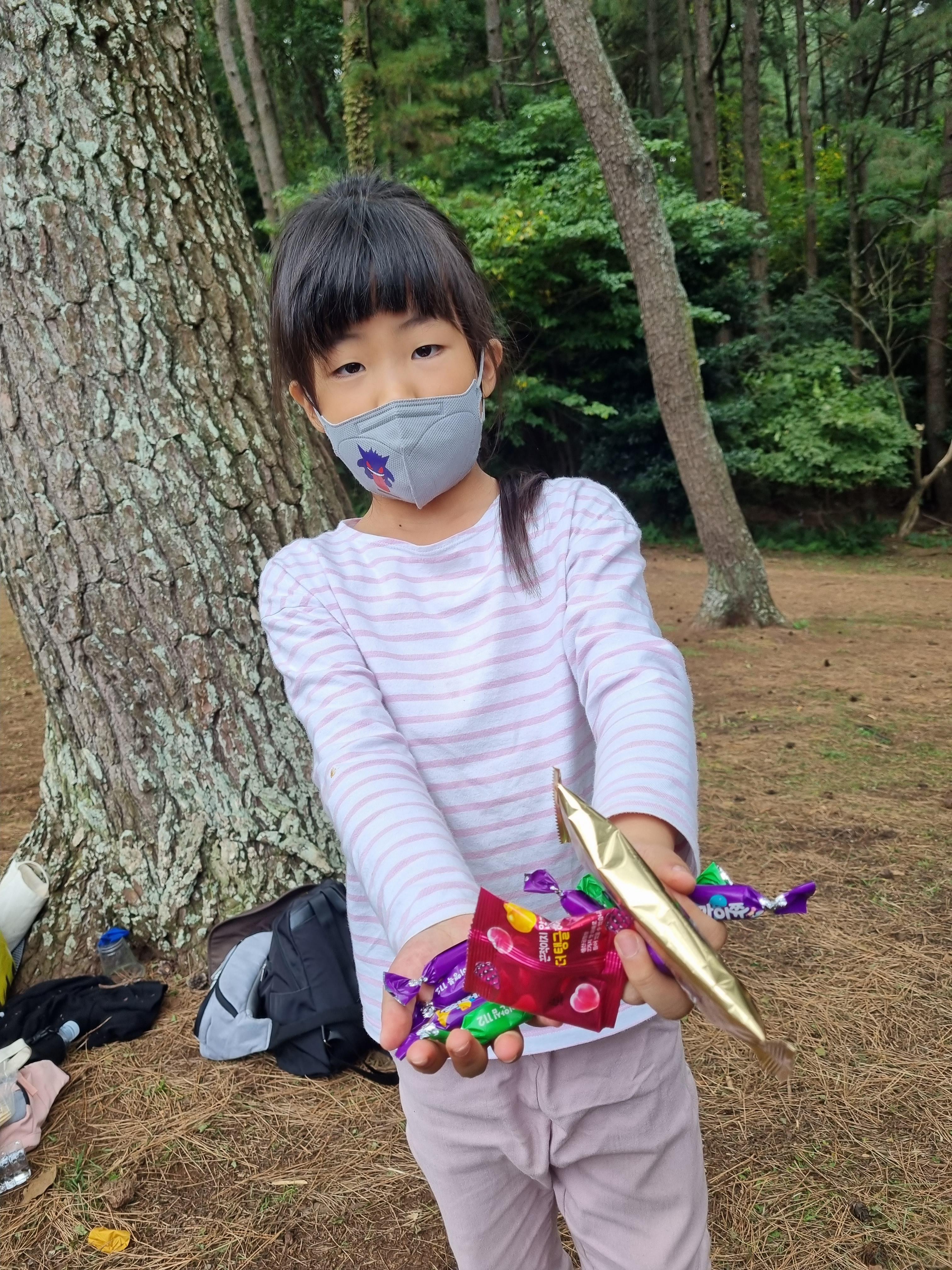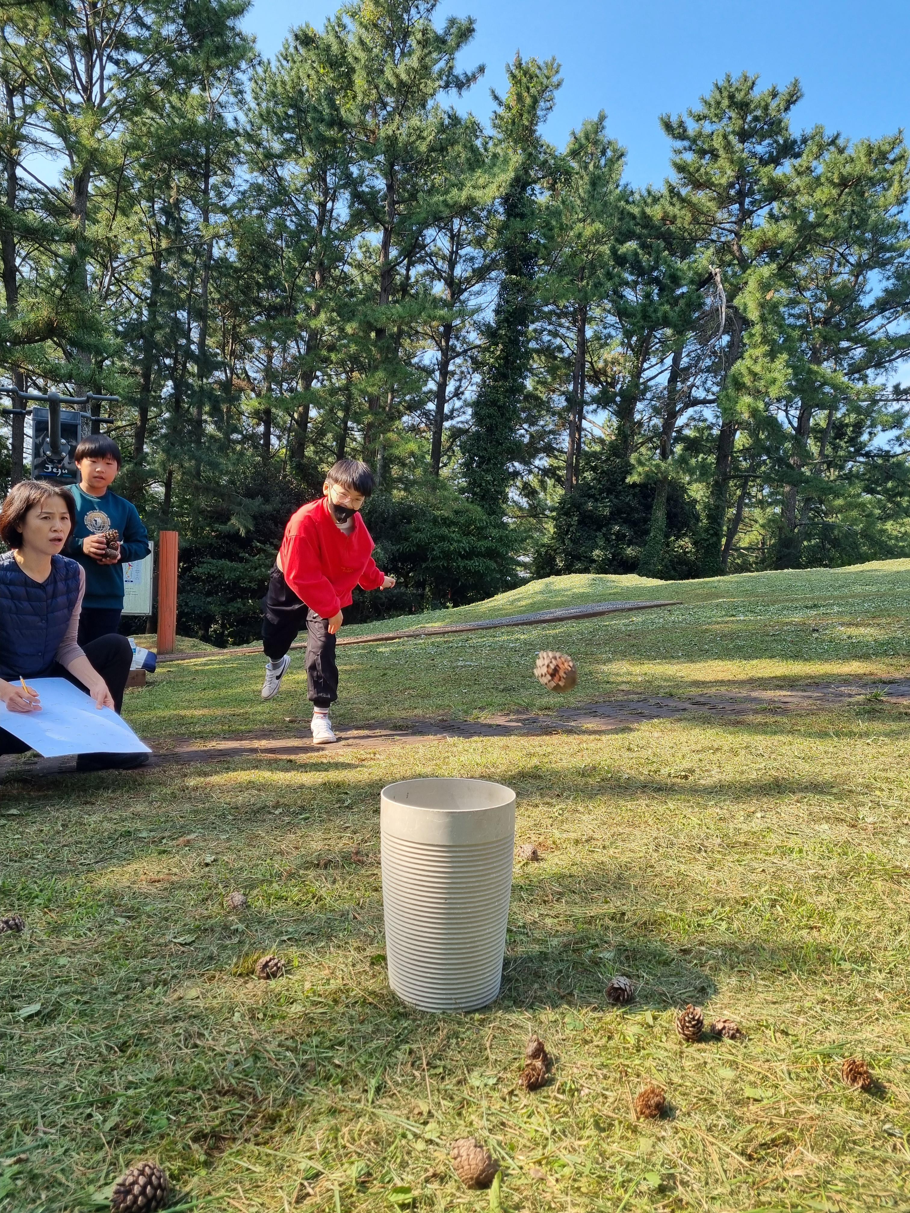 솔방울 들고 줄줄이 서 있는 모습이 예쁘다.