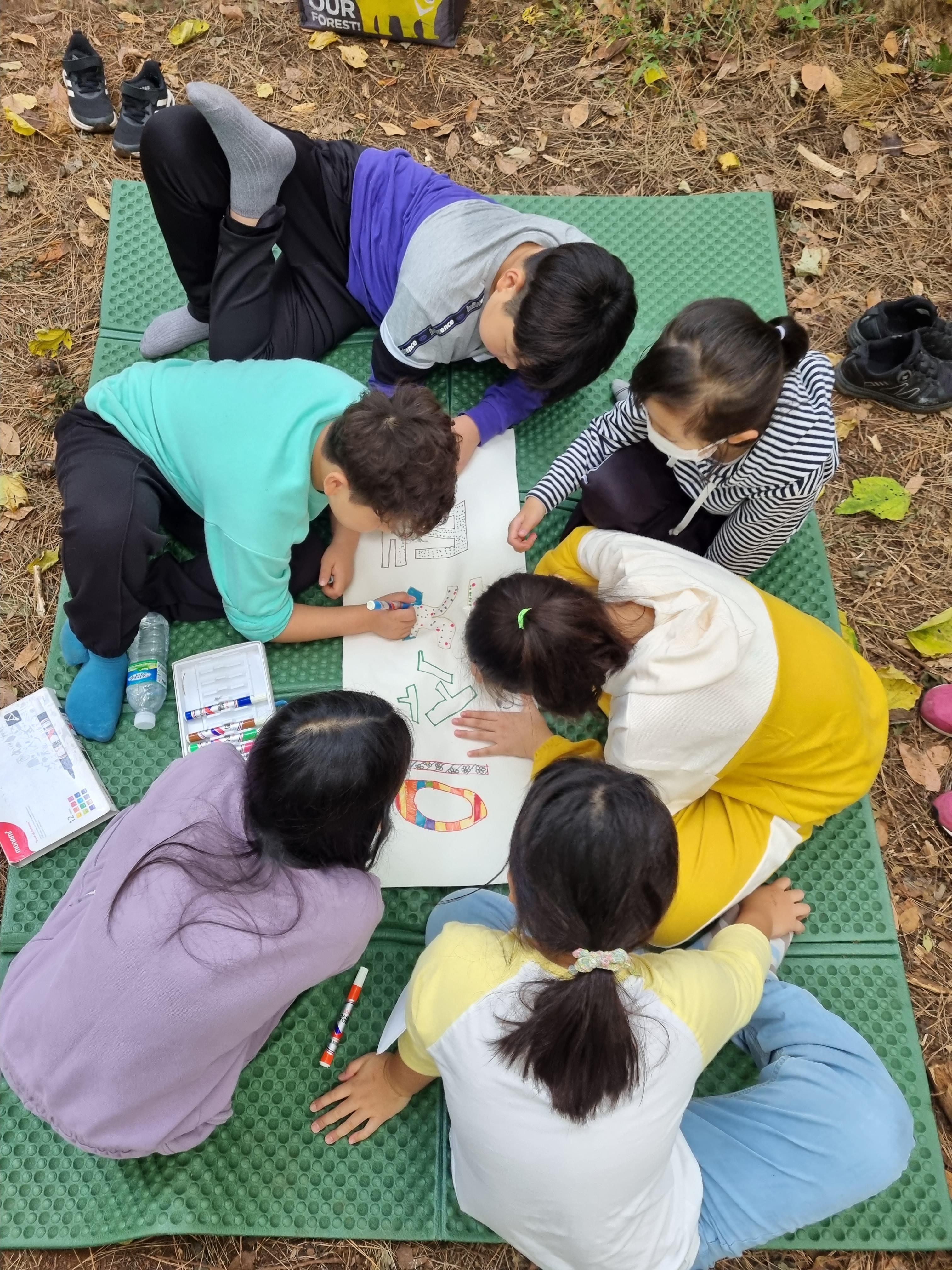 쉬고 싶어서 돗자리를 깔고 노트에 그림을 그리며