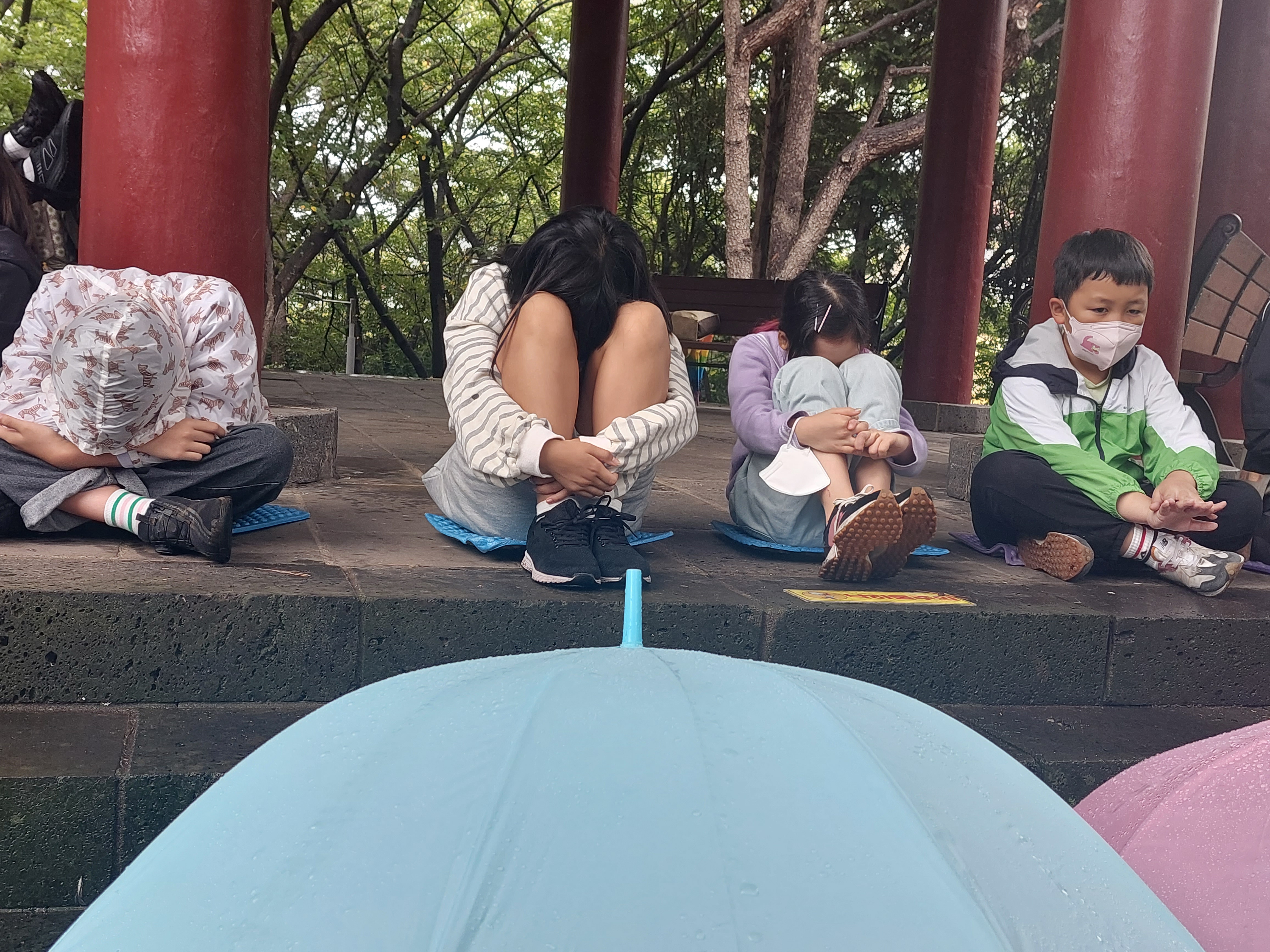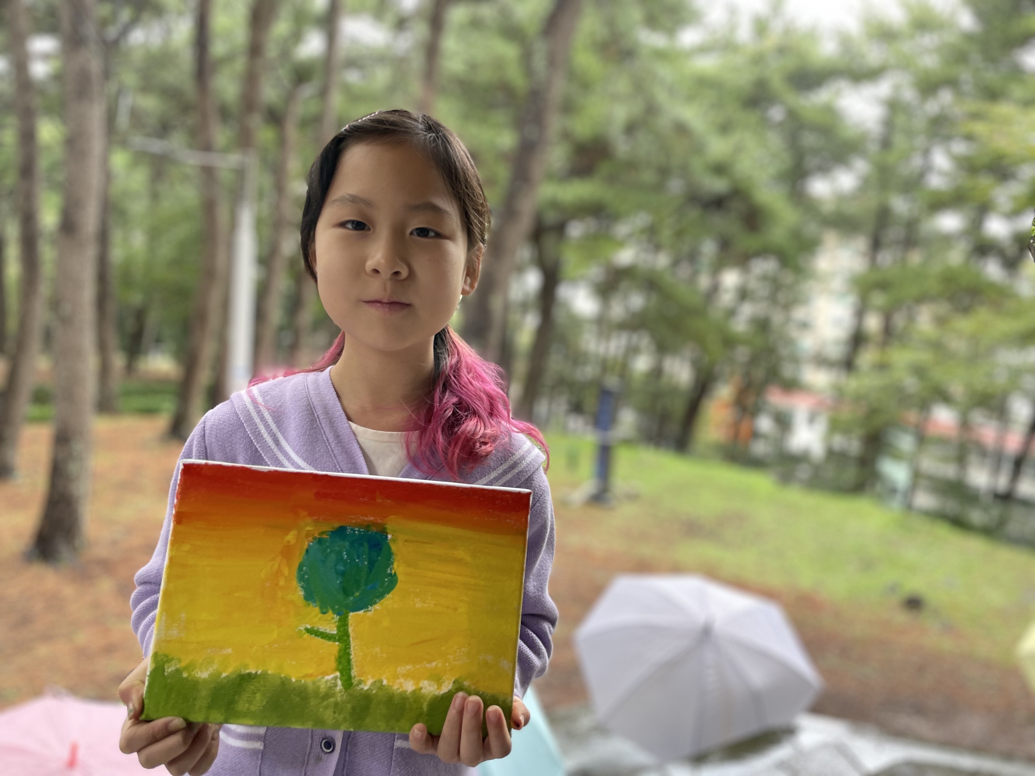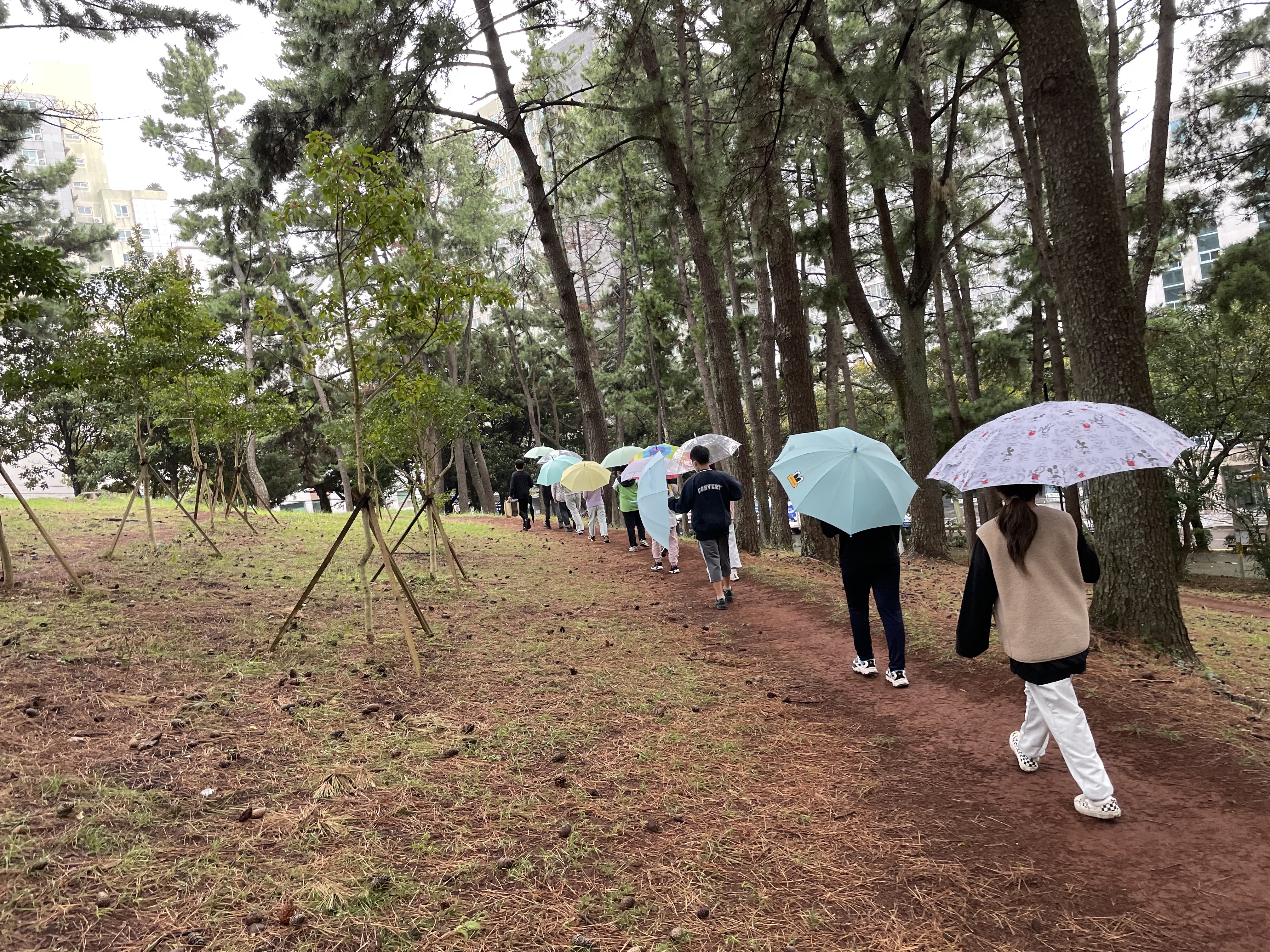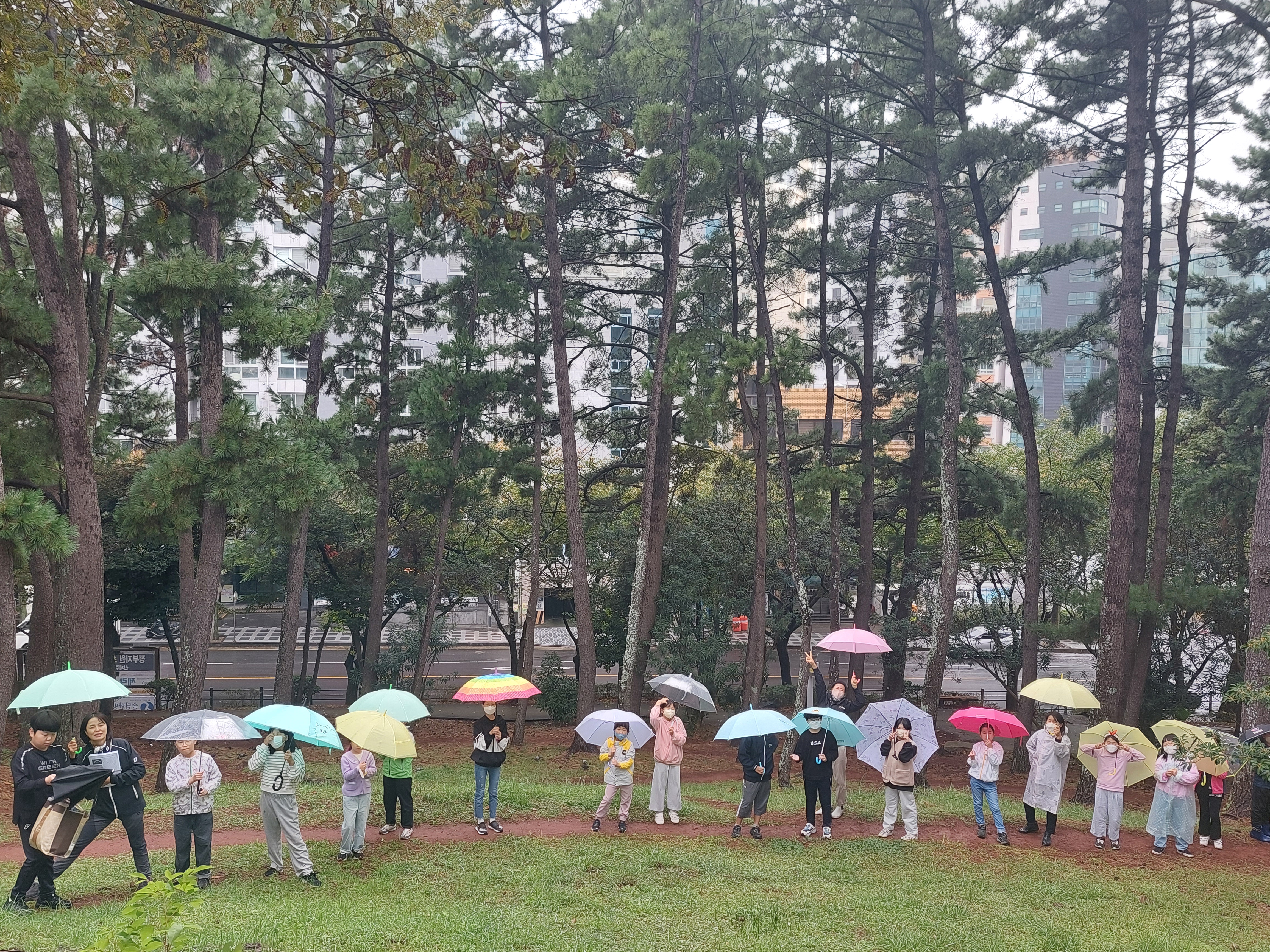 우산 덕분에 드럼빗소리를 들을 수 있었다.